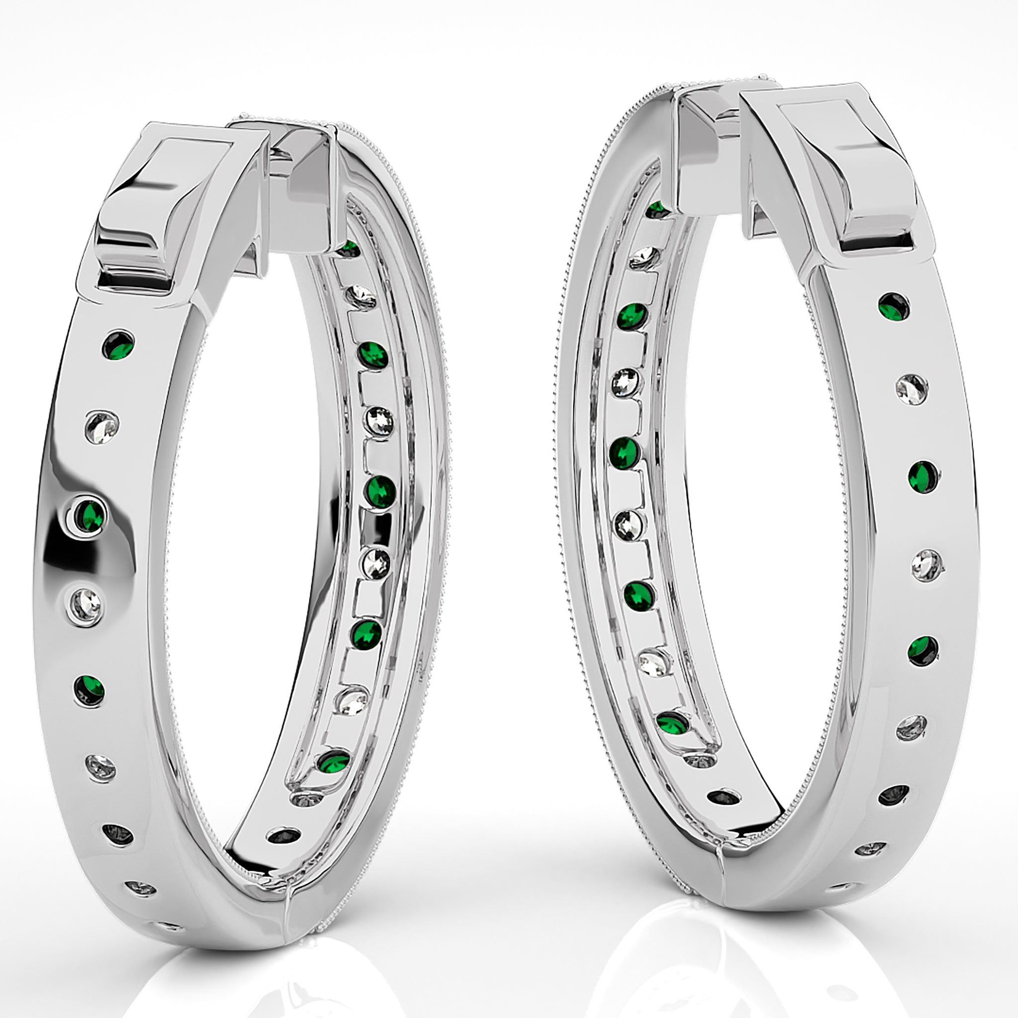 1 3/4 CT. Round Natural Diamond and Emerald Inside Out Hoop Earrings