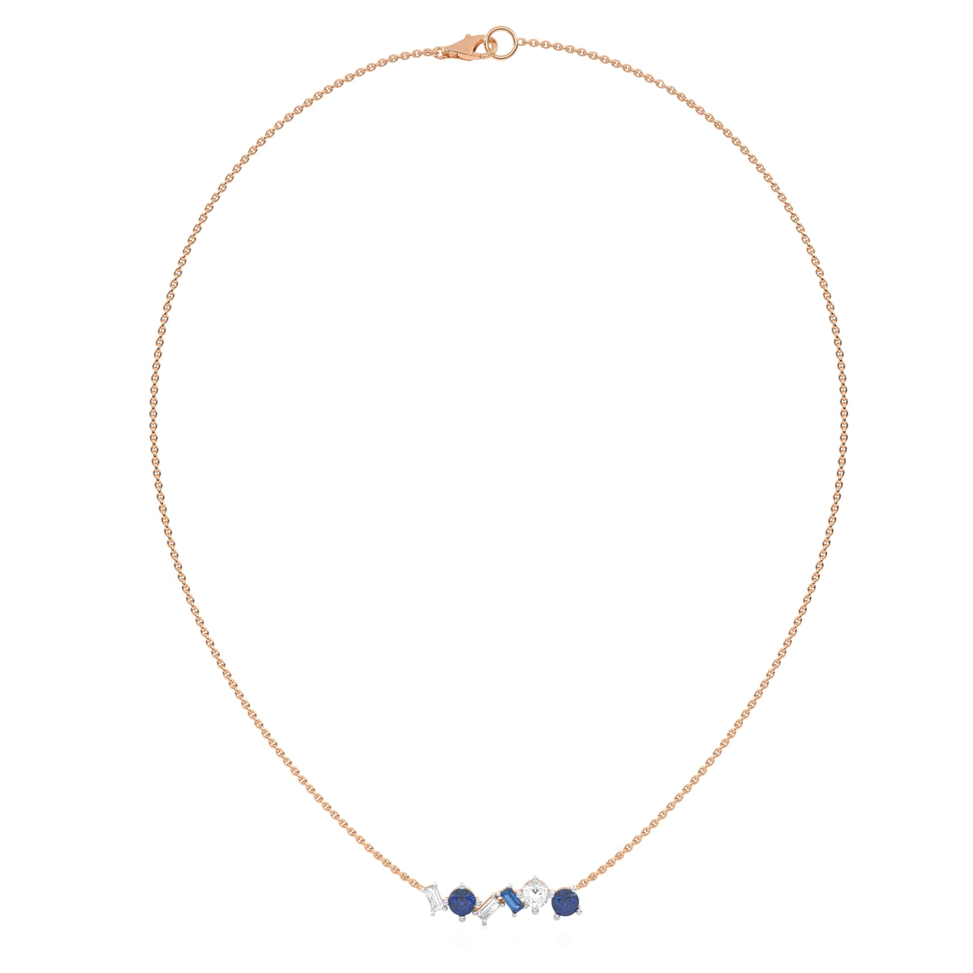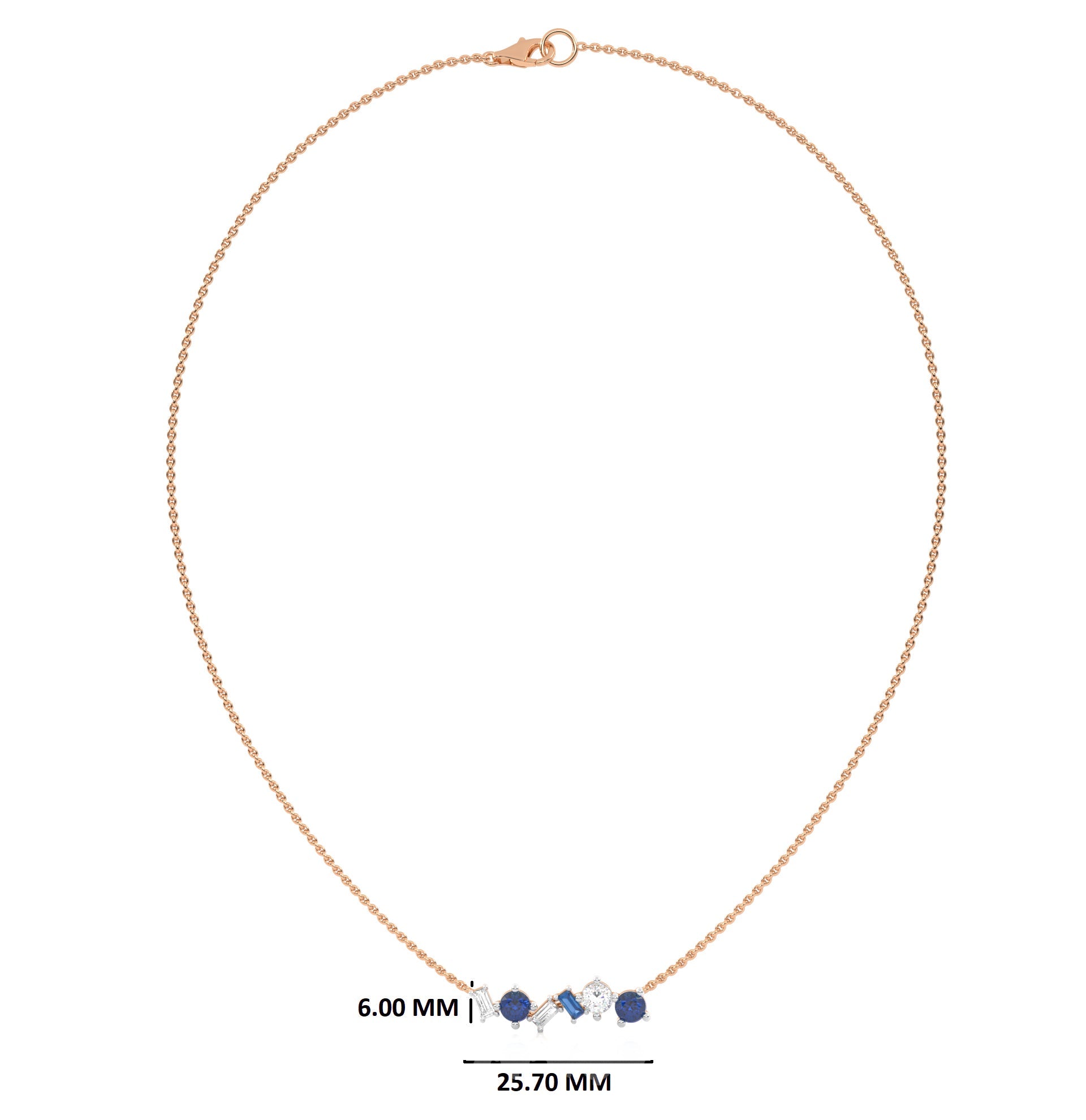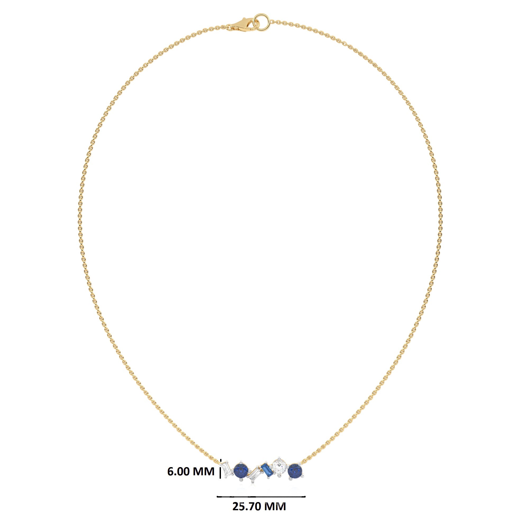 Capture the essence of elegance with the Azure Radiance Natural Diamond and Blue Sapphire Cocktail Necklace. Featuring H-I/I1-I2 quality diamonds in a prong setting, the rich blue sapphires are beautifully complemented by the sparkling diamonds for a luxurious finish