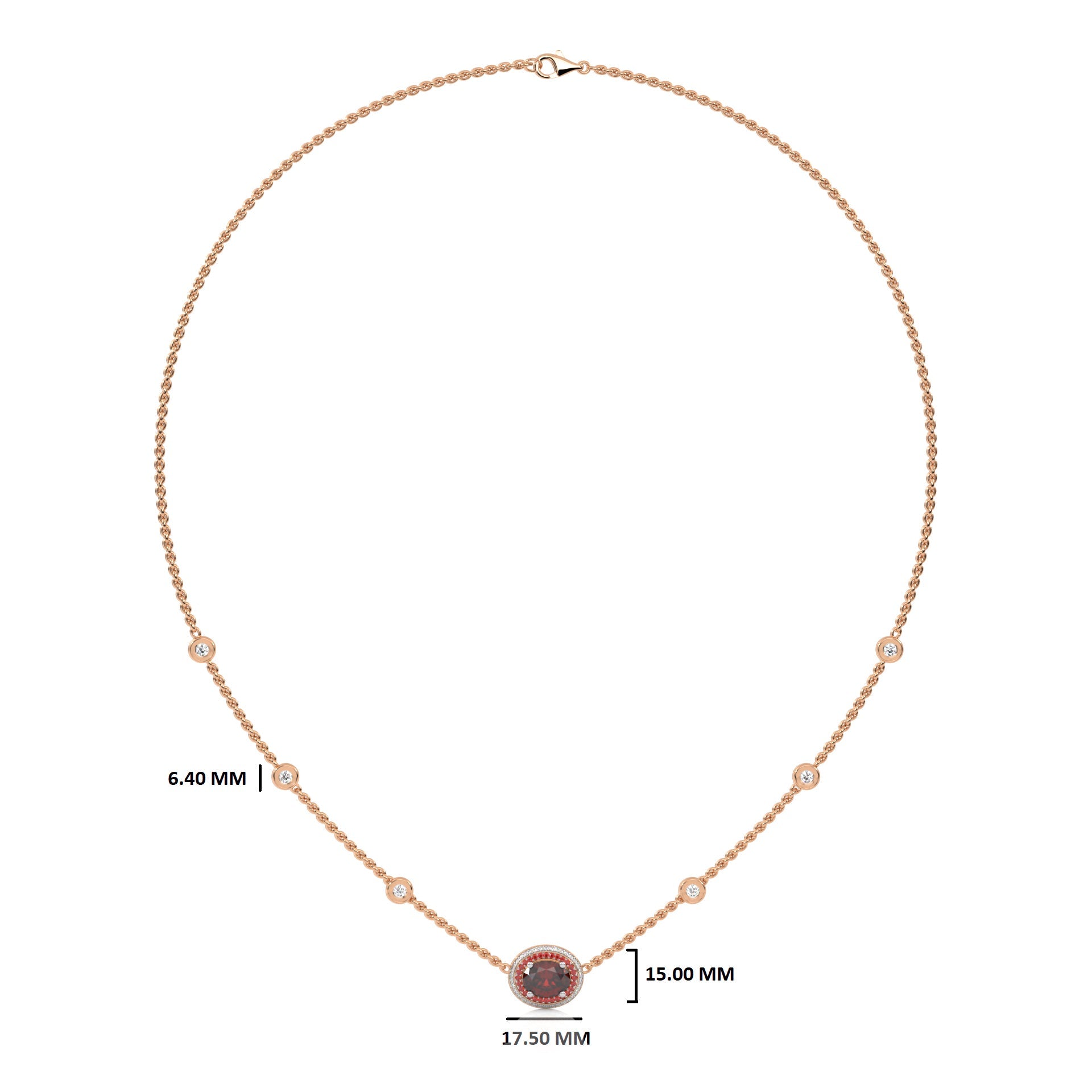 Exude elegance with the Scarlet Grace Round Natural Diamond and Ruby Station Necklace. Featuring H-I/I1-I2 quality diamonds in pave, bezel, and prong settings, the striking rubies and diamonds create a perfect harmony of color and brilliance