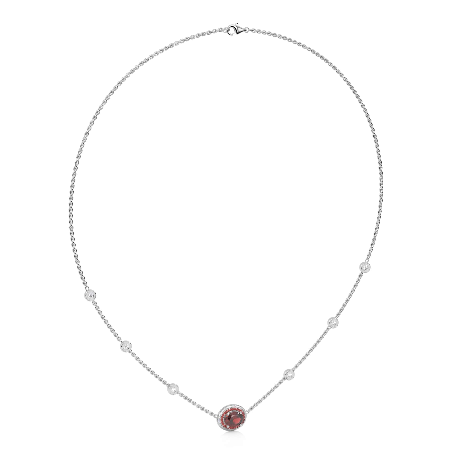 Scarlet Grace Round Natural Diamond and Ruby Station Necklace
