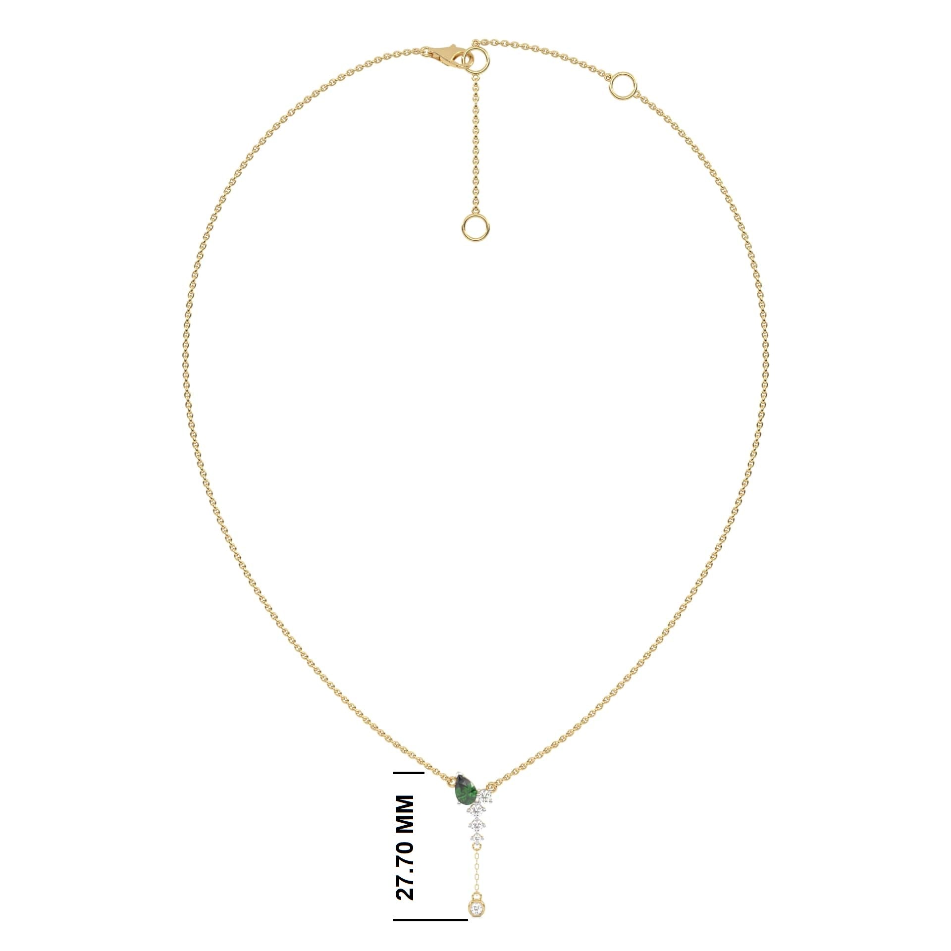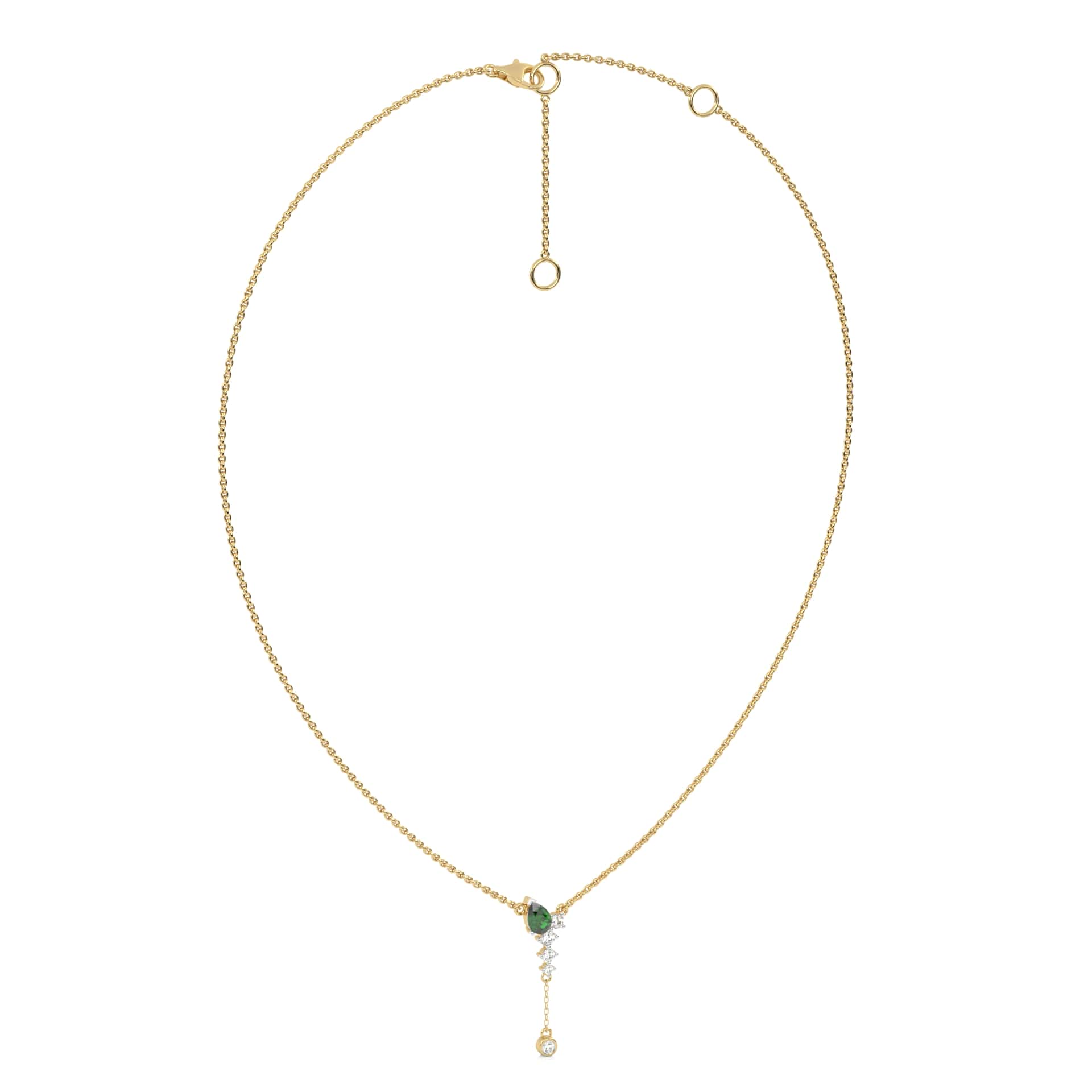 Let brilliance shine with this 7/8 CT. Round Natural Diamond and Natural Emerald Pear Lariat Necklace. Featuring a brilliant H-I/I1-I2 quality round diamond and a vibrant pear shaped emerald, this stunning piece is meticulously set in a sleek prong and Bezel setting, Embrace the harmonious blend of sparkling diamonds and lush emeralds for an unforgettable statement