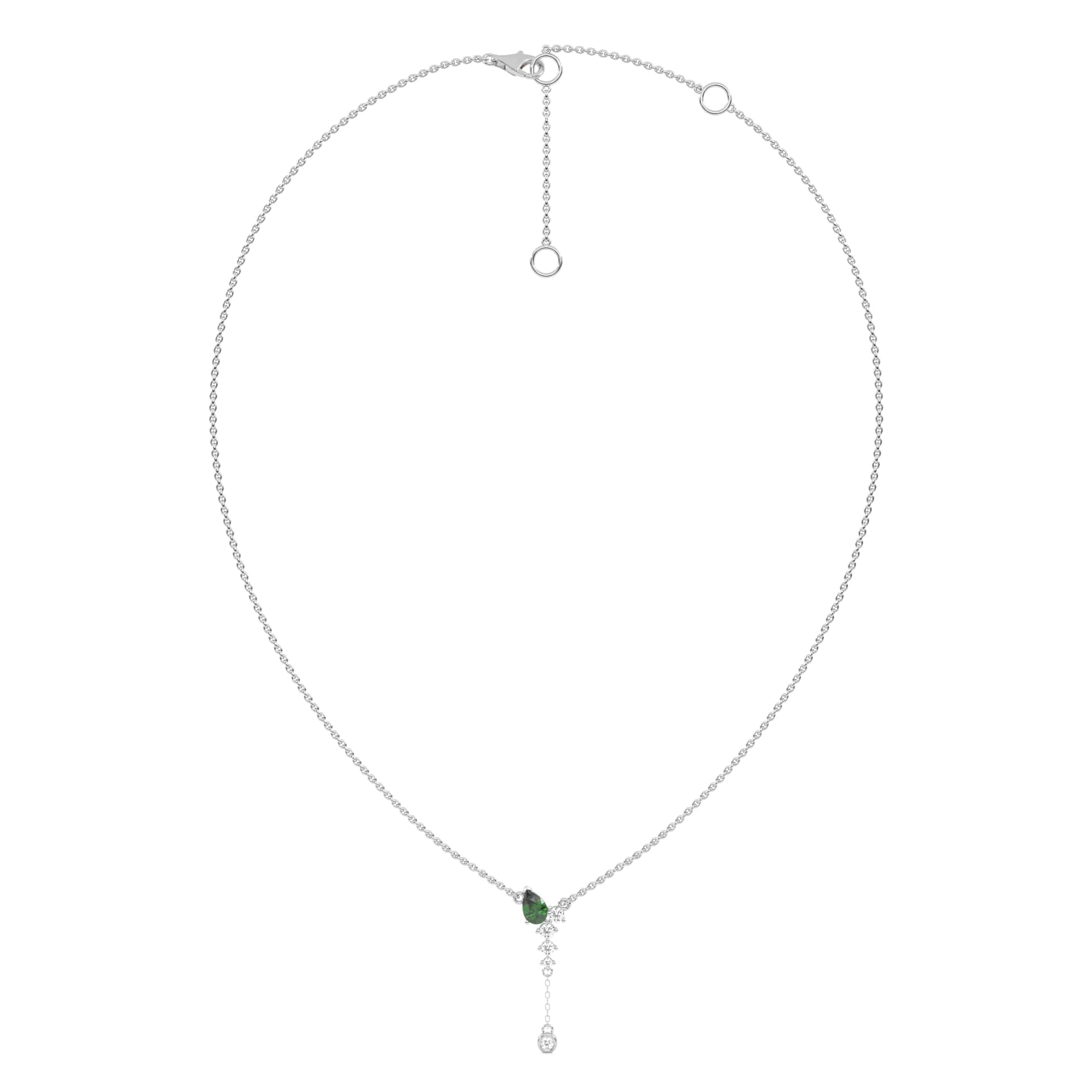 7/8 CT. Round Natural Diamond and Natural Emerald Pear Lariat Necklace