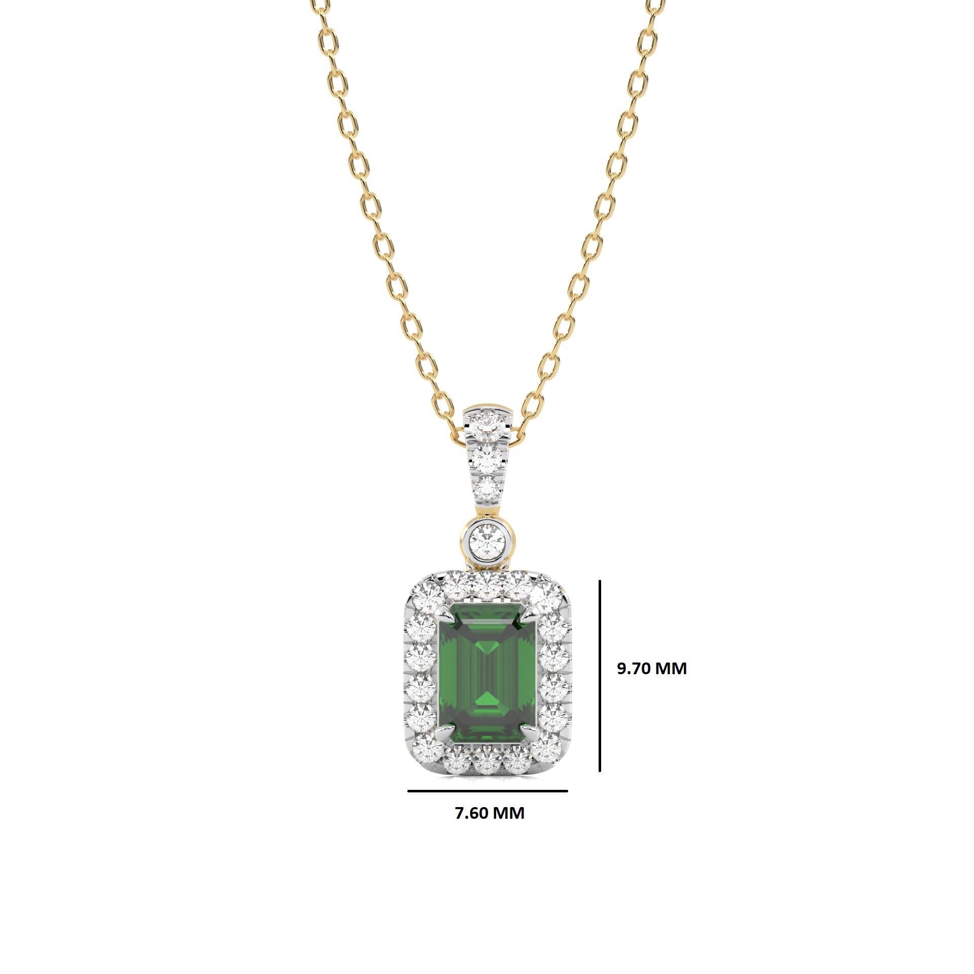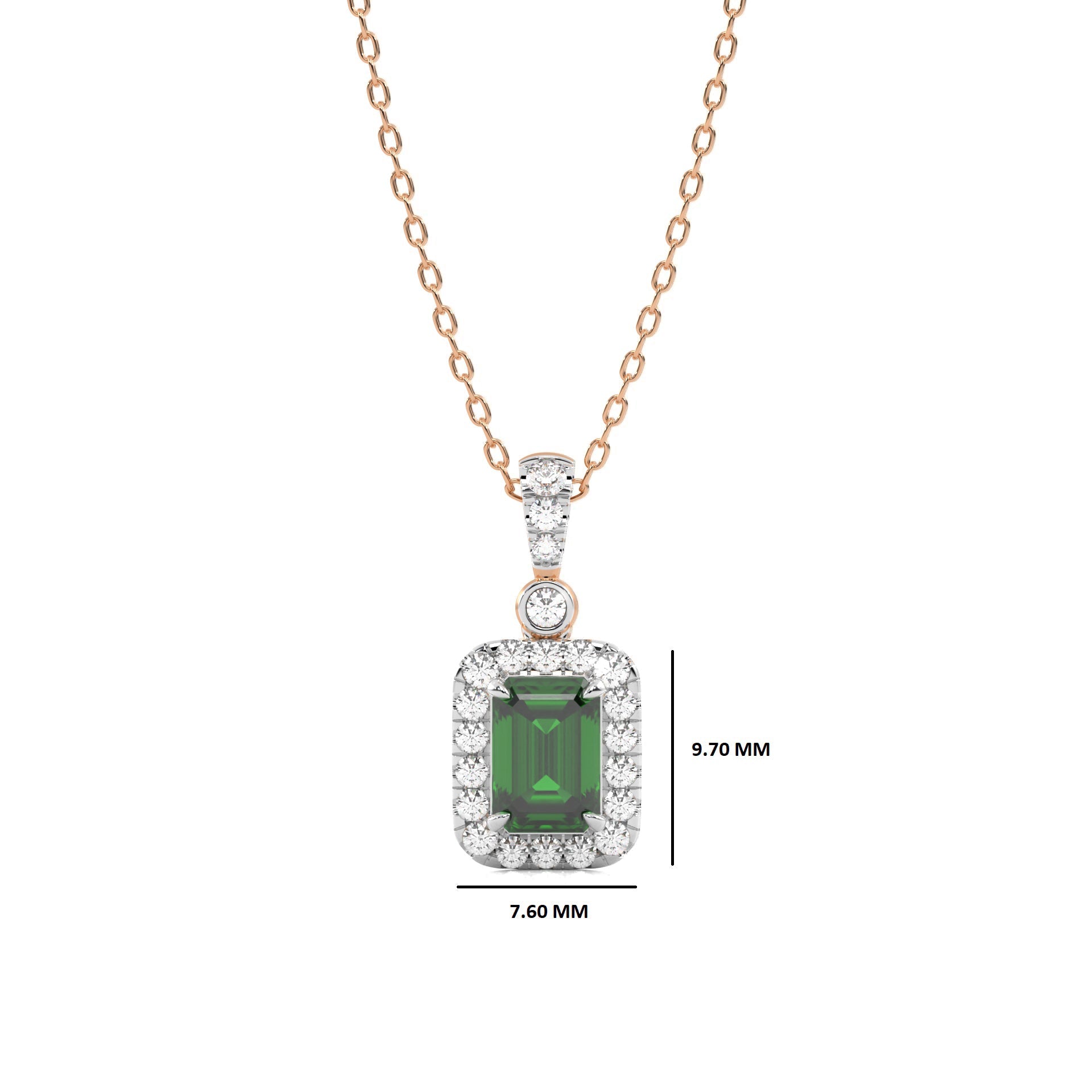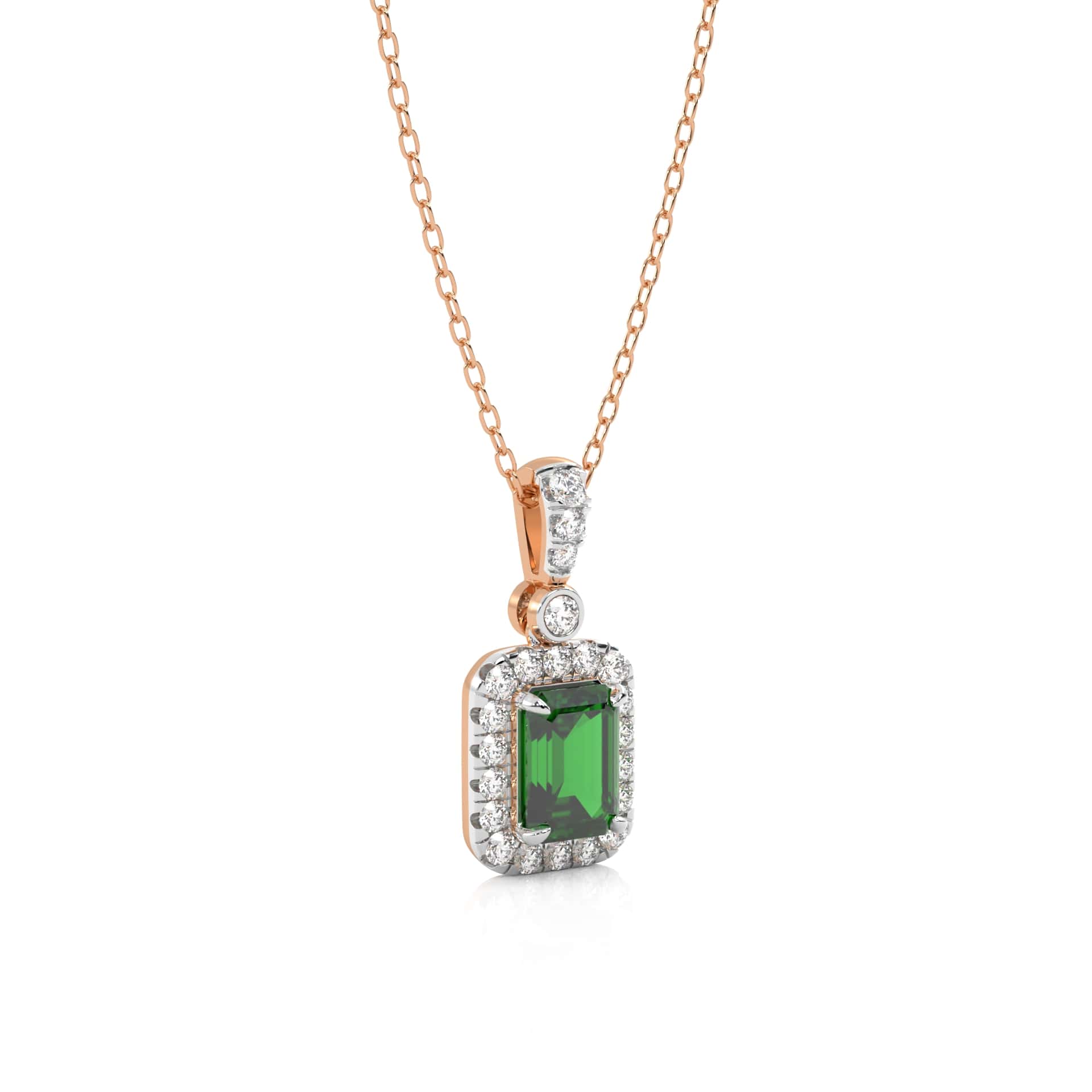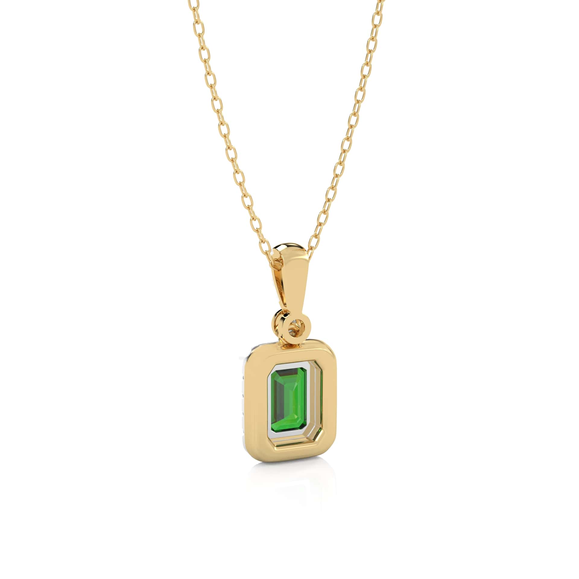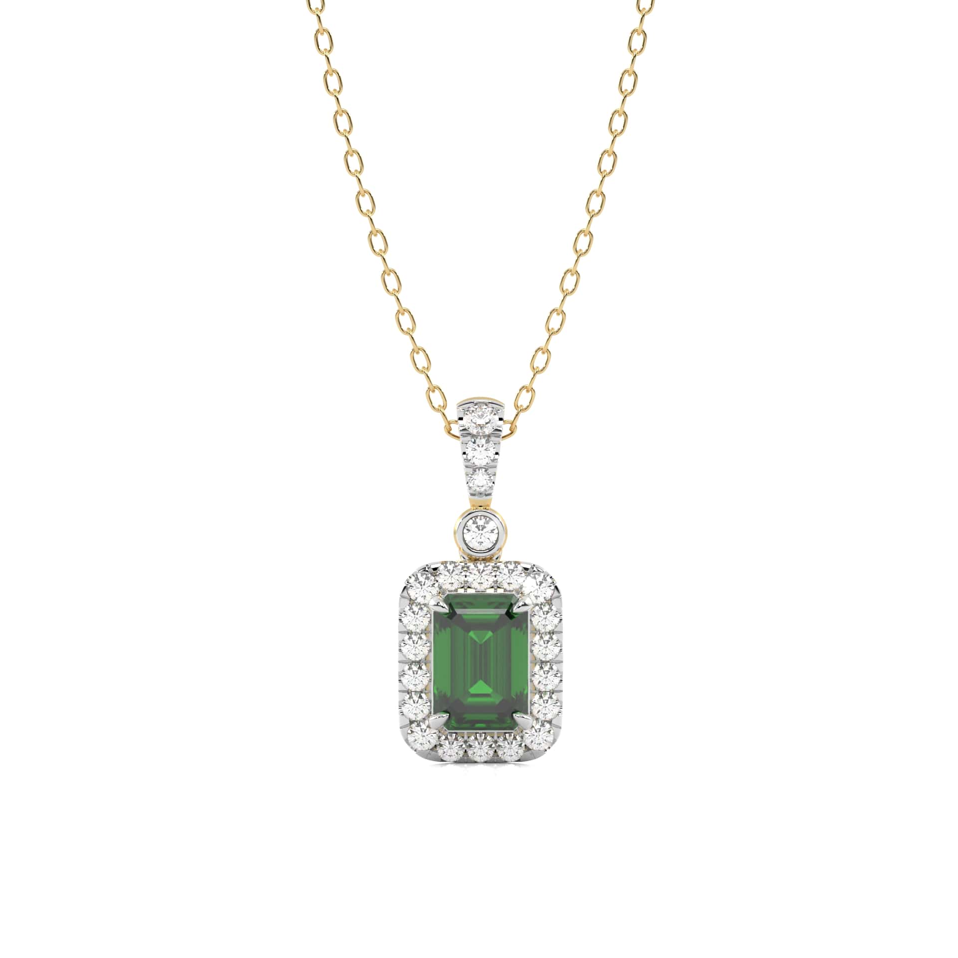 Verdant Glow Round Natural Diamond and Emerald Pendant Necklace