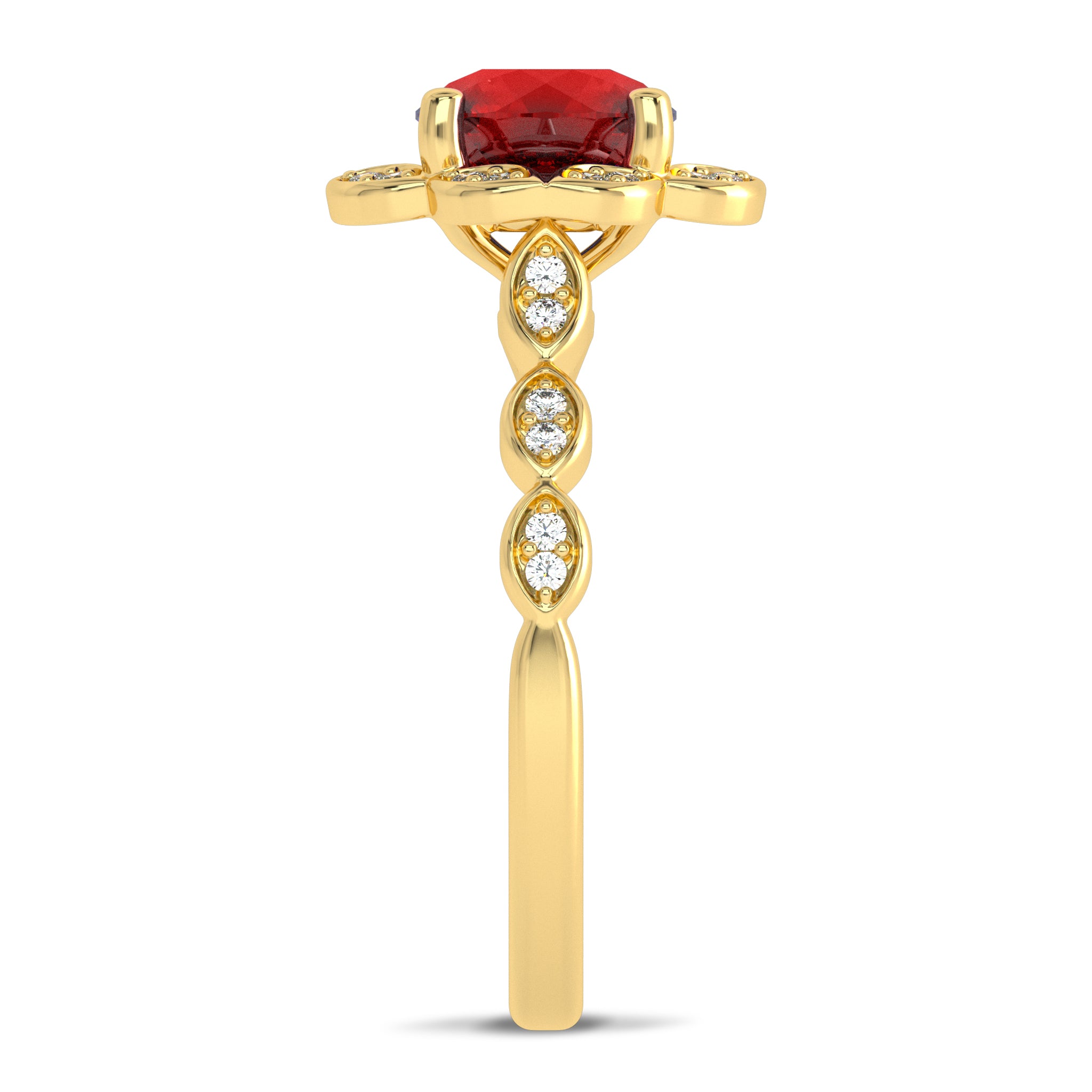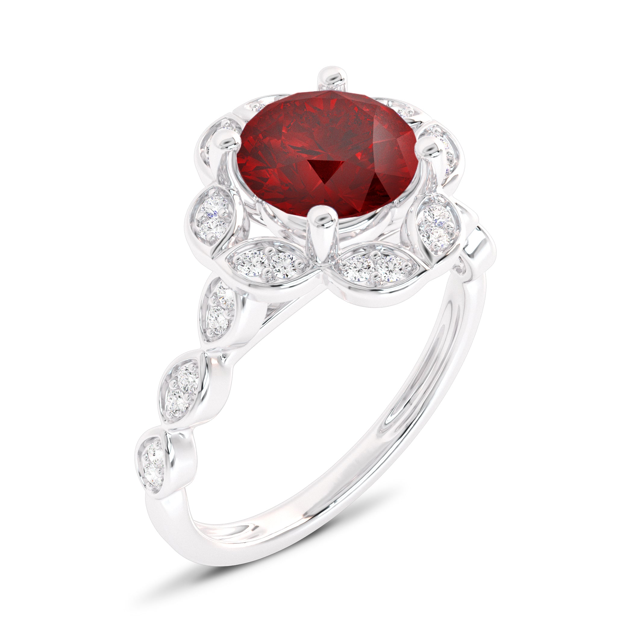Fiery Passion Round Ruby and Natural Diamond Engagement Ring.