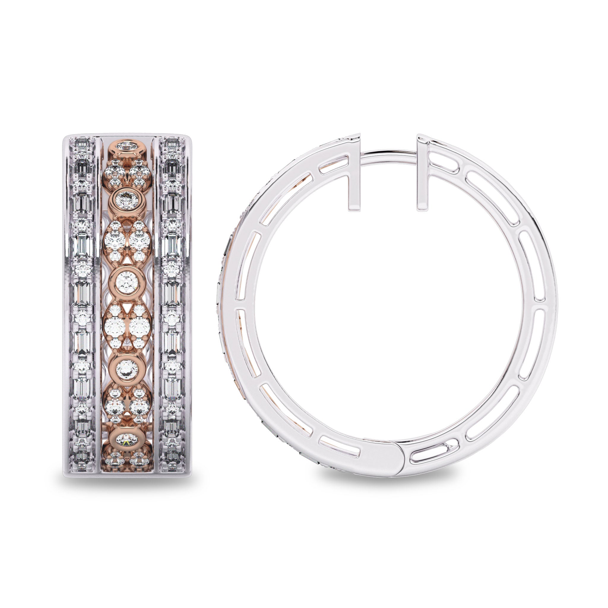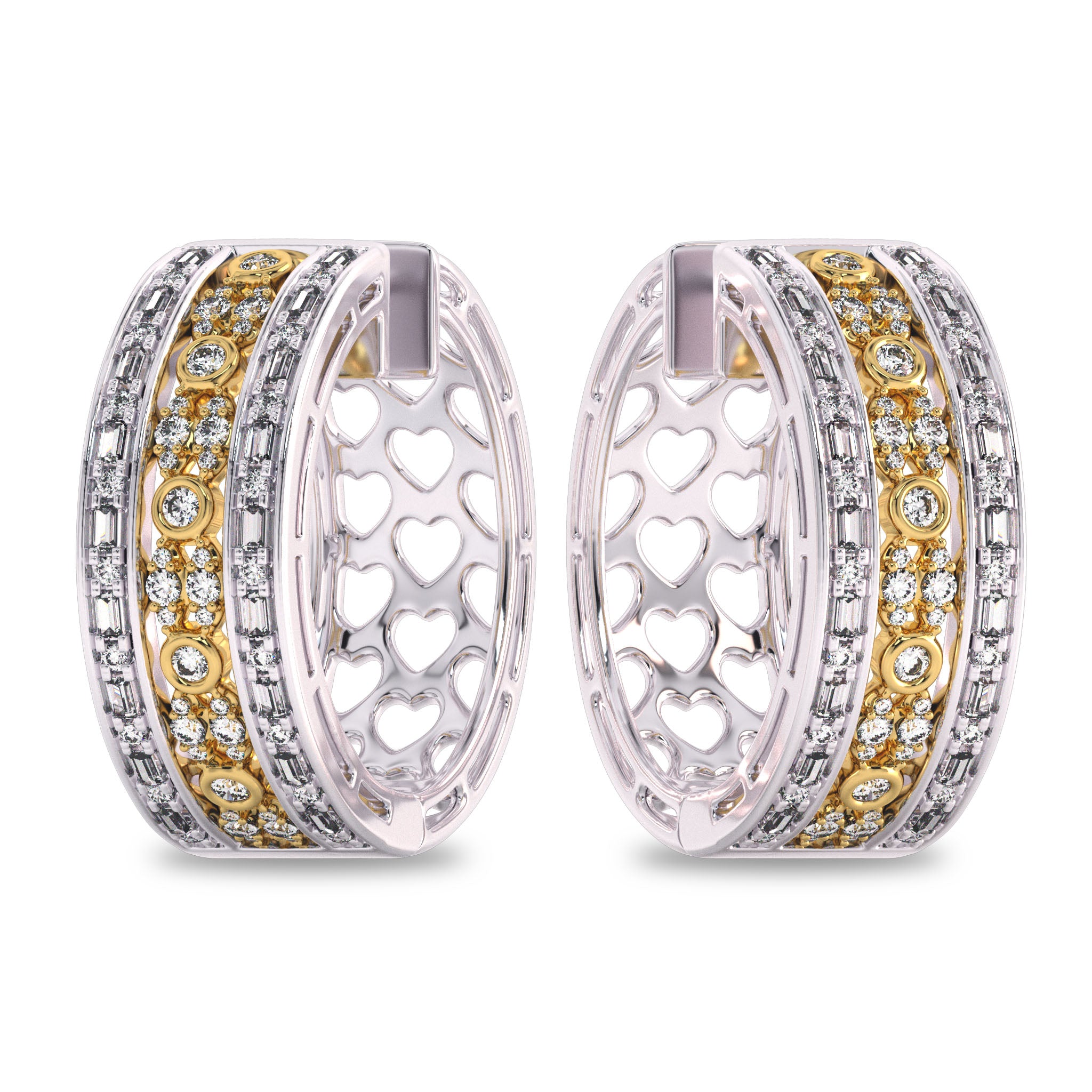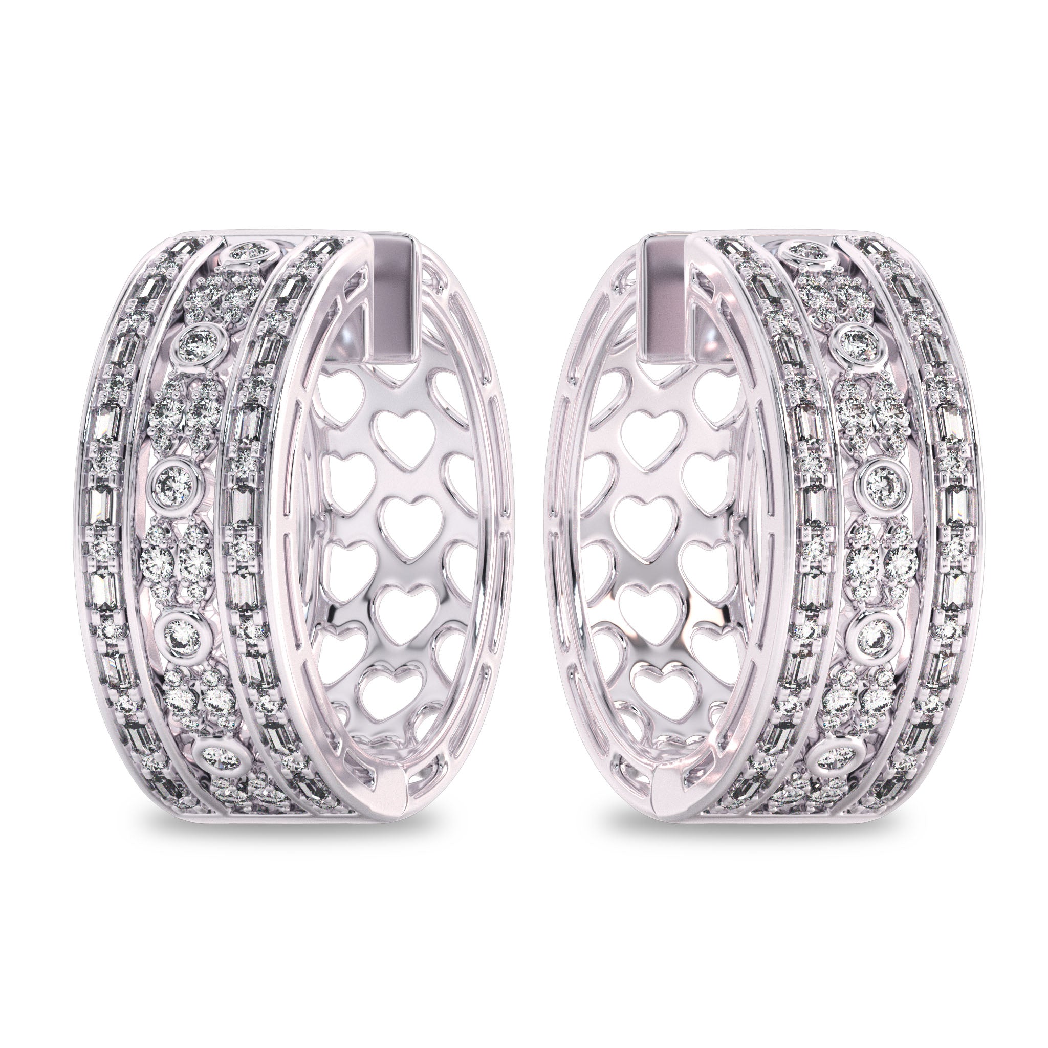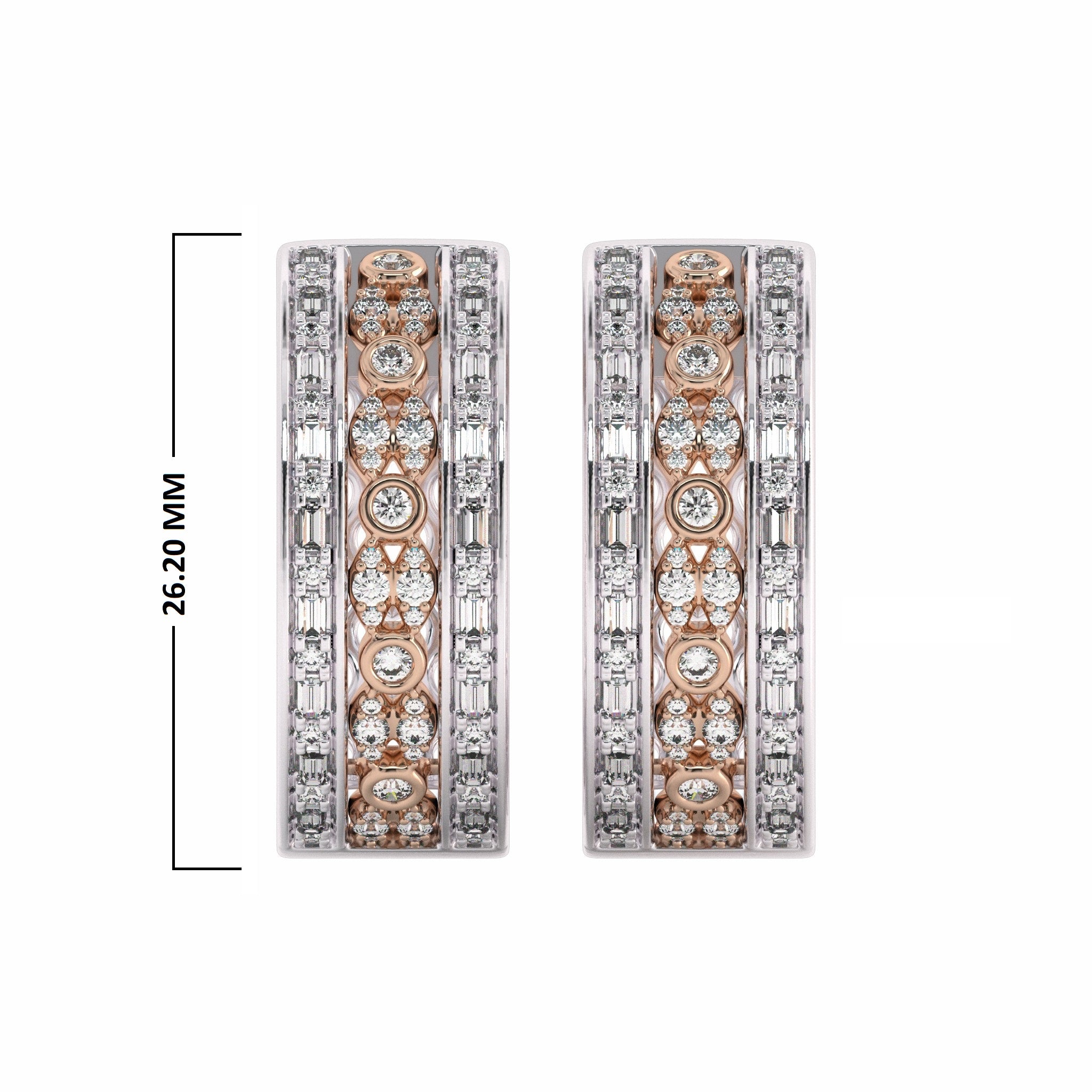 1 1/2 CT. Lab Created Round and Baguette Diamond Studded Designer Hoop Earrings