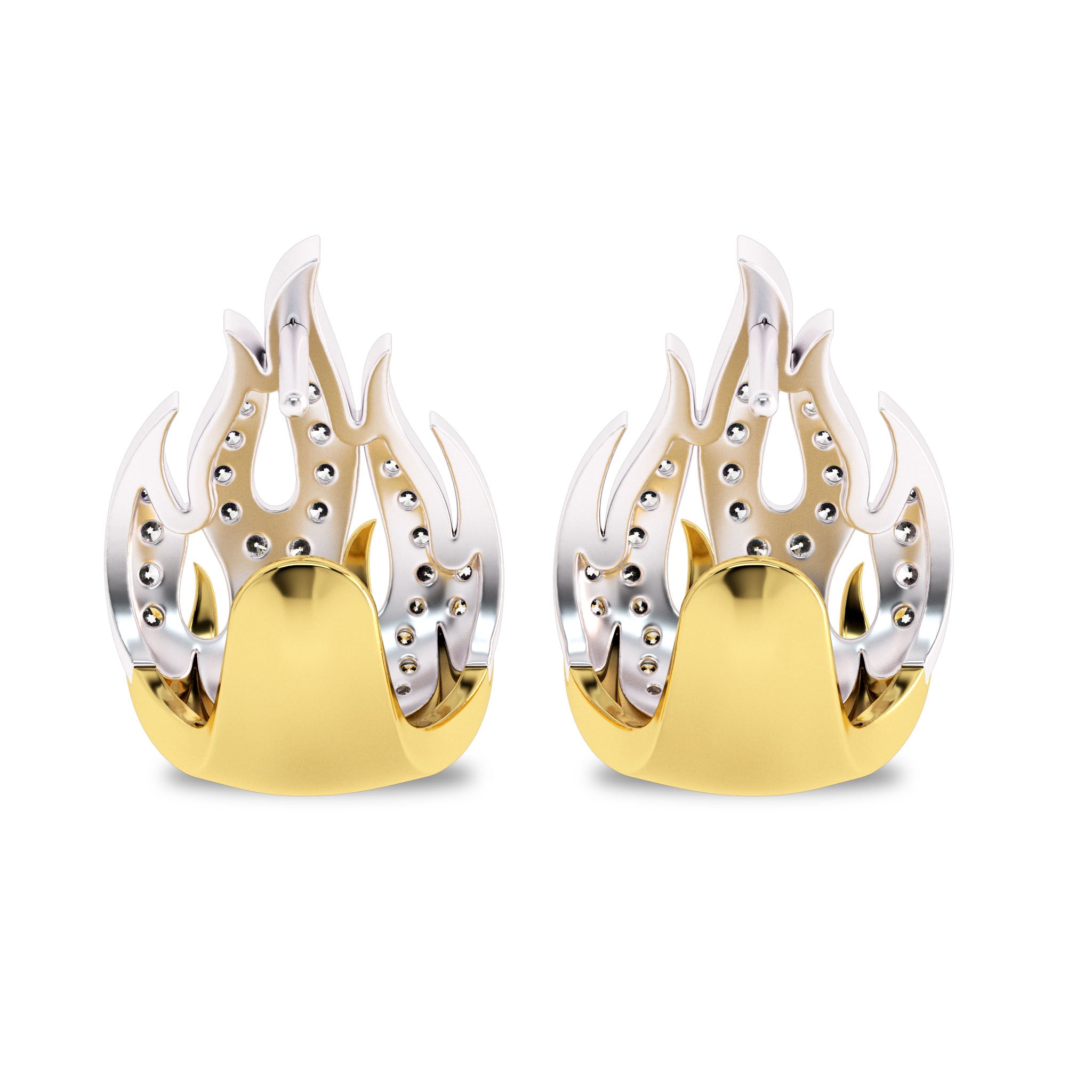 3/4 CT. Lab Created Round Diamond Studdded Fire Flame Designer Stud Earrings