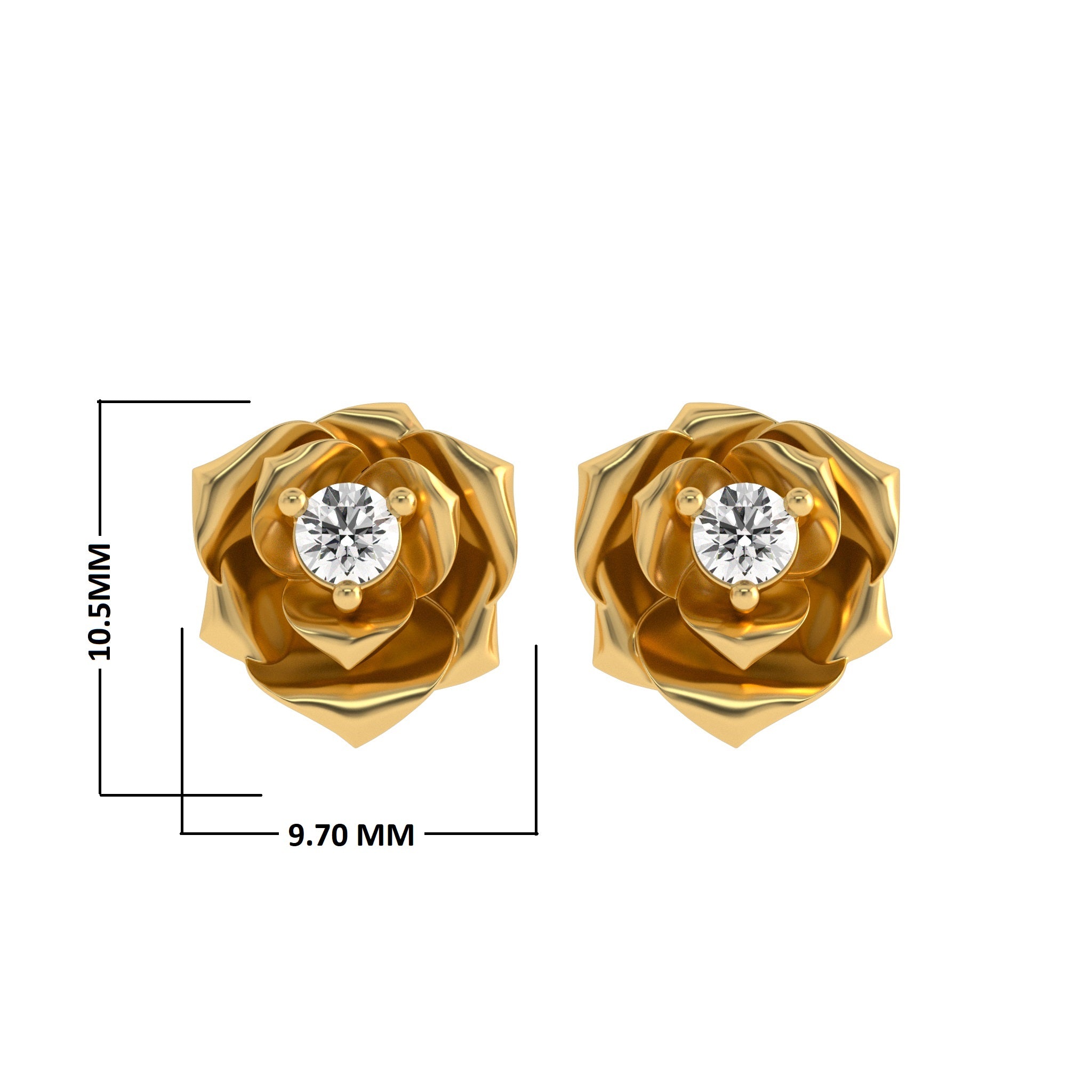 Grace your ears with nature's elegance in our 1/4 CT. Lab Created Round Solitaire Diamond Studded Rose Flower Stud Earrings. Each stud, a delicate rose bloom, cradles a single, high-quality Lab Created diamond in a secure prong setting. With DEF color and SI quality, these earrings are a captivating fusion of floral beauty and timeless craftsmanship, bringing a touch of sophistication and nature's grace to your every look