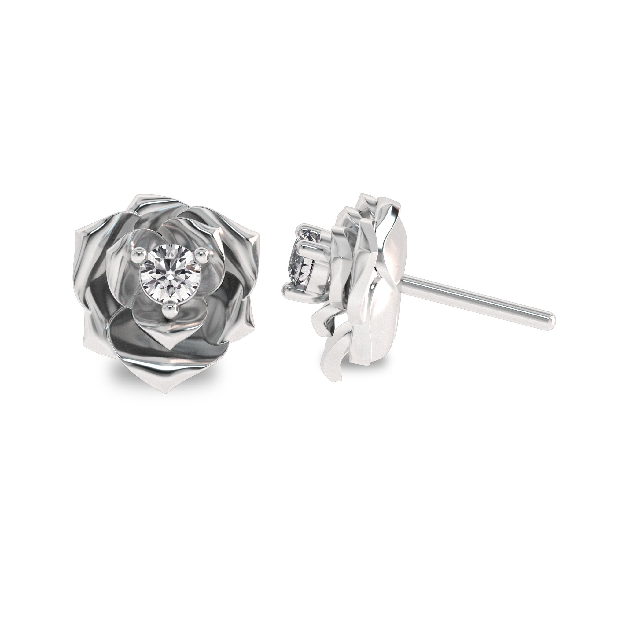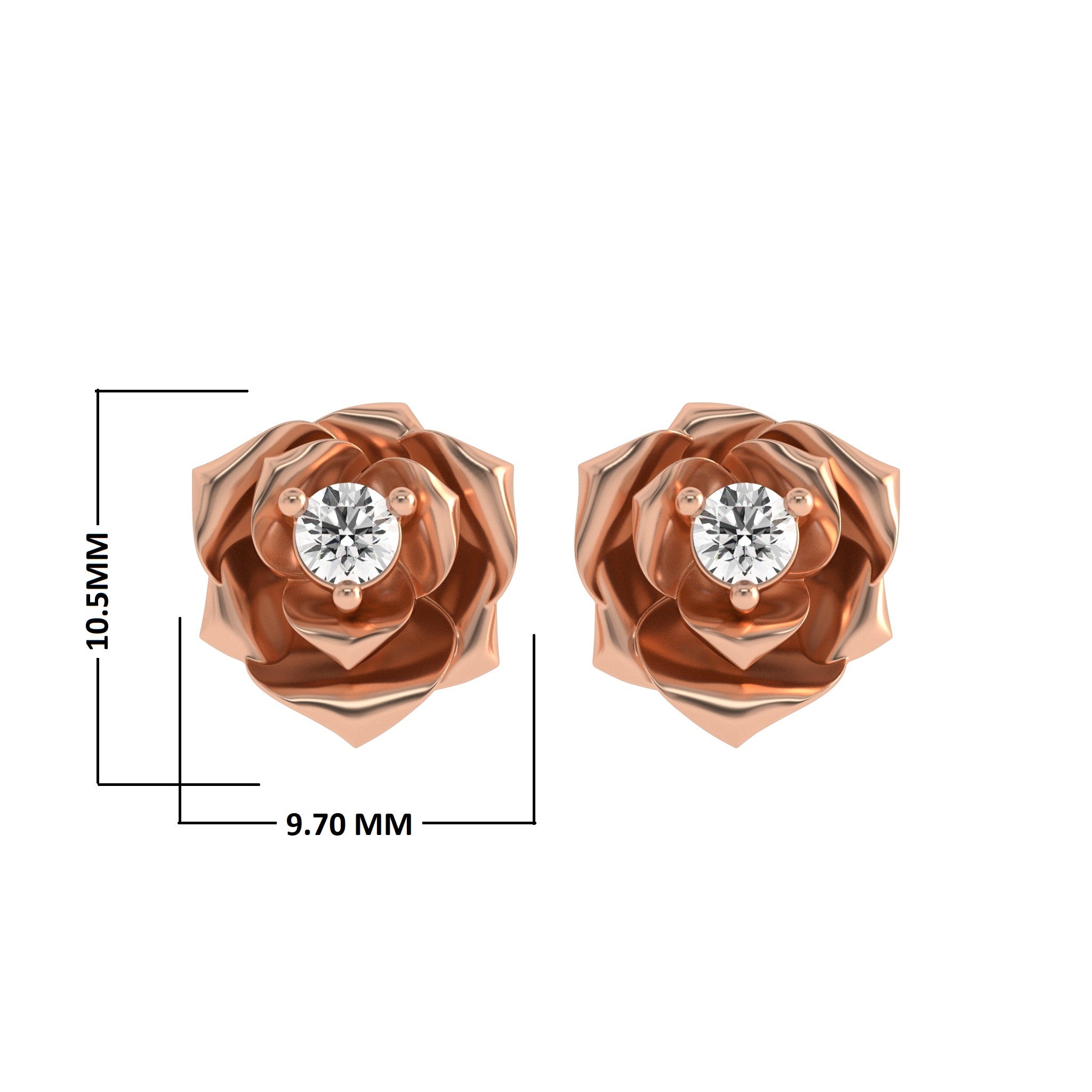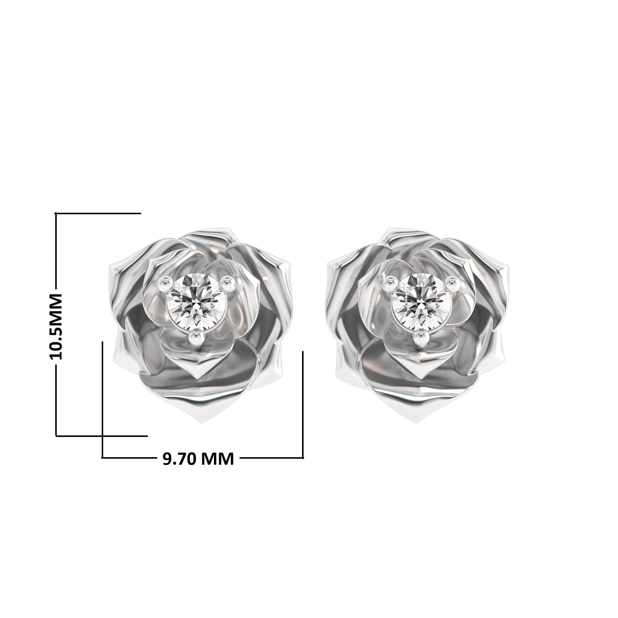 1/4 CT. Lab Created Round Solitaire Diamond Studded Rose Flower Stud Earrings