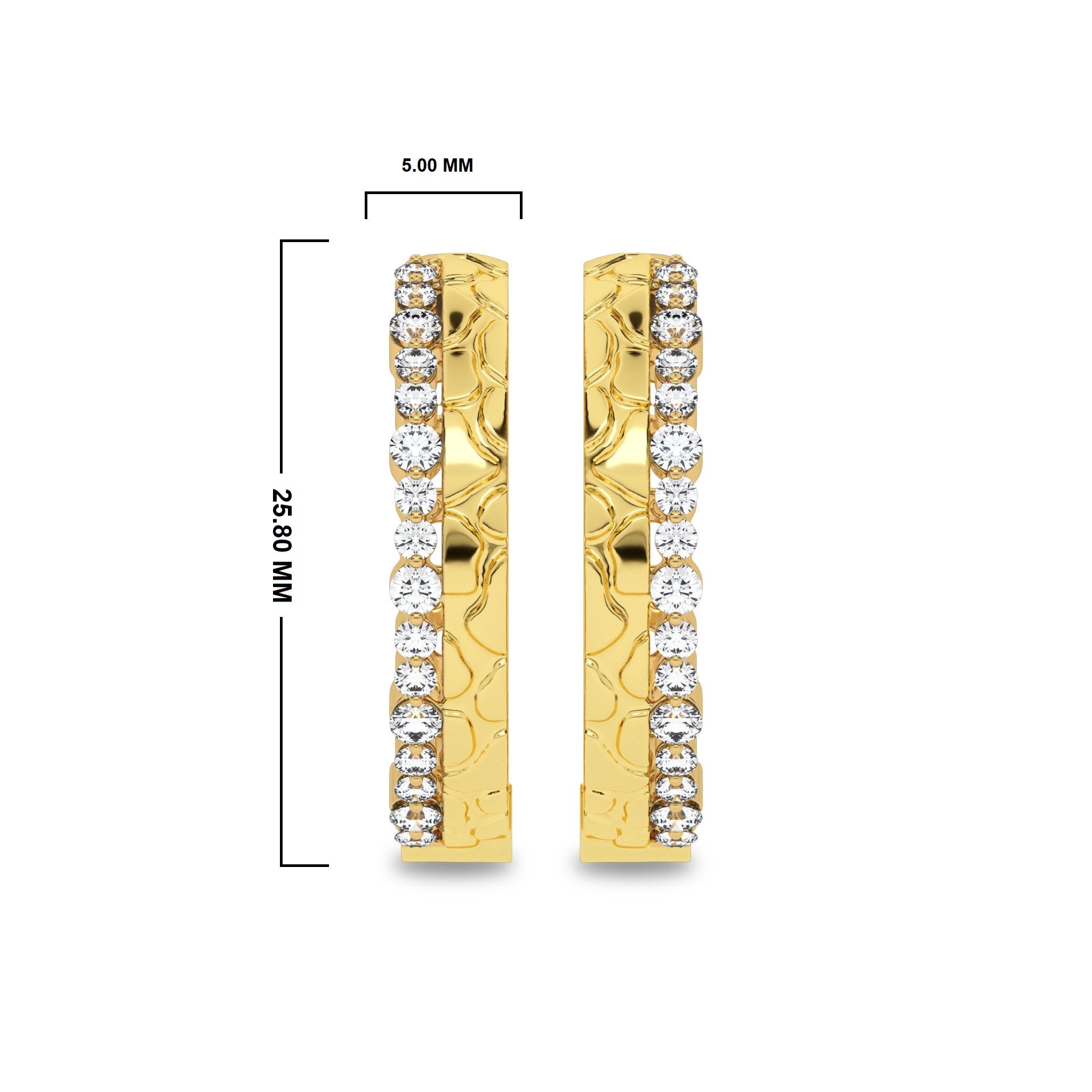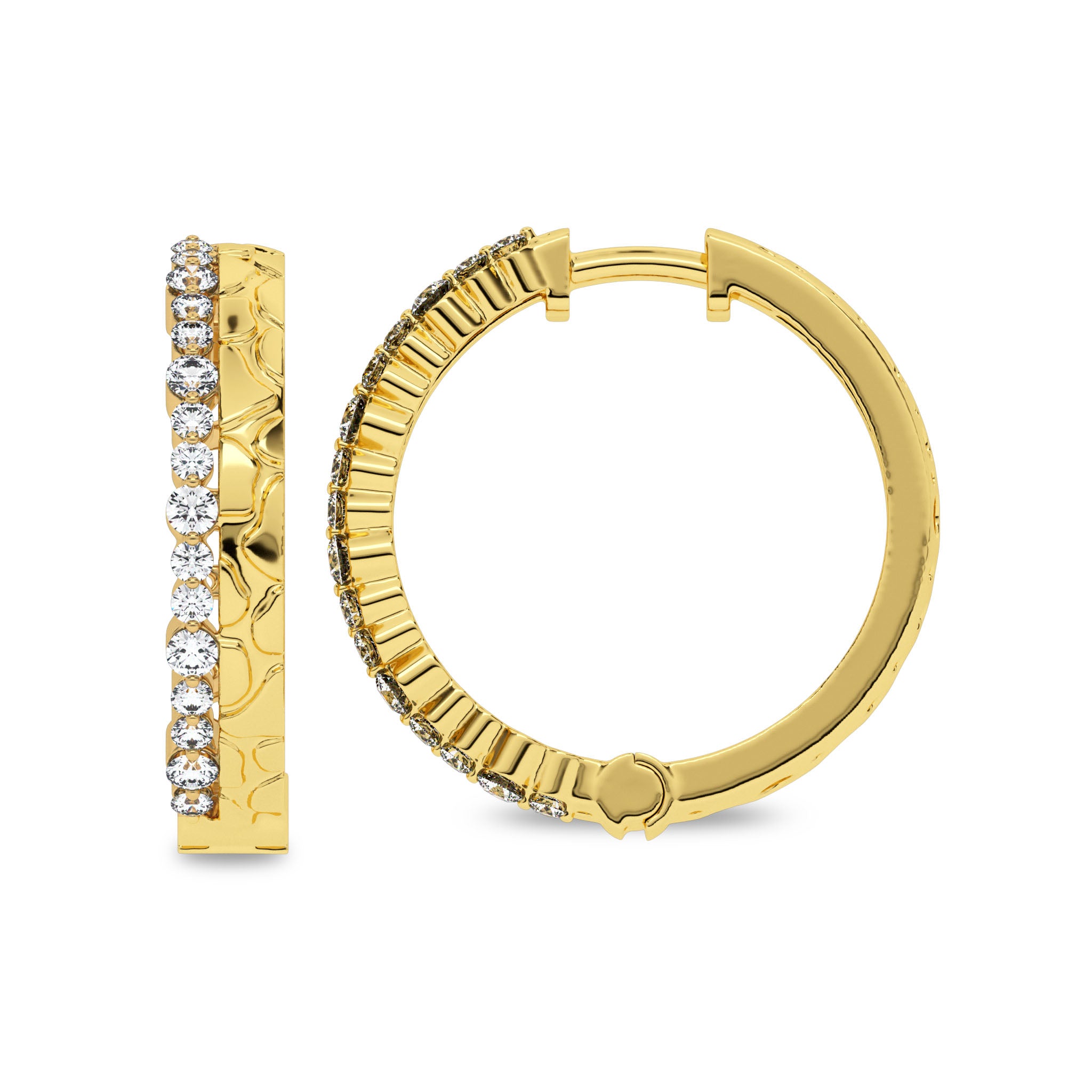 Adorn your ears with brilliance and grace in our 5/8 CT. Lab Created Round Diamond Studded Designer Hoop Earrings. Each hoop embodies the essence of modern elegance, featuring a captivating array of Lab Created diamonds, DEF color, and SI quality, securely cradled in precision prong settings. As you wear these hoops, they'll become the sparkling companions to your unique style, enhancing your presence with a touch of sophistication and luxury.