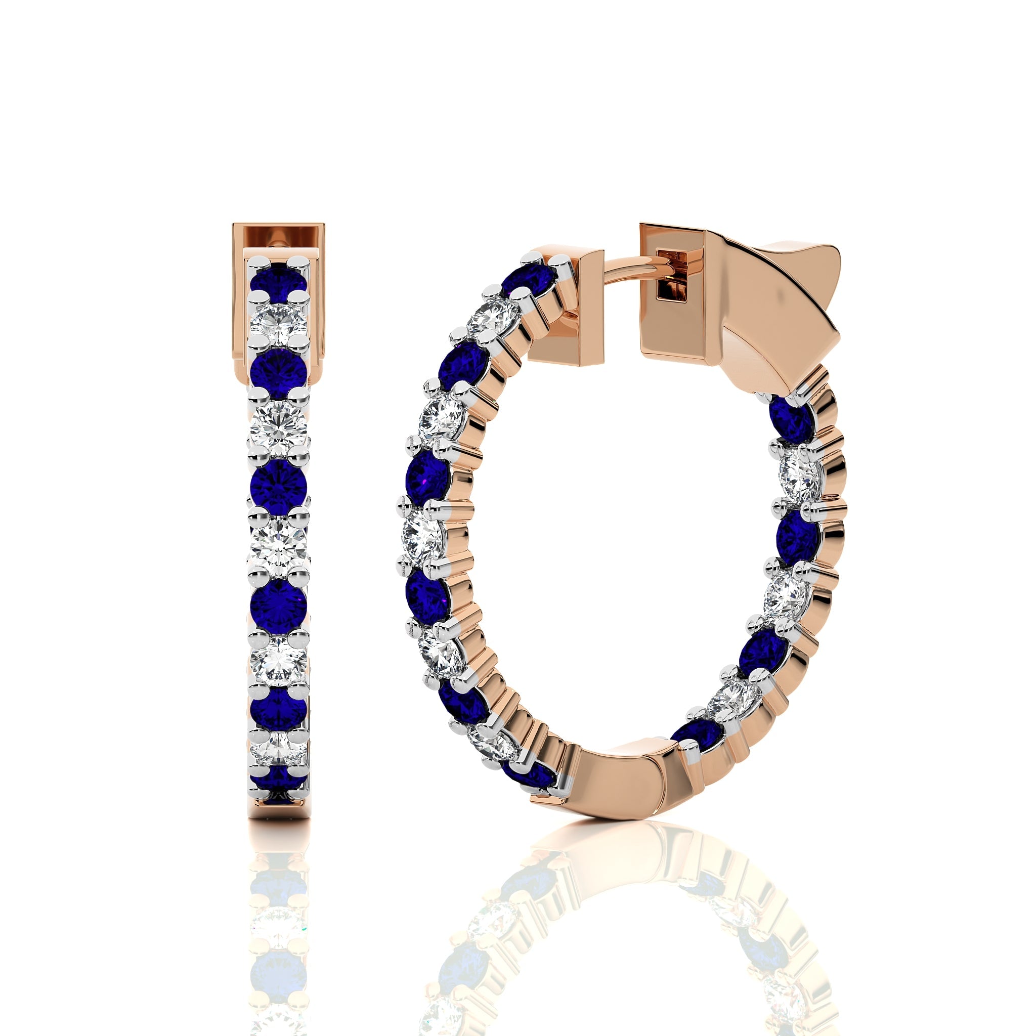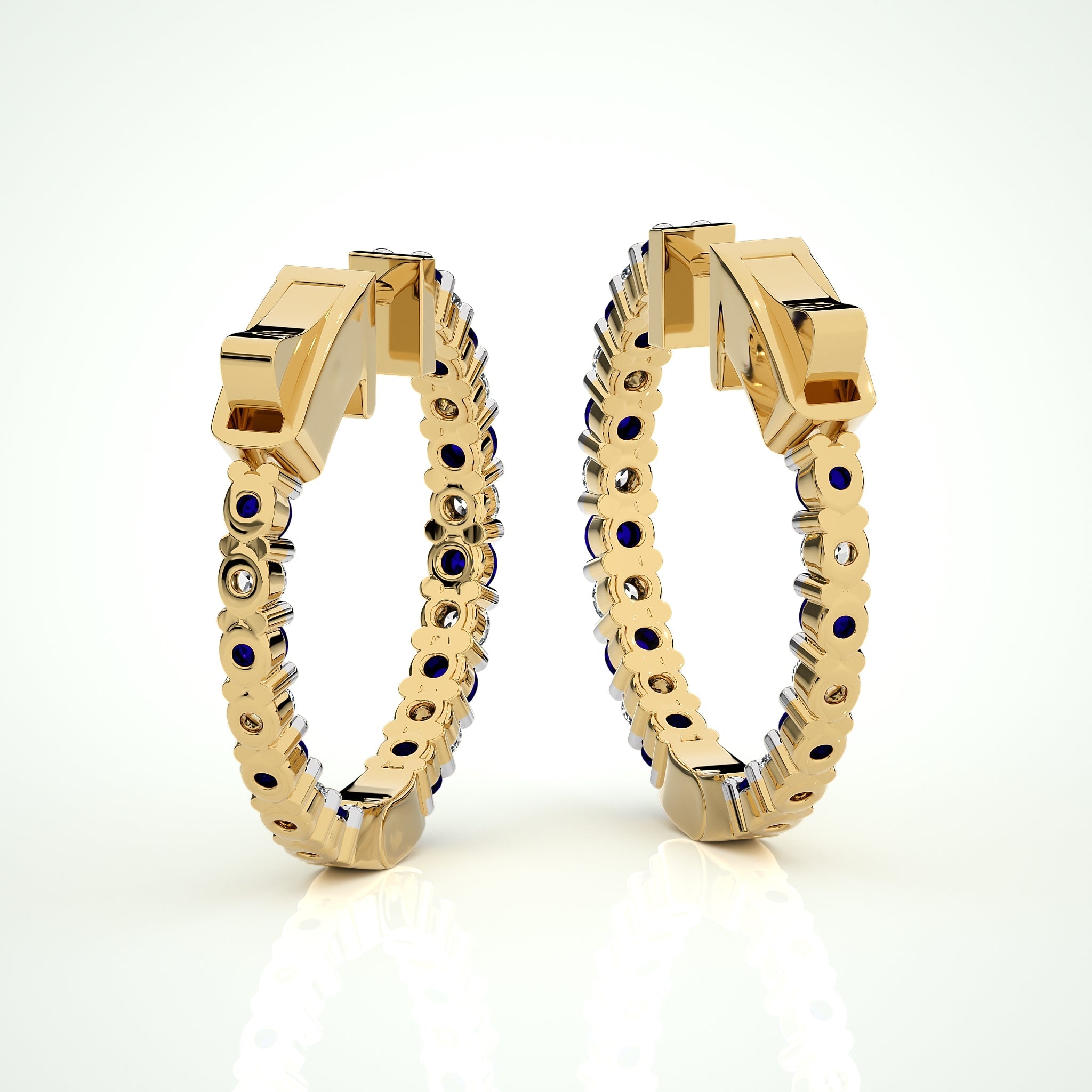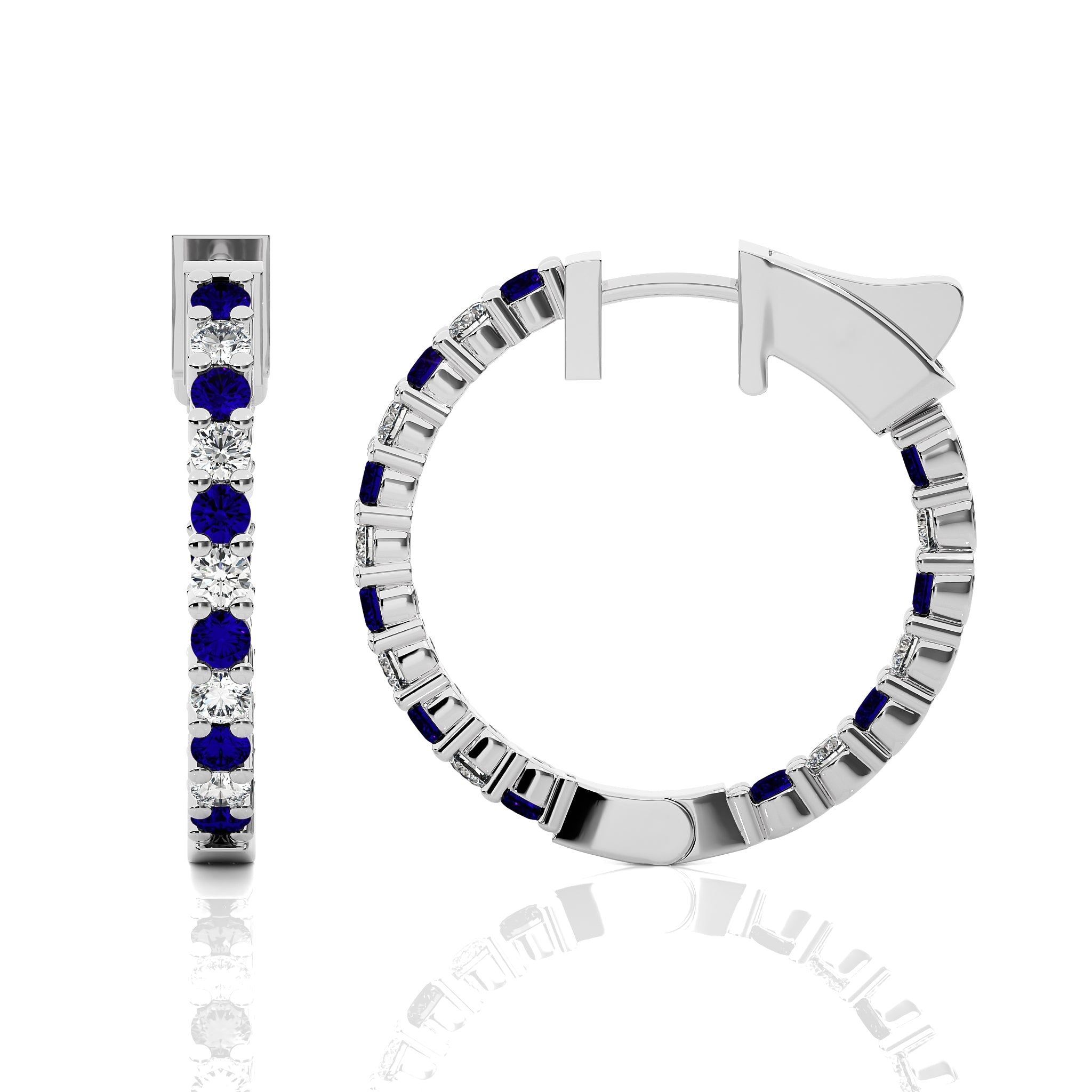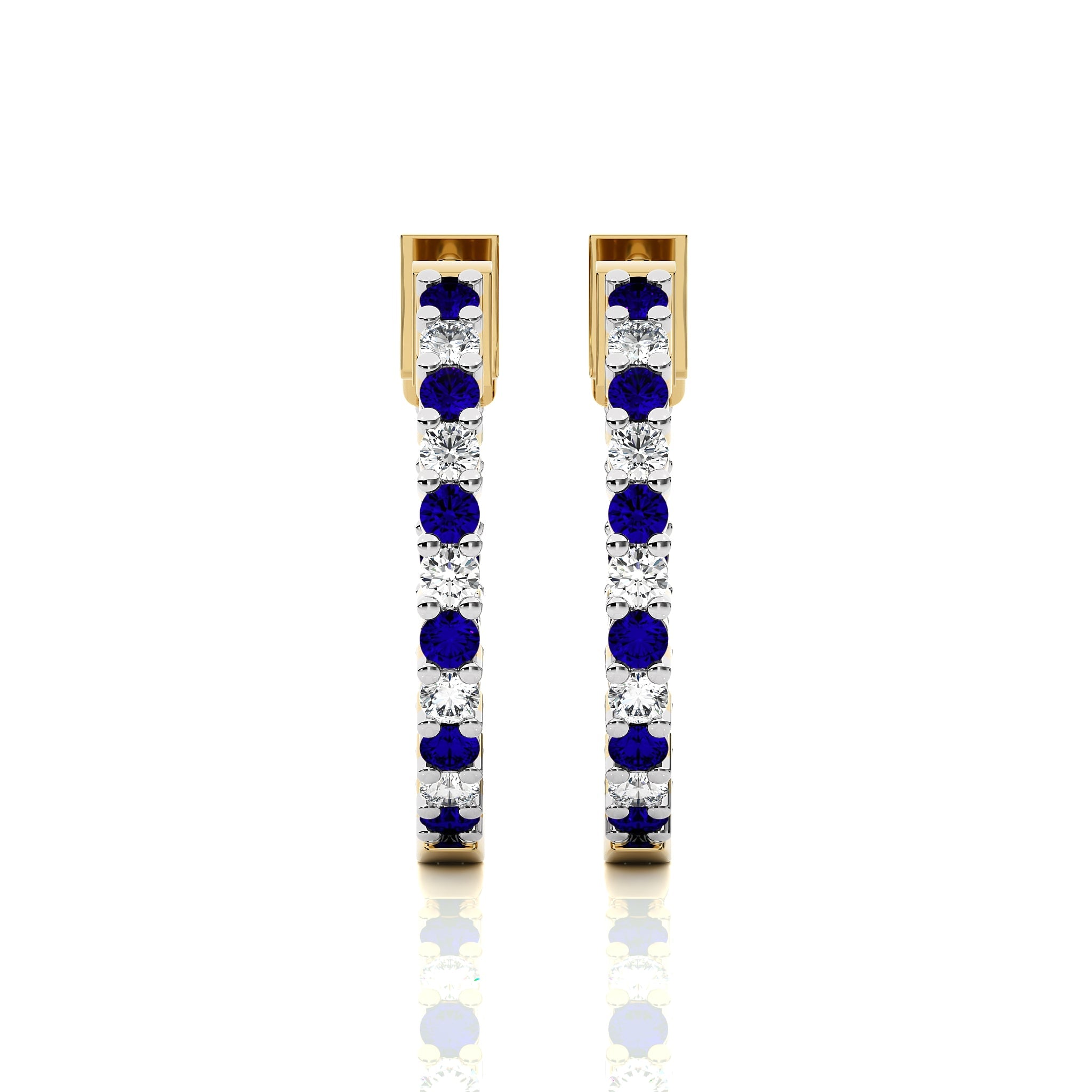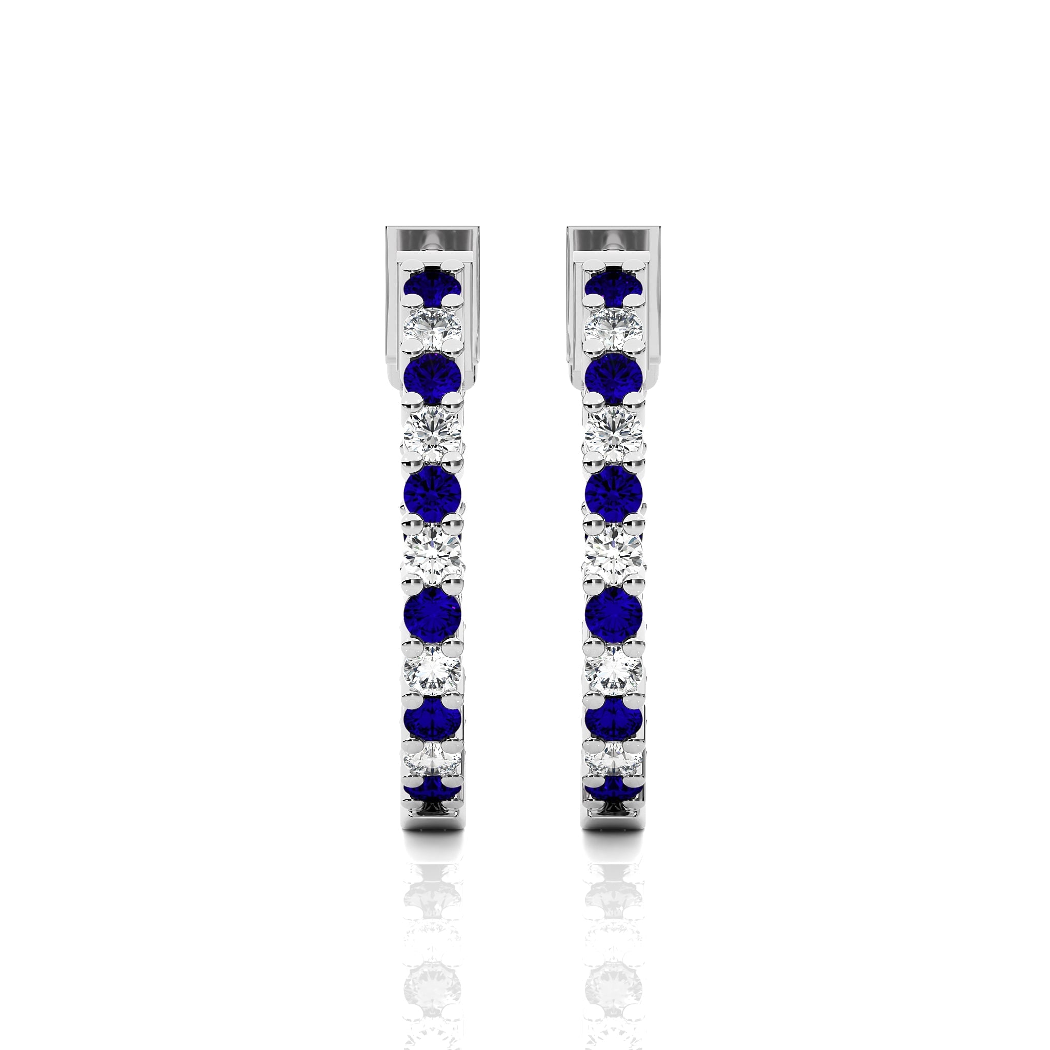 1 1/2 CT. Inside Out Round Natural Diamond and Blue Sapphire Hoop Earrings