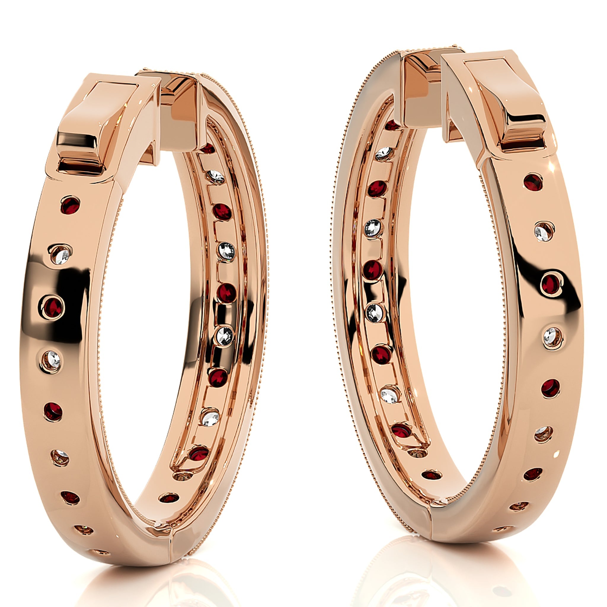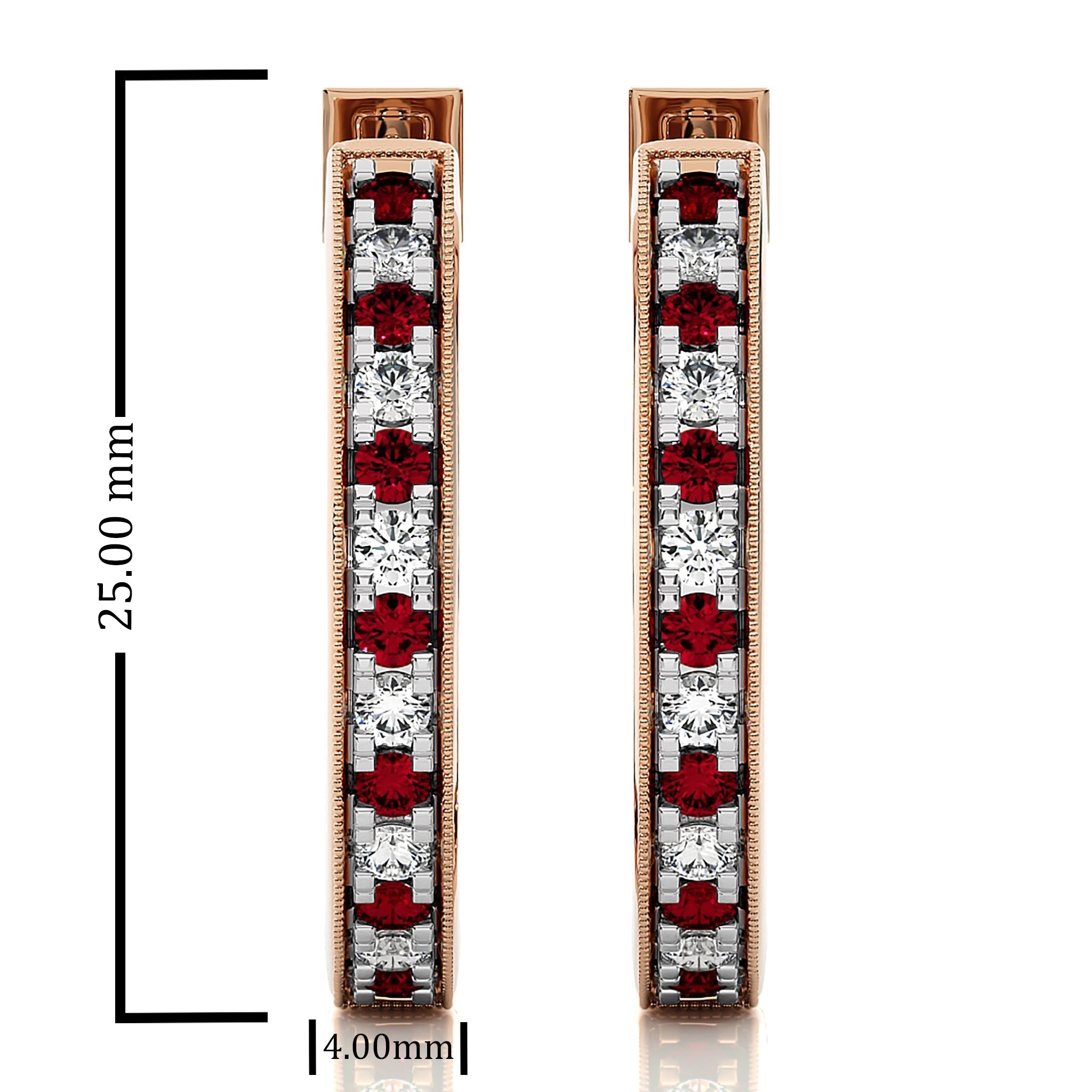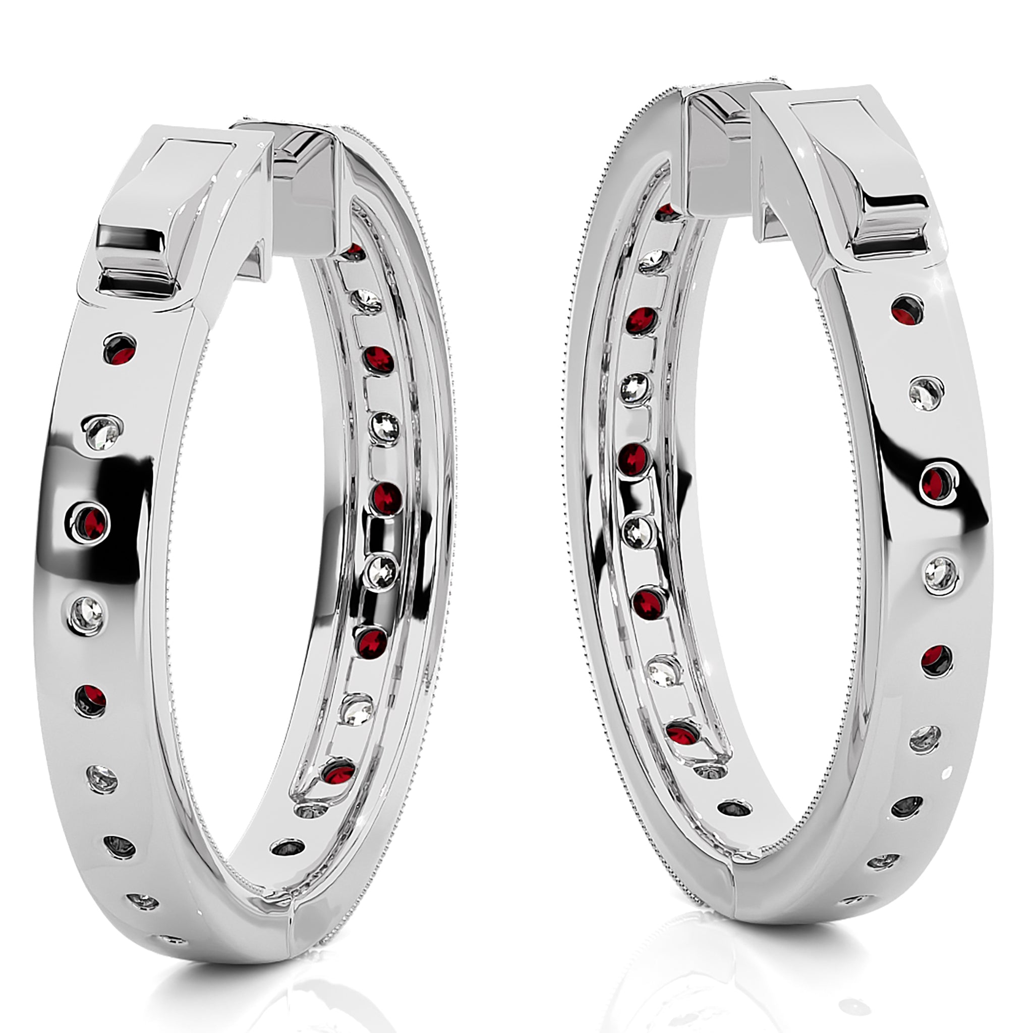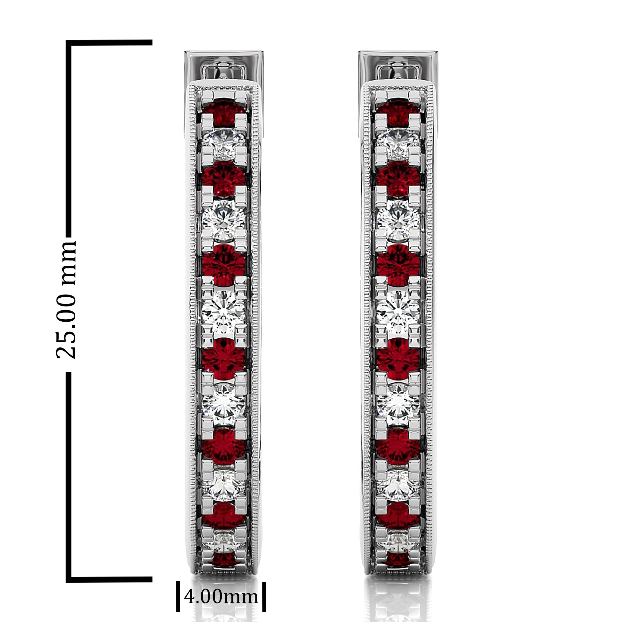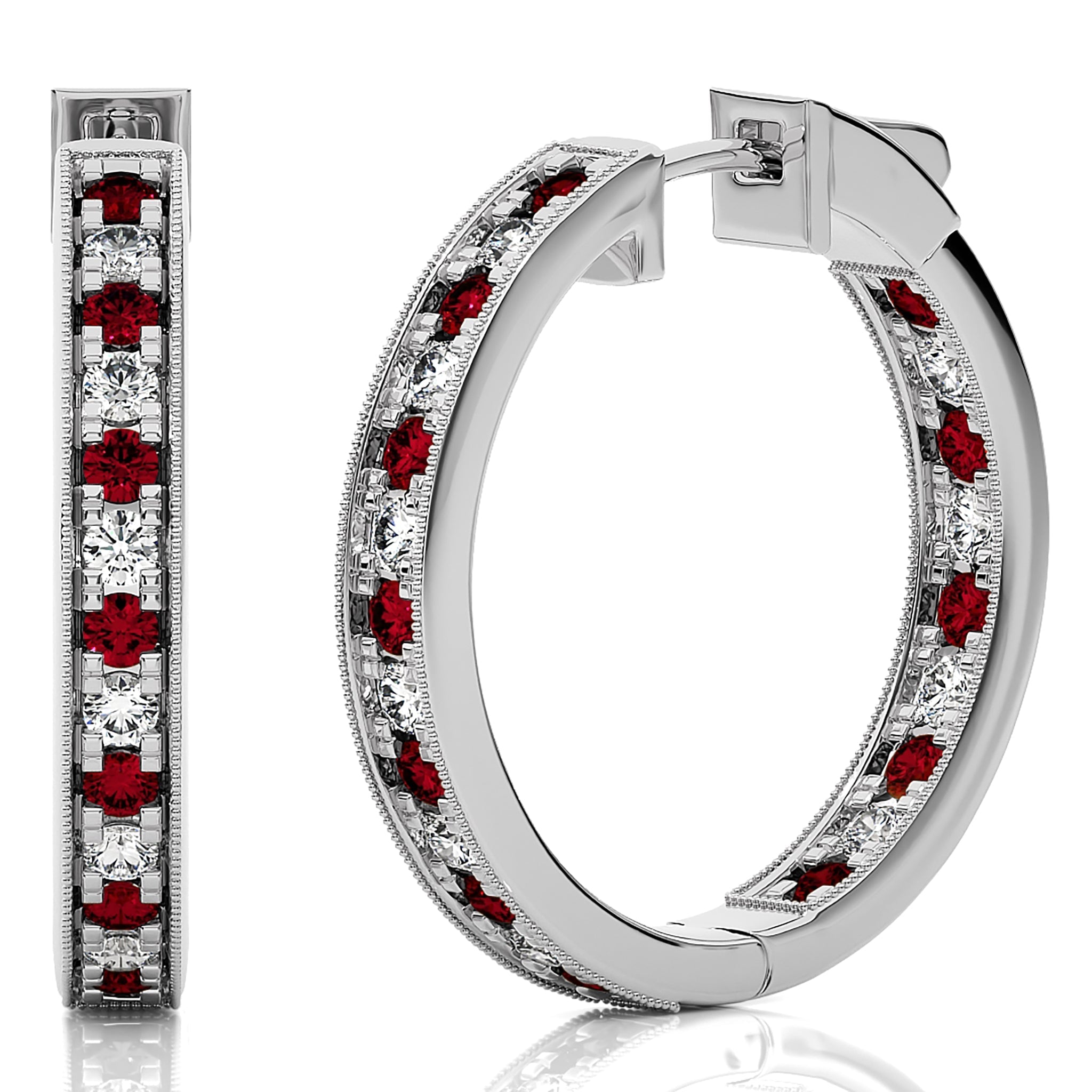 2 CT. Round Natural Diamond and Ruby Inside Out Hoop Earrings