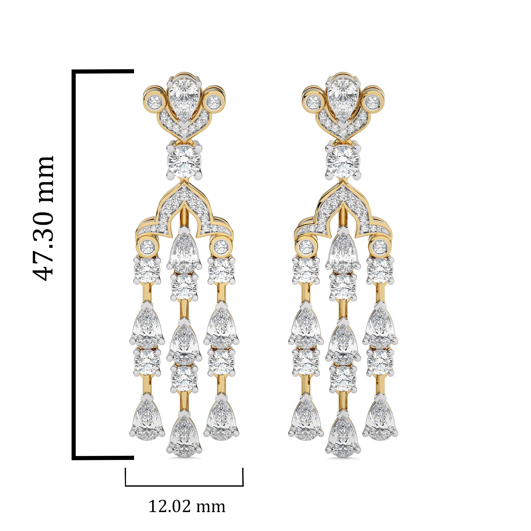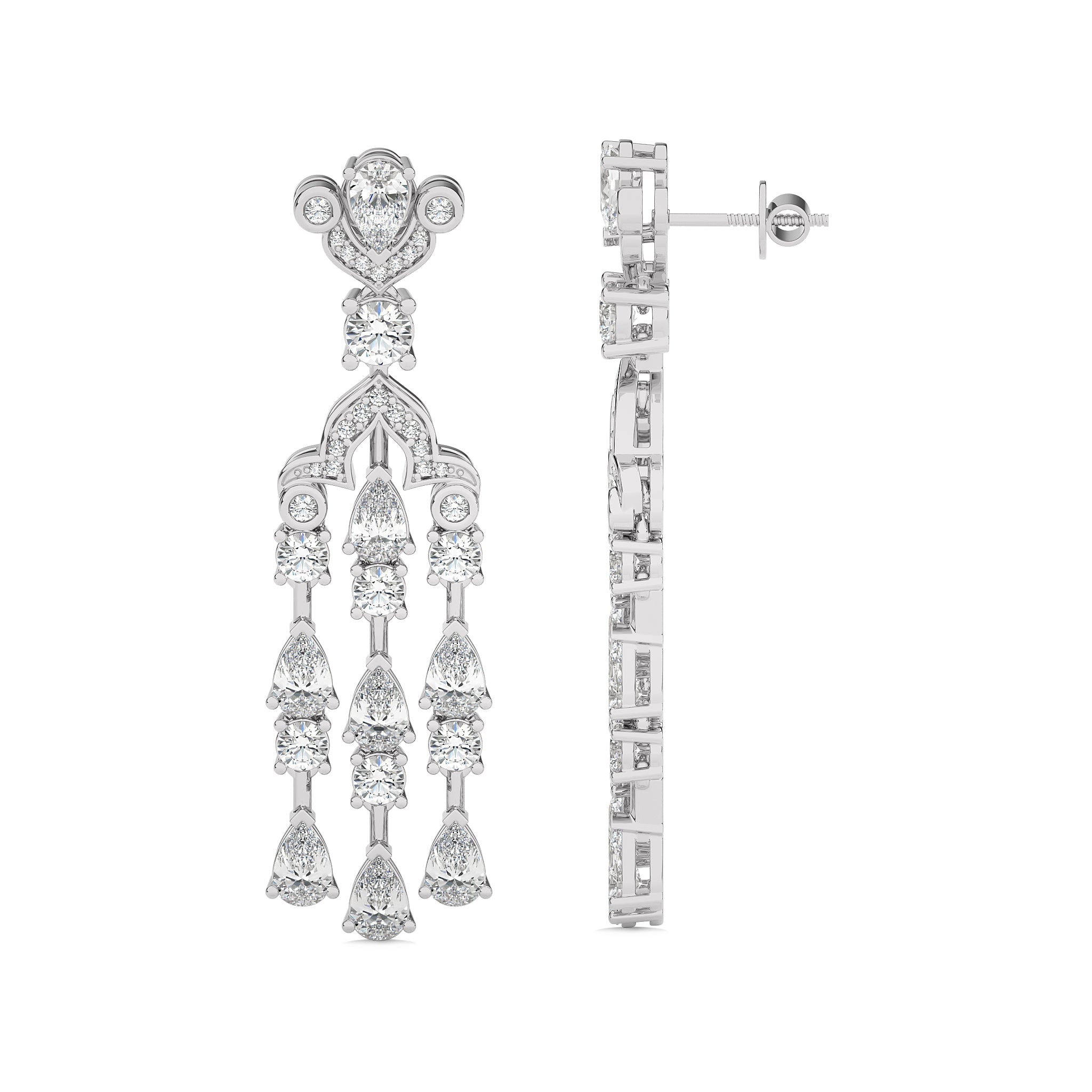 Stand out boldly with these remarkable 6 CT. Round and Pear Natural Diamond Dangle Earrings, featuring H-I/I1-I2 quality diamonds in a pave and prong setting. Their stunning design and luxurious sparkle will add a touch of glamour to any outfit