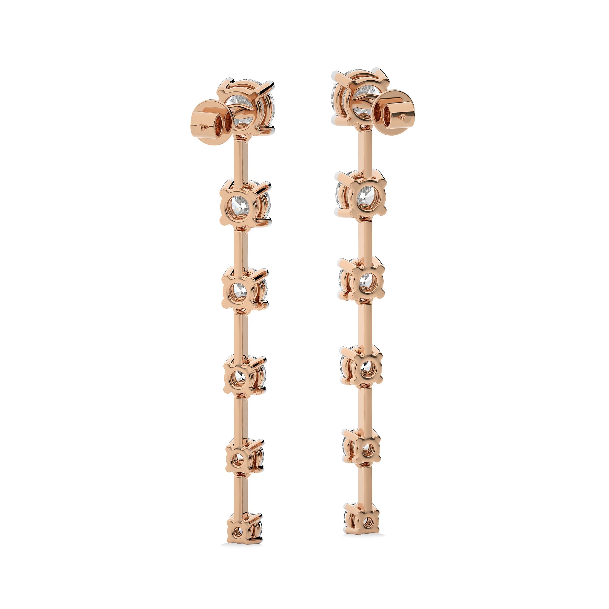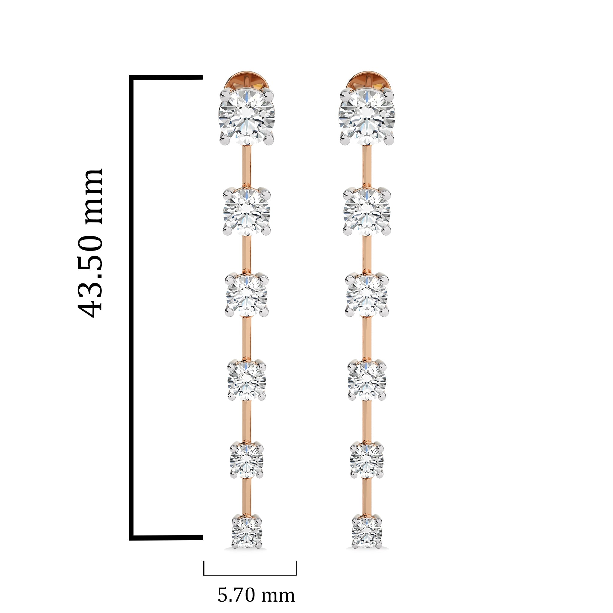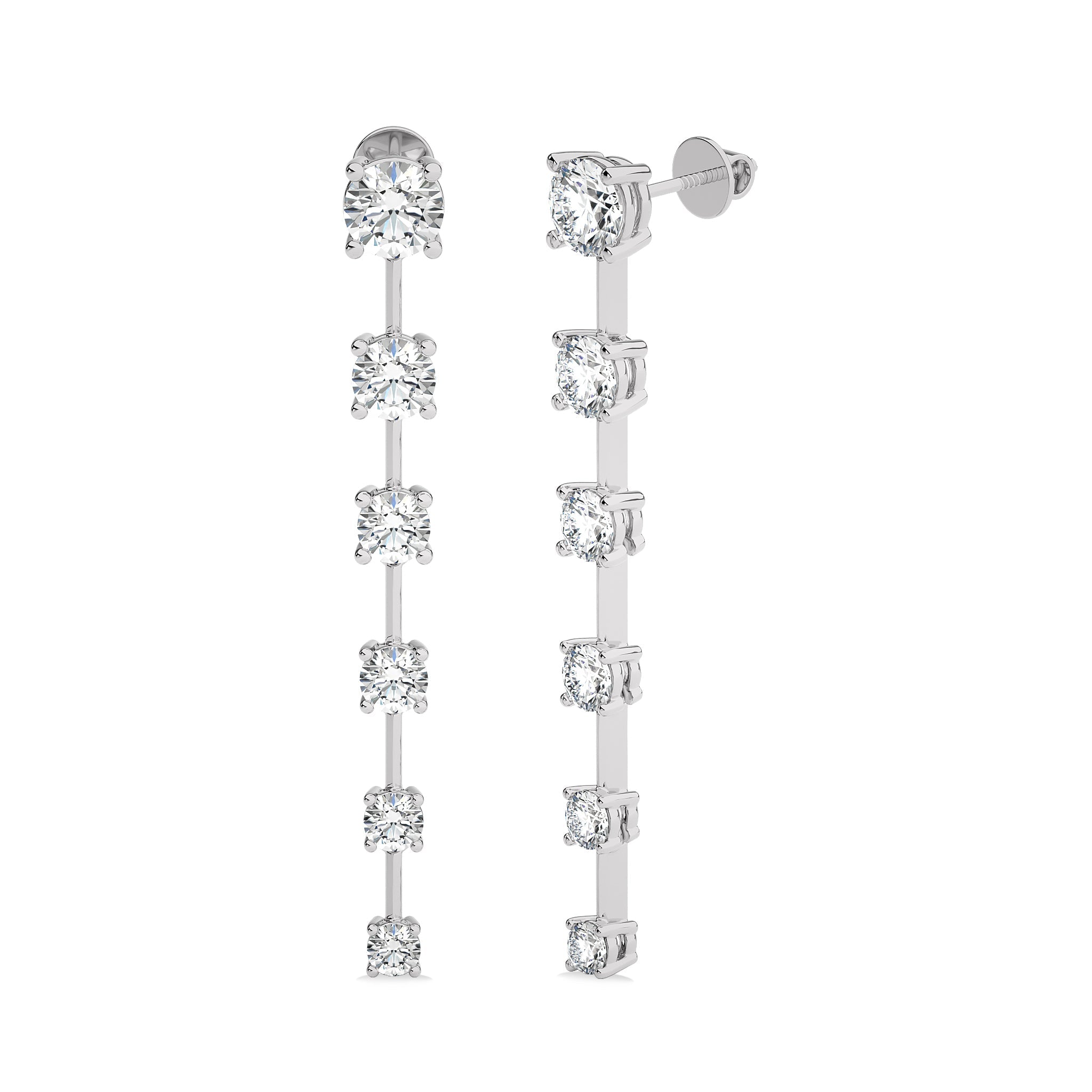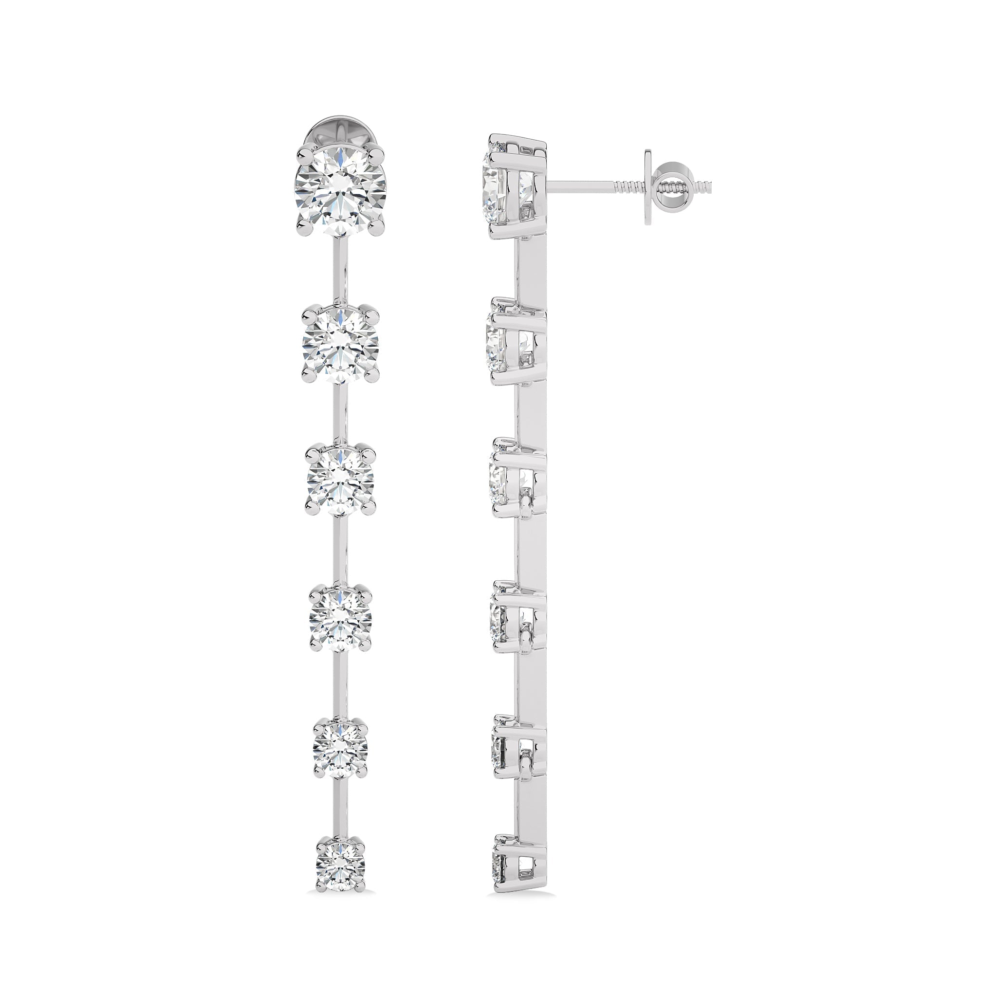 3 CT. Six Stone Round Natural Diamond Gradual Drop Earrings