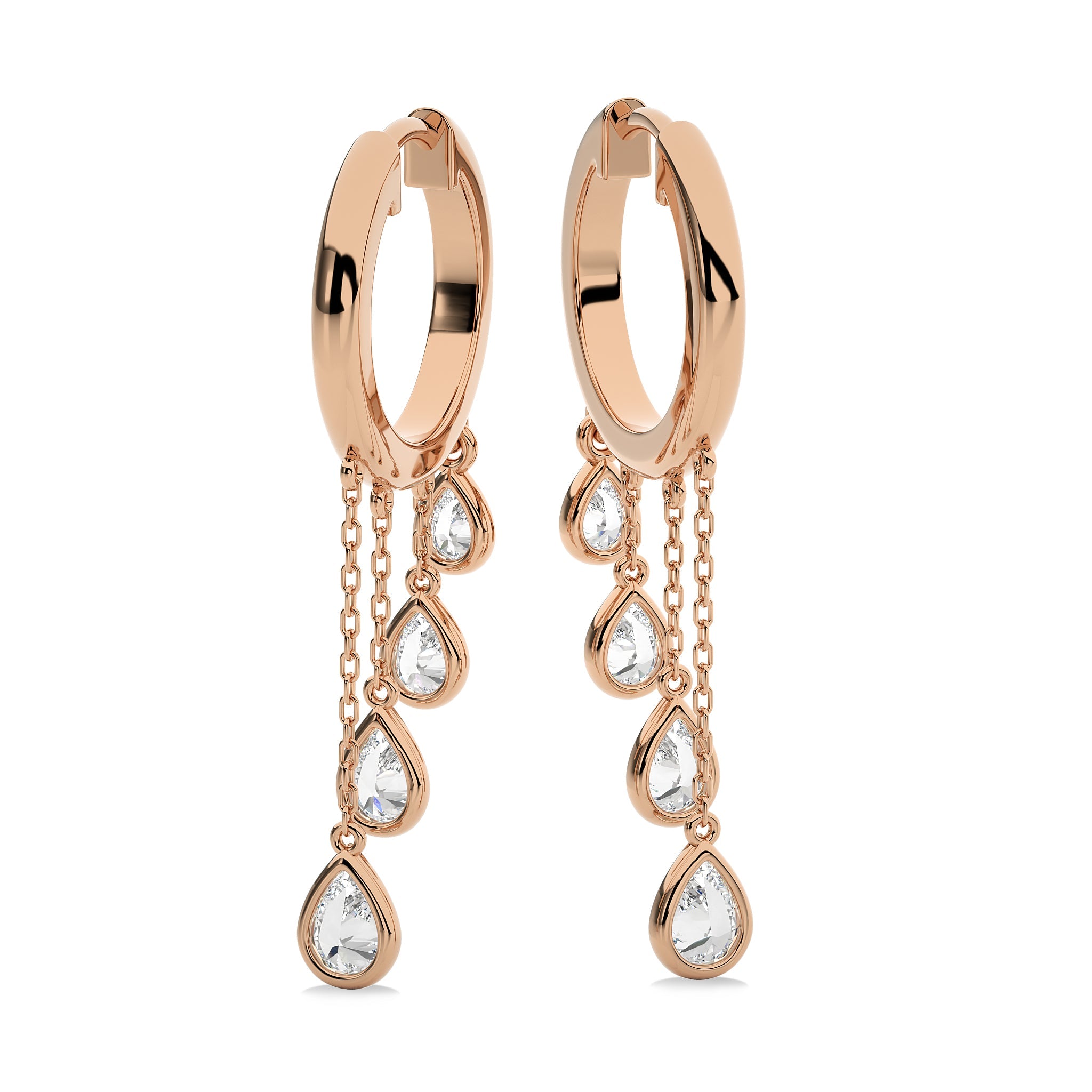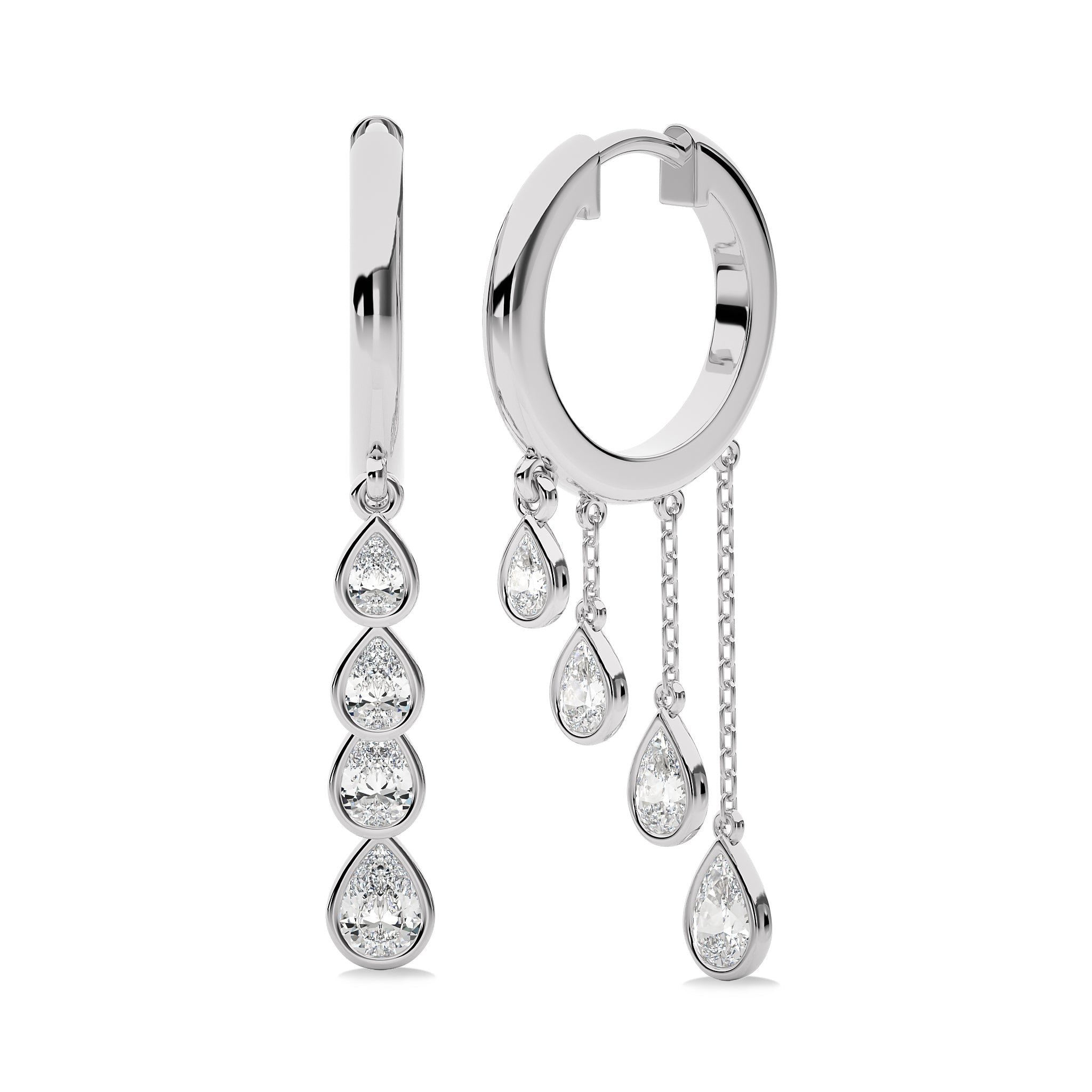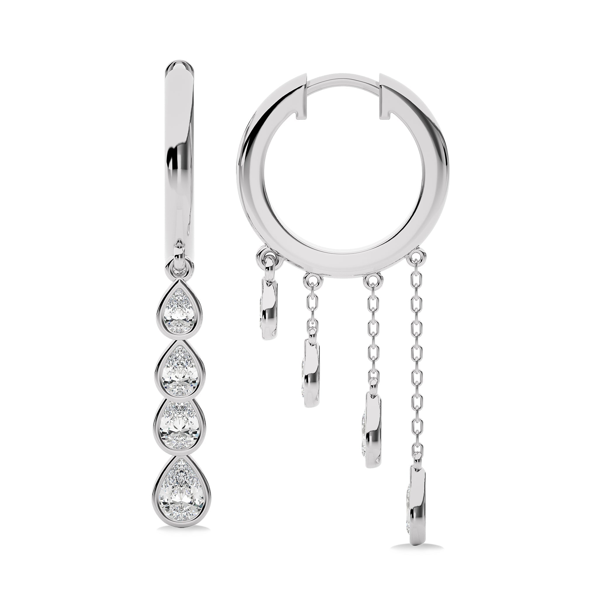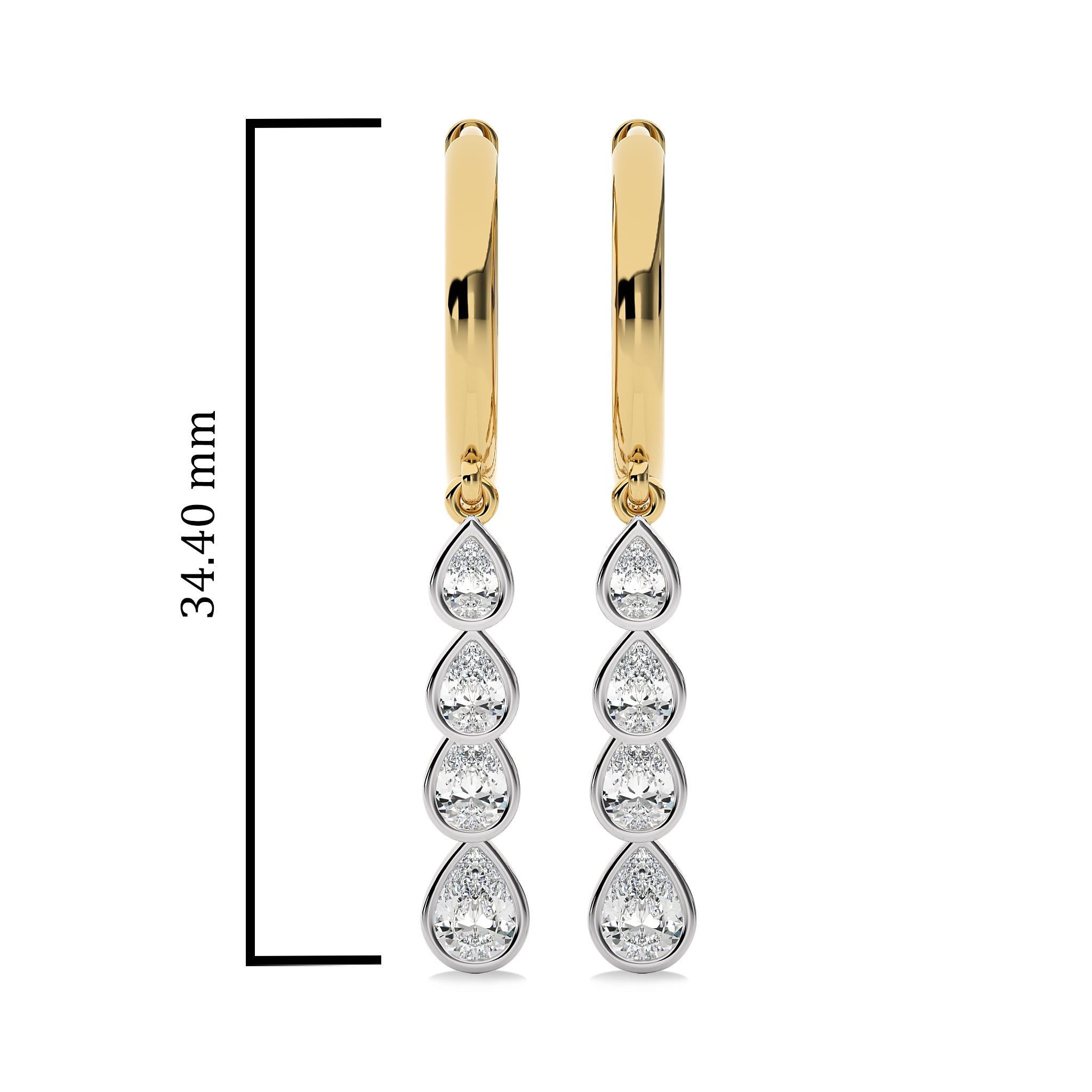 Adopt a chic aesthetic with these 3/4 Ct. Pear Natural Diamond Dangle Earrings, showcasing H-I/I1-I2 quality diamonds in a bezel setting. Their stunning pear shape and delicate design make these earrings an exquisite choice for enhancing your jewelry collection