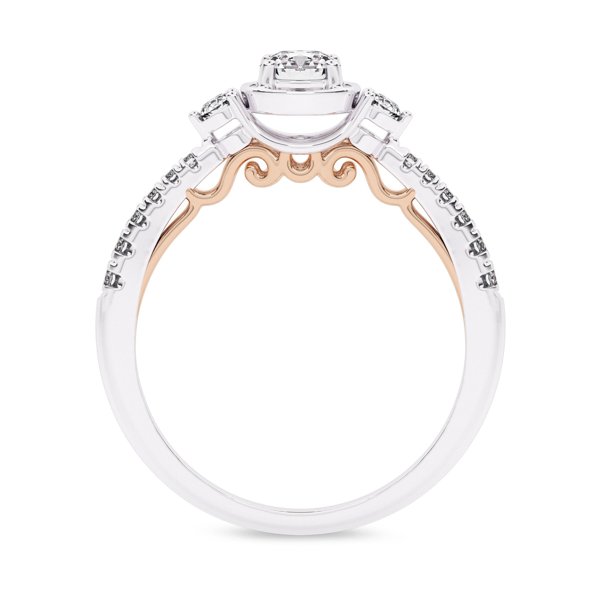 5/8 CT. Three stone style Two Tone Engagement Ring