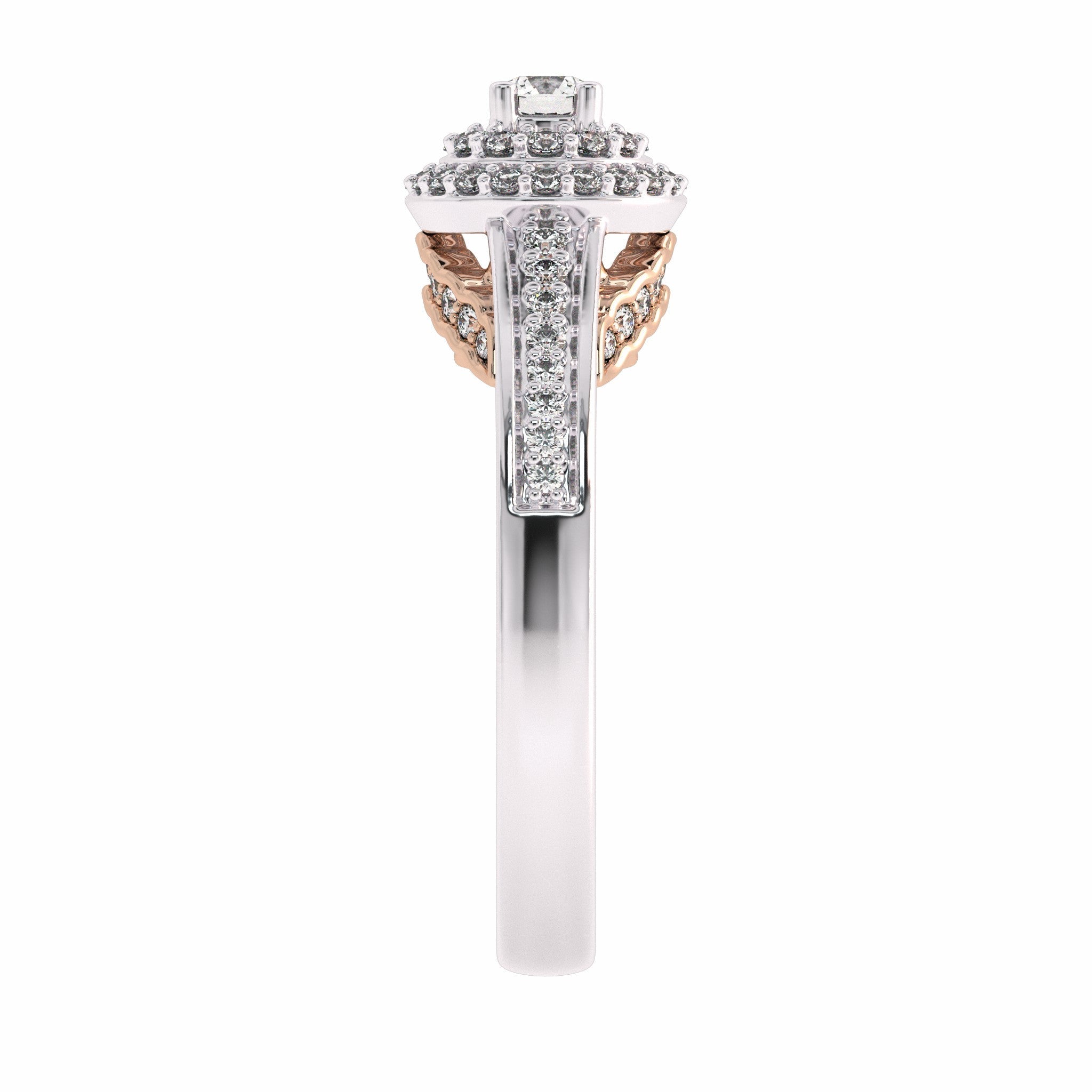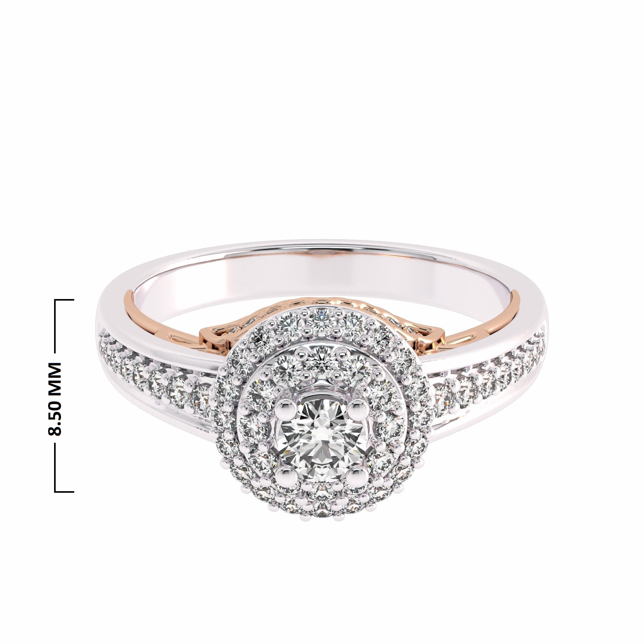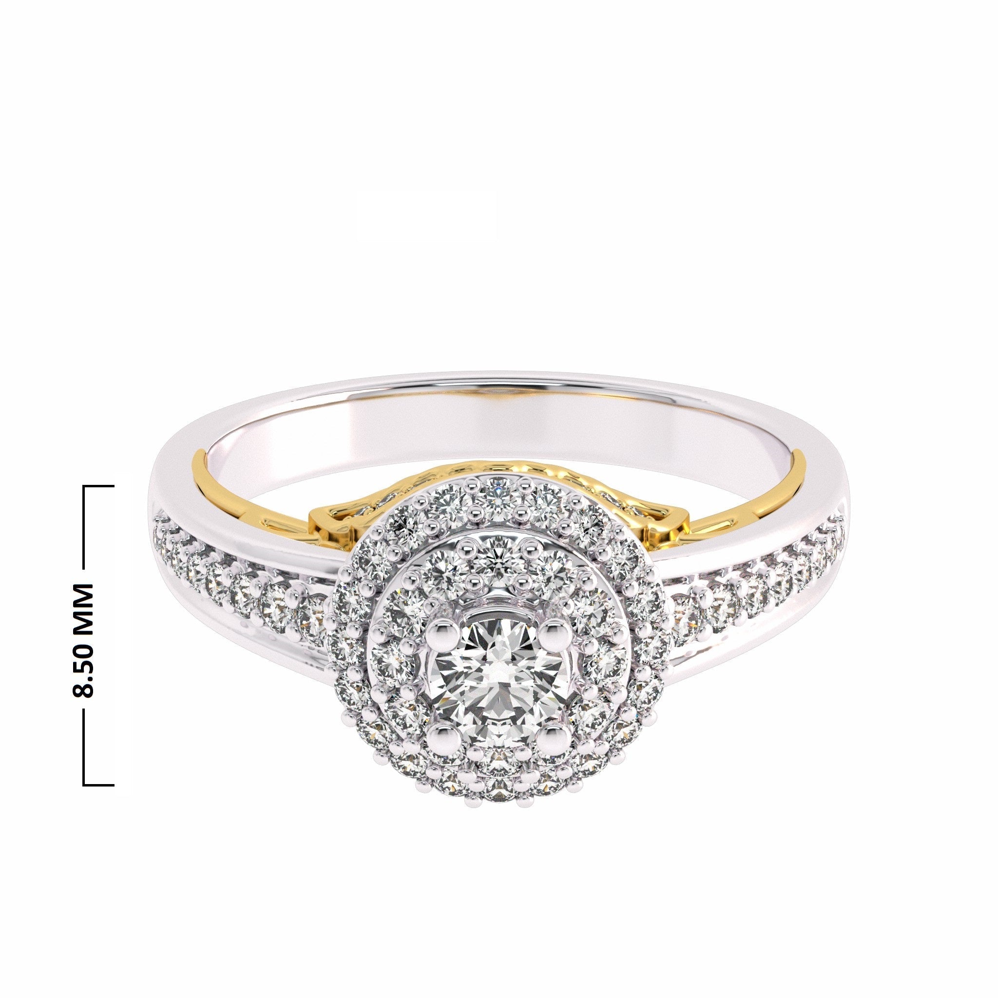 Elegant and timeless, our 1/2 carat Two Tone Engagement Ring features a brilliant G-H/SI quality diamond set in a stunning pave and prong setting. Overall, this ring is a testament to the beauty and elegance of true love, and is sure to become a cherished family heirloom for generations to come.