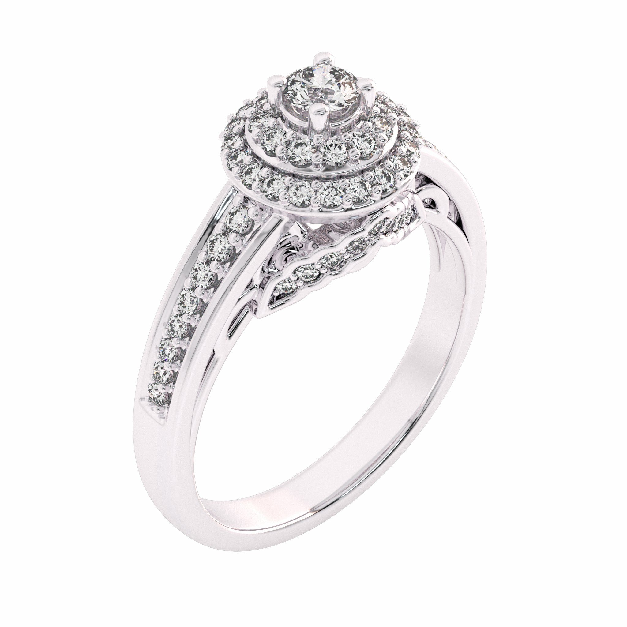 1/2 CT Round Diamond Halo Engagement Ring