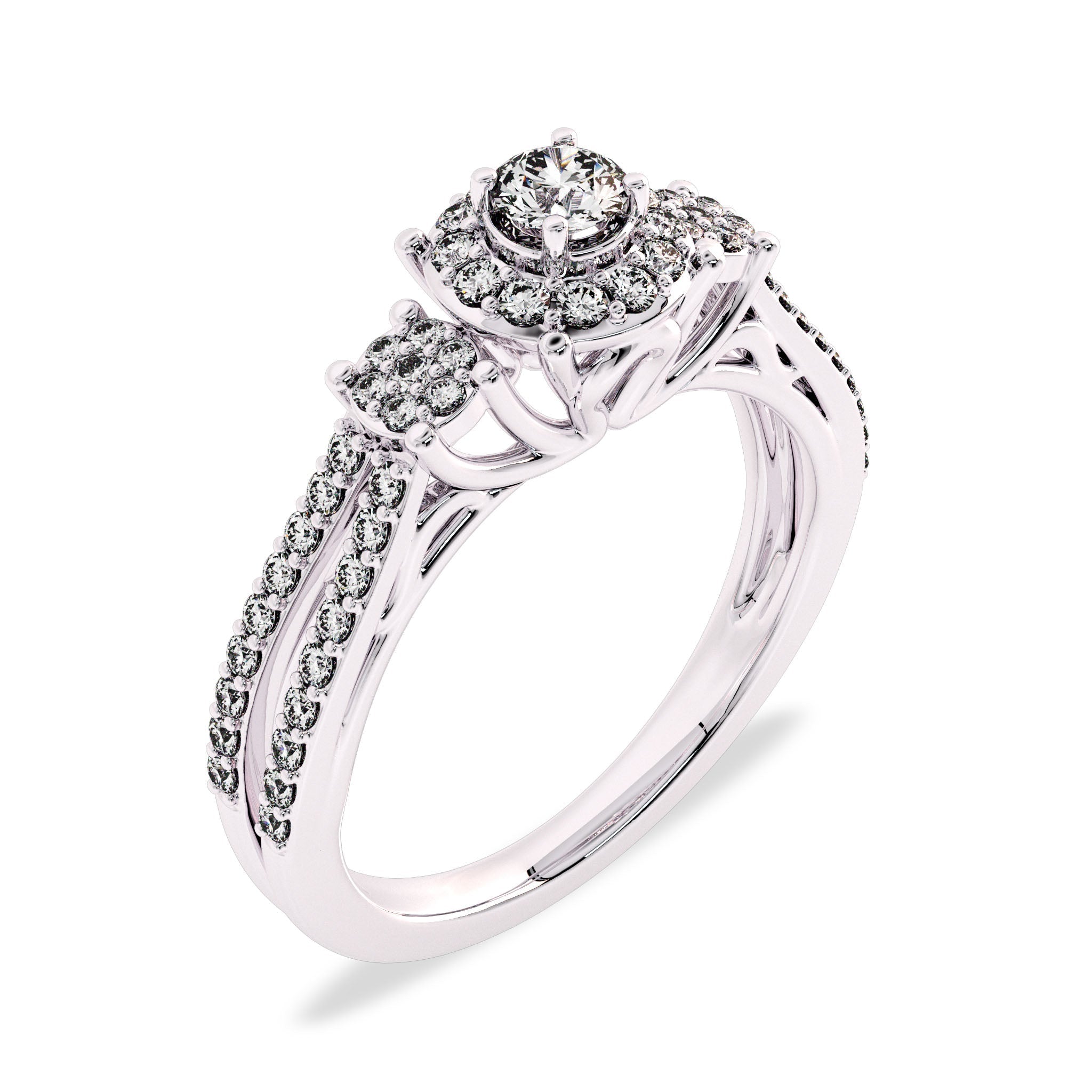 1/2 CT Round Diamond Triology Styled Halo Engagement Ring
