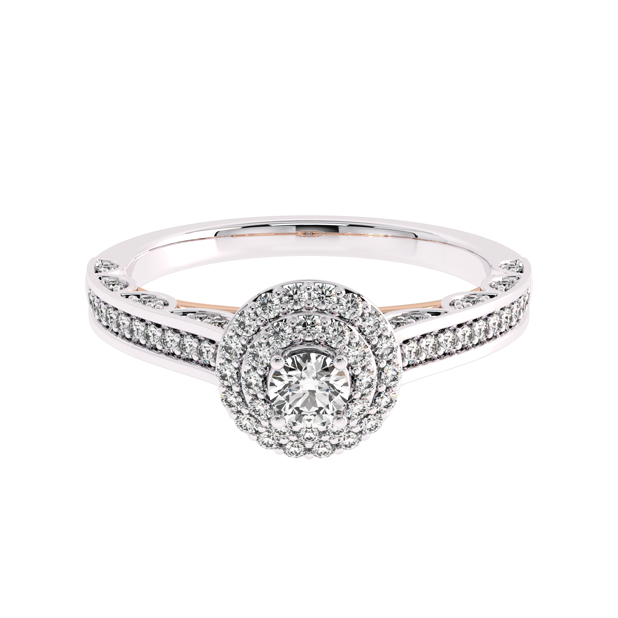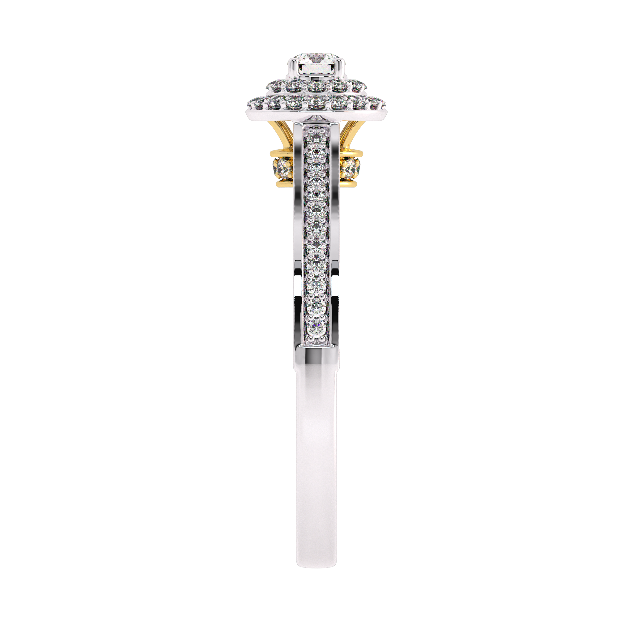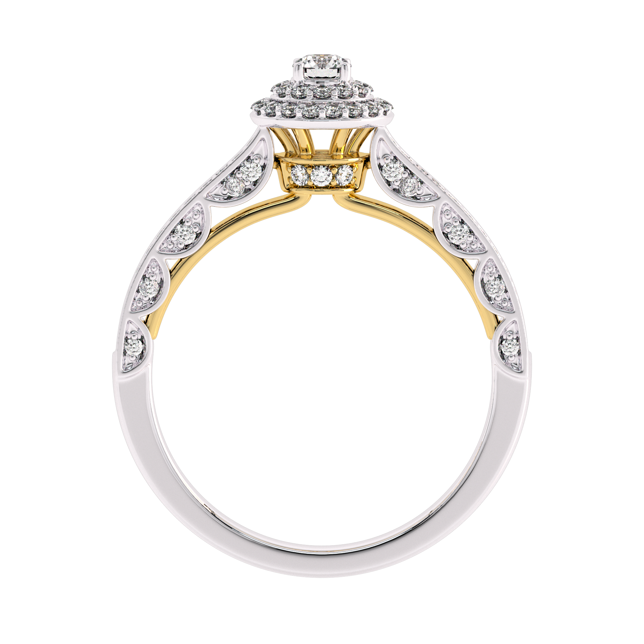 Indulge in luxury with our Two Tone Split Shank Engagement Ring. Crafted to perfection, this ring features a 1 carat stunning DEF/SI quality lab-created diamonds set in a combination of pave and prong settings. This ring is a true statement of your love and commitment, sure to be cherished for a lifetime