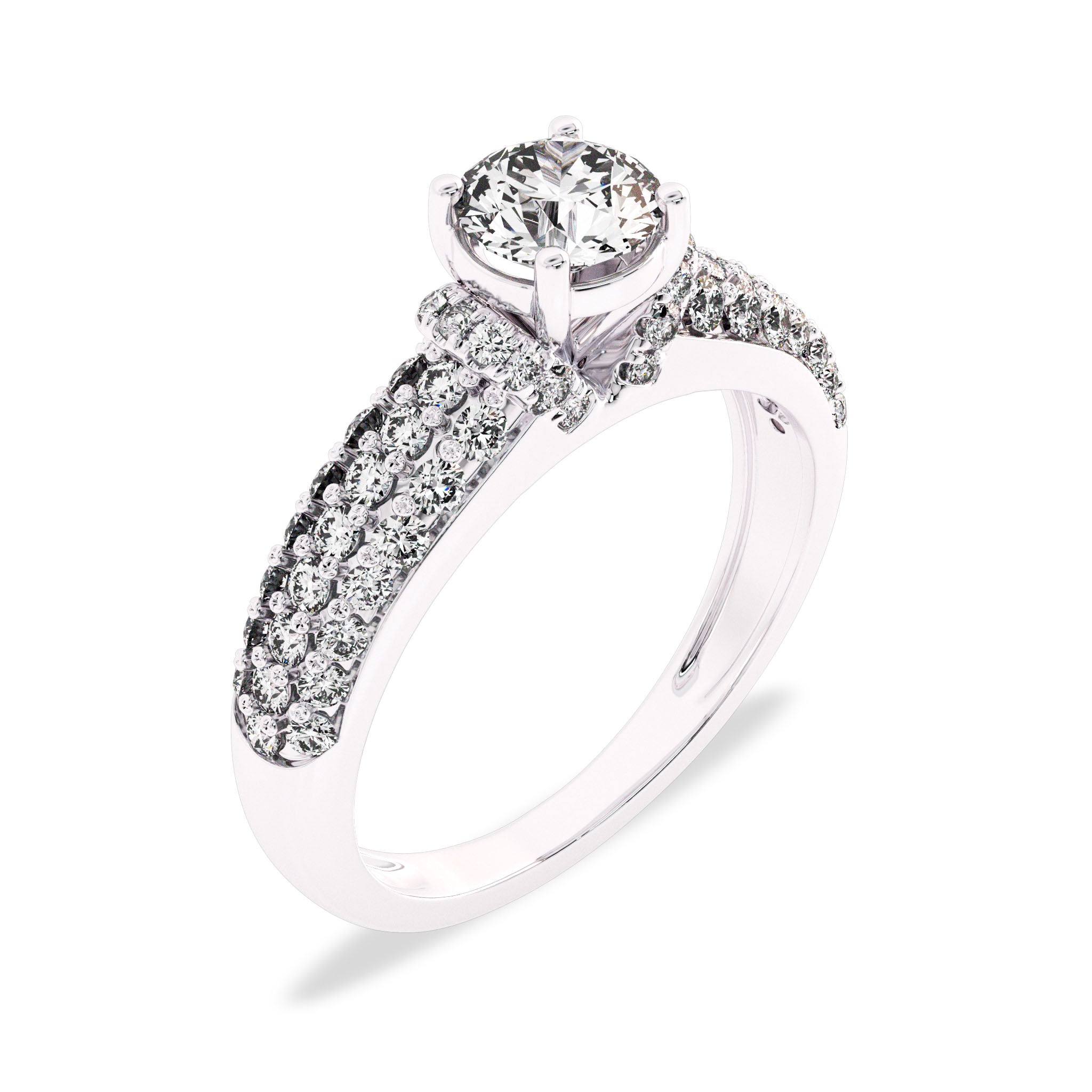 Celebrate your love with our Classic 1 carat Engagement Ring,The center diamond, with its exquisite DEF/SI quality is perfectly complemented by the sparkling DEF/SI quality side stones set in a pave and prong setting.this ring is a symbol of your forever love and commitment