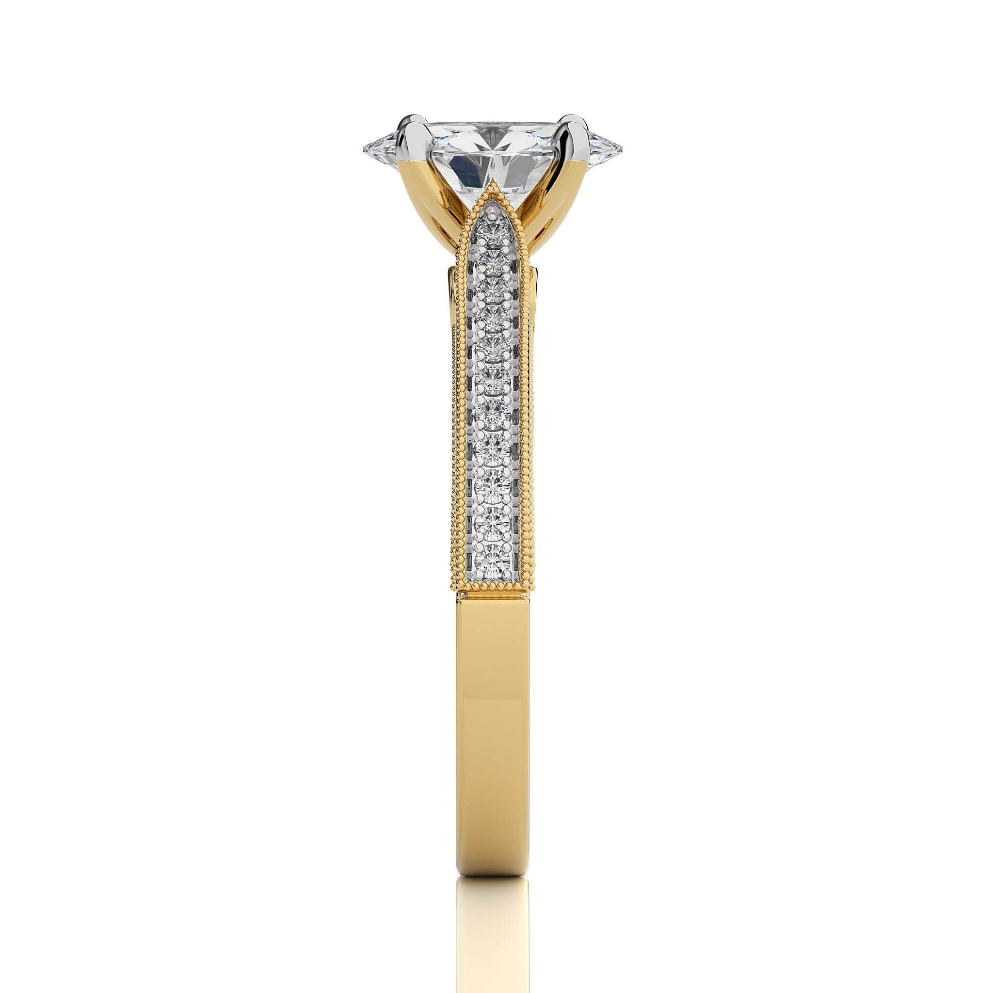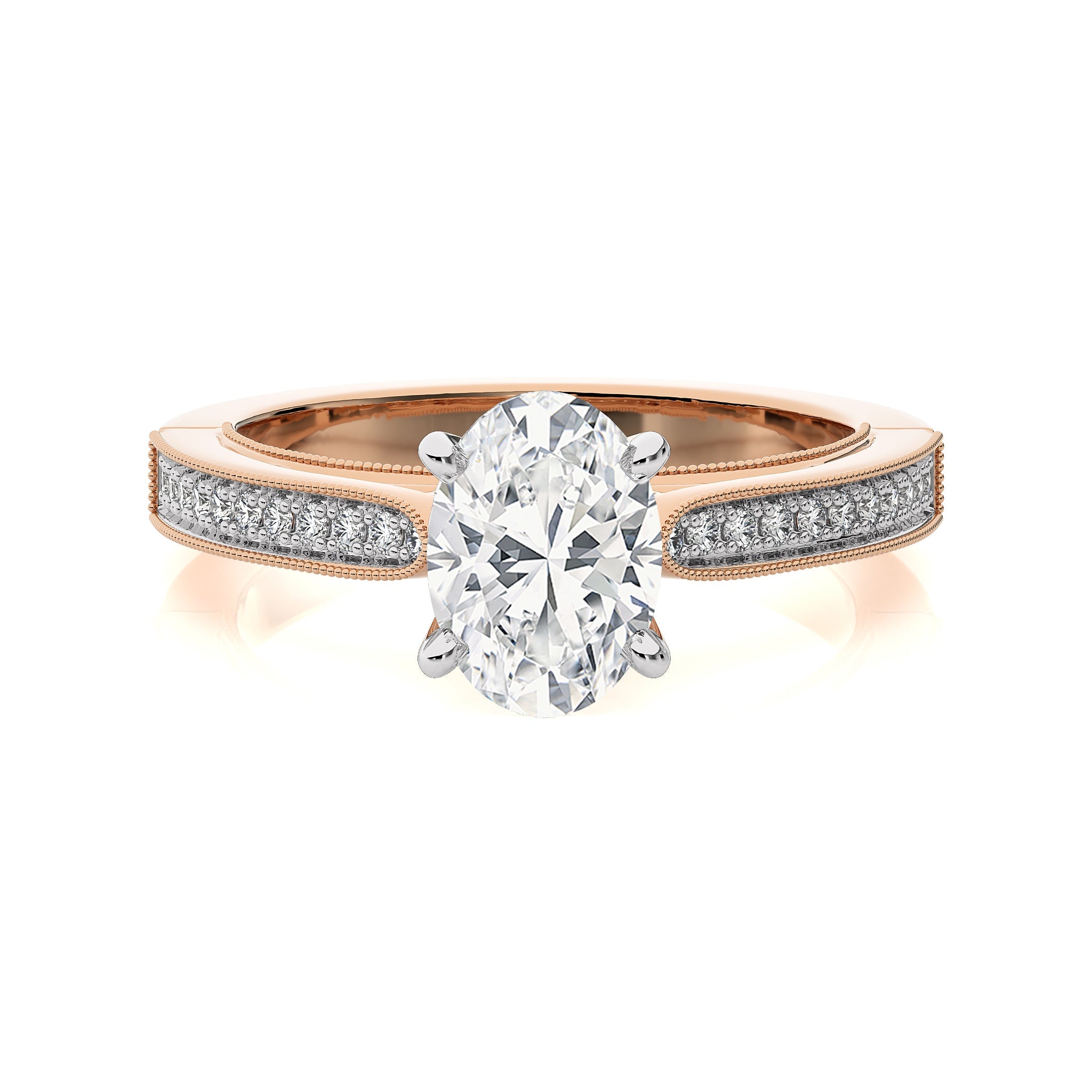 Luxuriate in lasting grace with the Heritage Oval Sparkle Lab Created Diamond Engagement Ring. Showcasing a dazzling 1 1/2 carat center stone, this 1 3/4 carat total piece is crafted in DEF/SI quality. The combination of pav??, bezel, and prong settings highlights the oval diamond's brilliance, making it a stunning symbol of eternal love