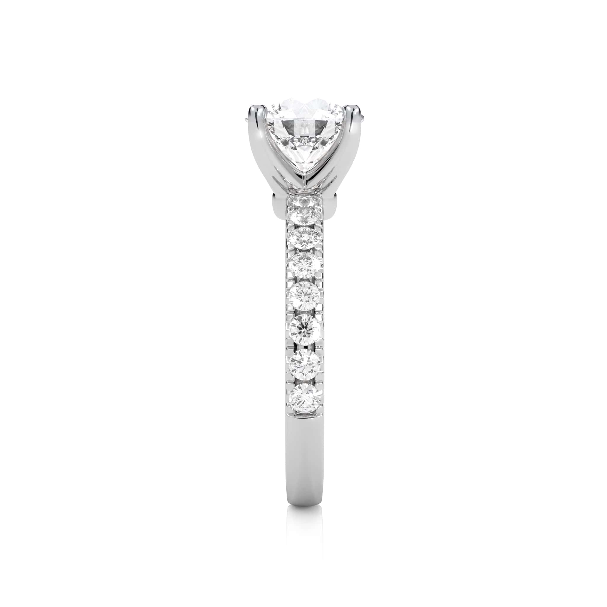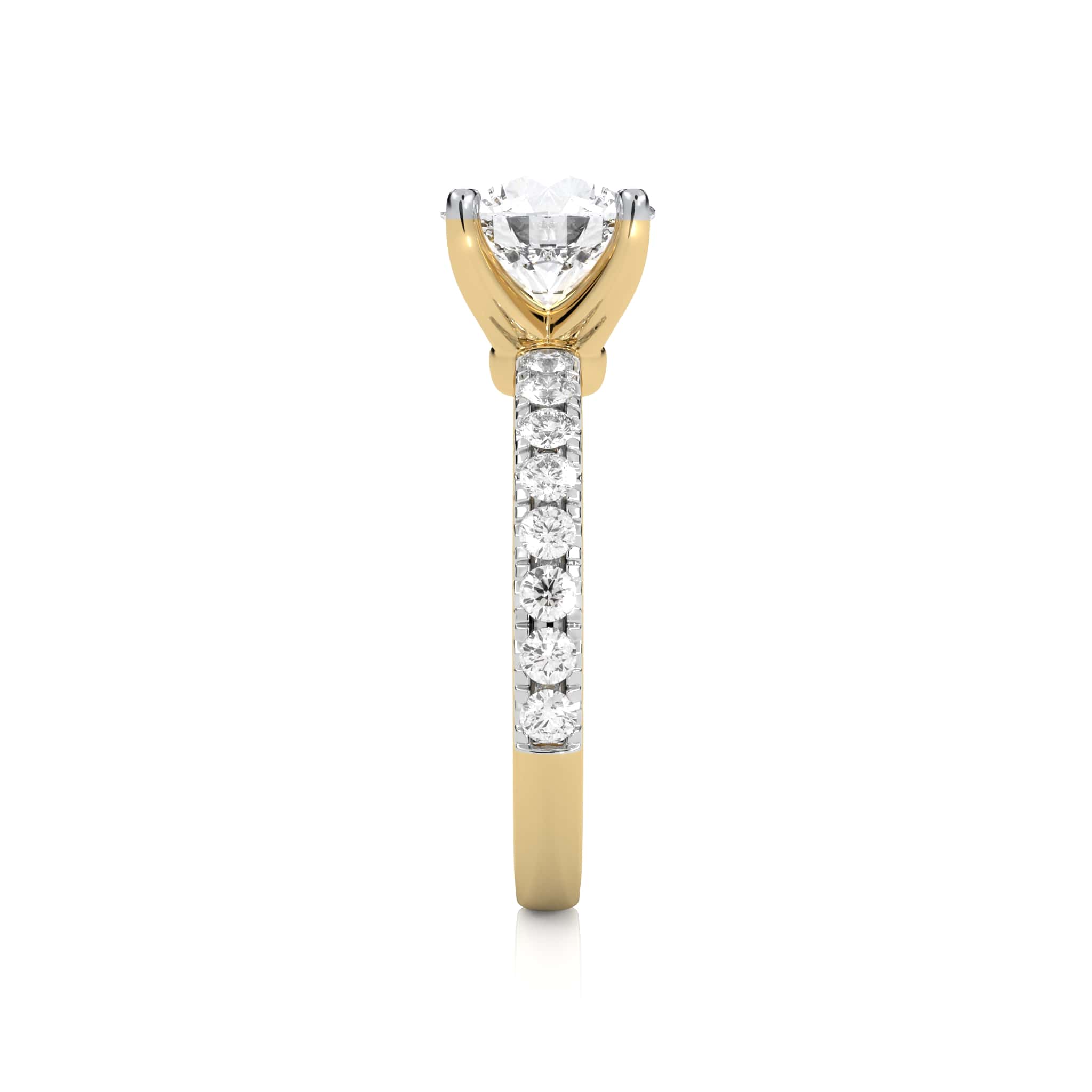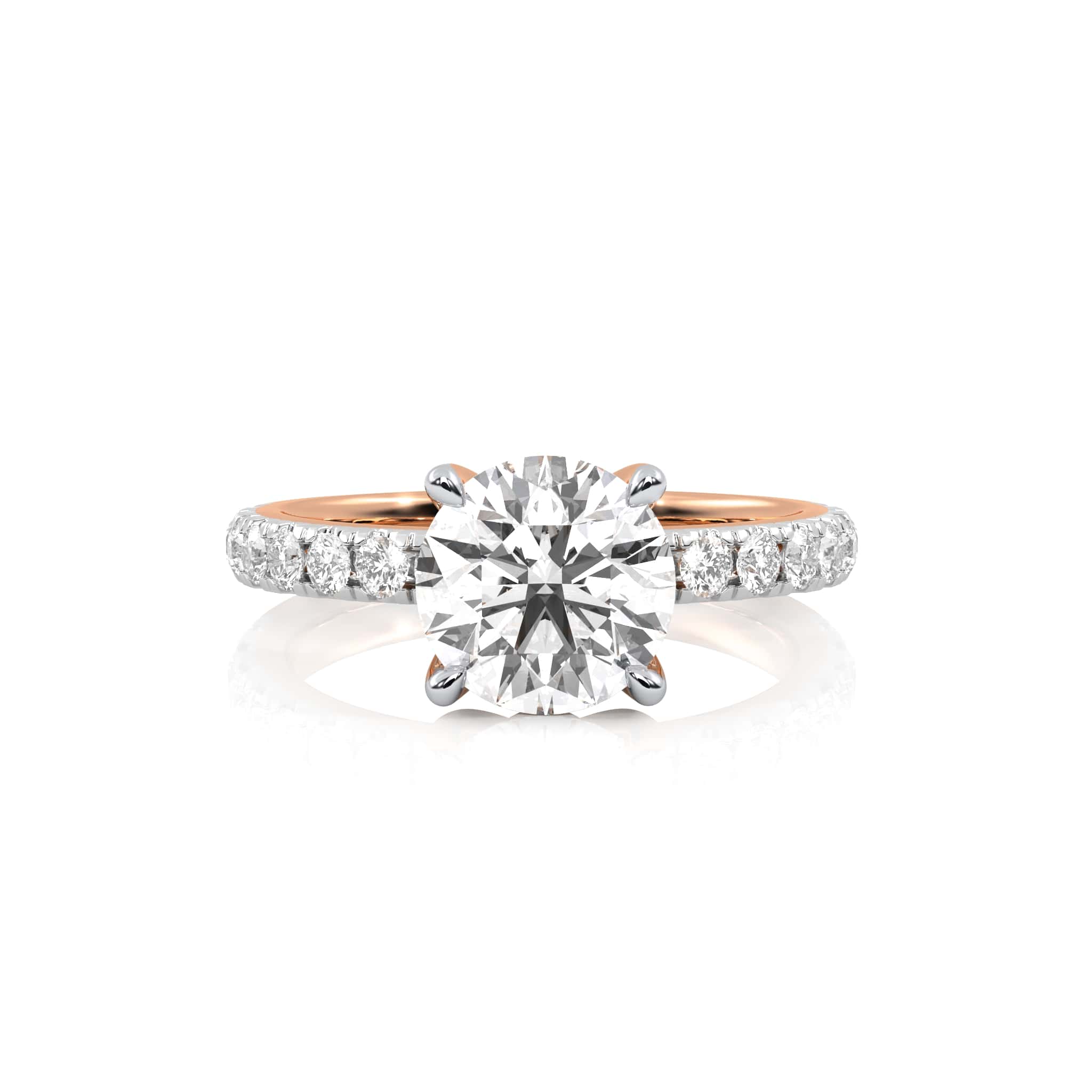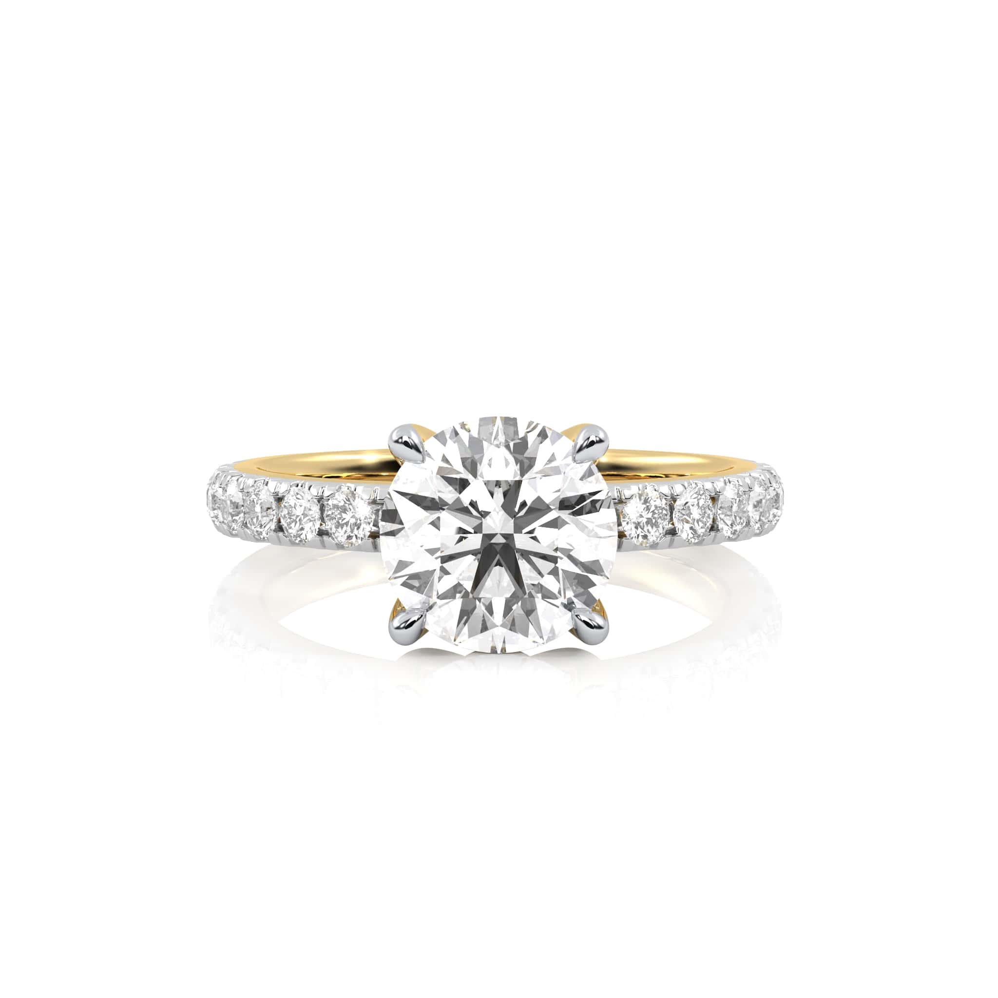 Celebrate radiant beauty with the EverBright Engagement Ring, featuring a dazzling 2 carat round center diamond accented by 1/2 carat round side stones crafted with Natural diamonds of H-I/I1-I2 quality in a refined micro-prong and prong setting, this design embodies brilliance and enduring elegance