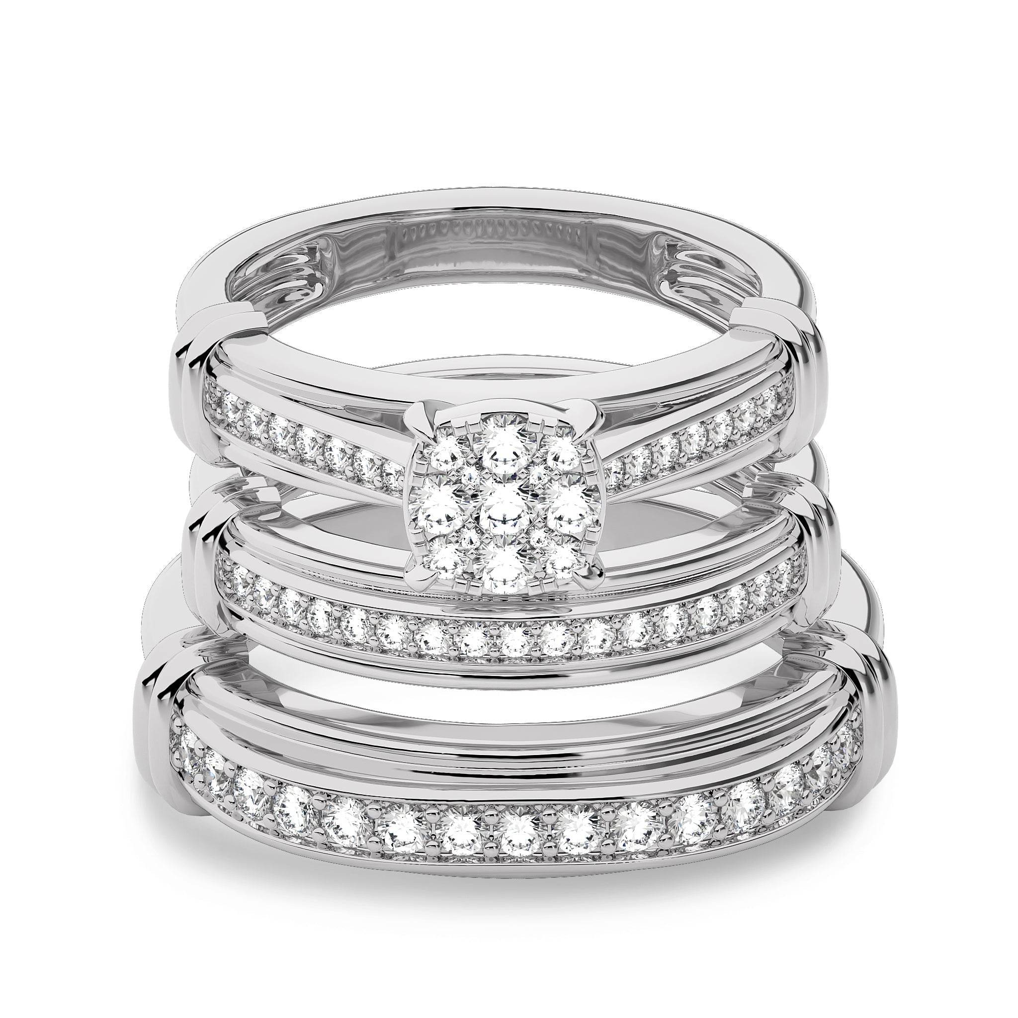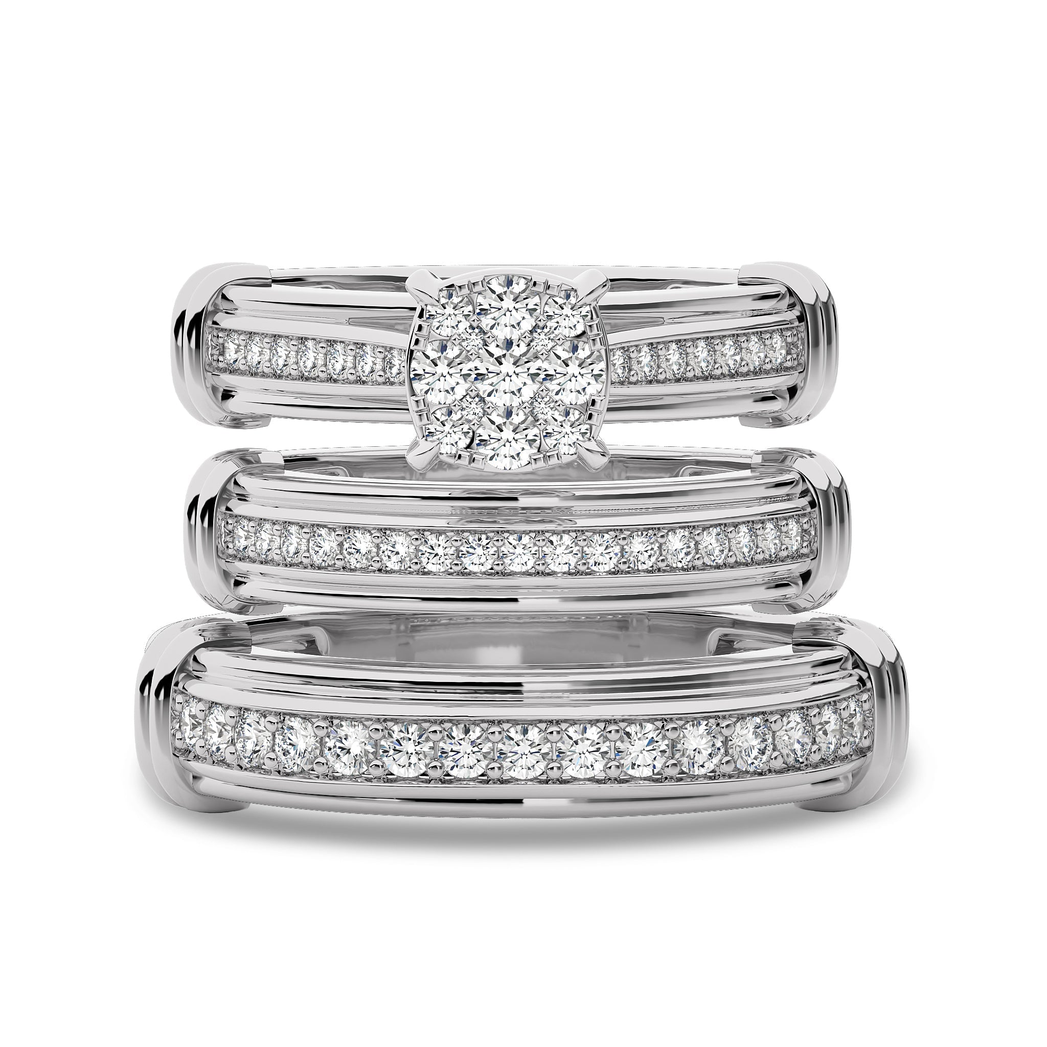 Begin your discovery with our 3/4 CT. Round Lab Created Diamond Trio Set Band Ring. Featuring DEF/SI Quality diamonds totaling 3/4 carats, set in micro split, pave, and pressure settings. Perfect for adding sparkle to any occasion.Contact us for His & Her Ring Sizes