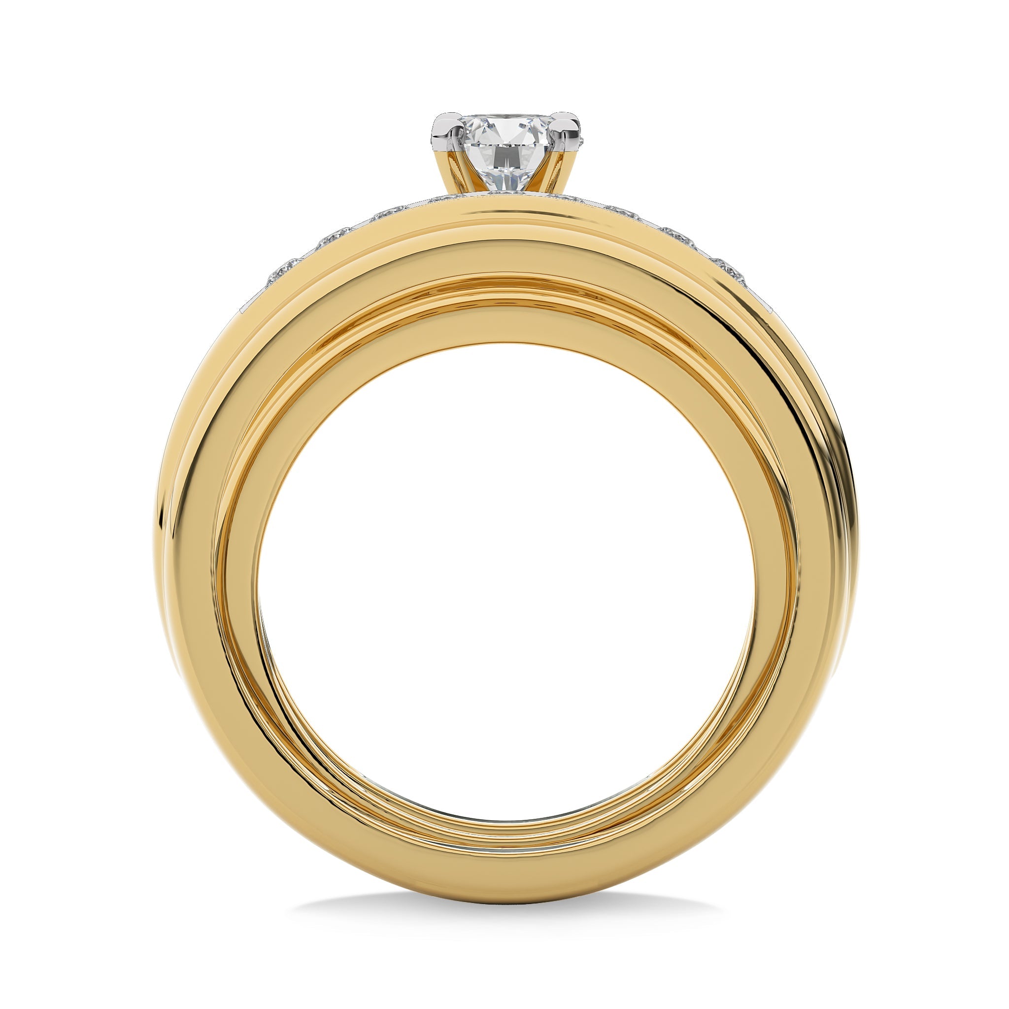 Brilliant and timeless, this 1 CT. Round Natural Diamond Trio Set Band Ring Features H-I color and I1-I2 clarity diamonds. The nick setting highlights the radiance of each stone, creating a piece that's both elegant and captivating. Contact us for His & Her Ring Sizes