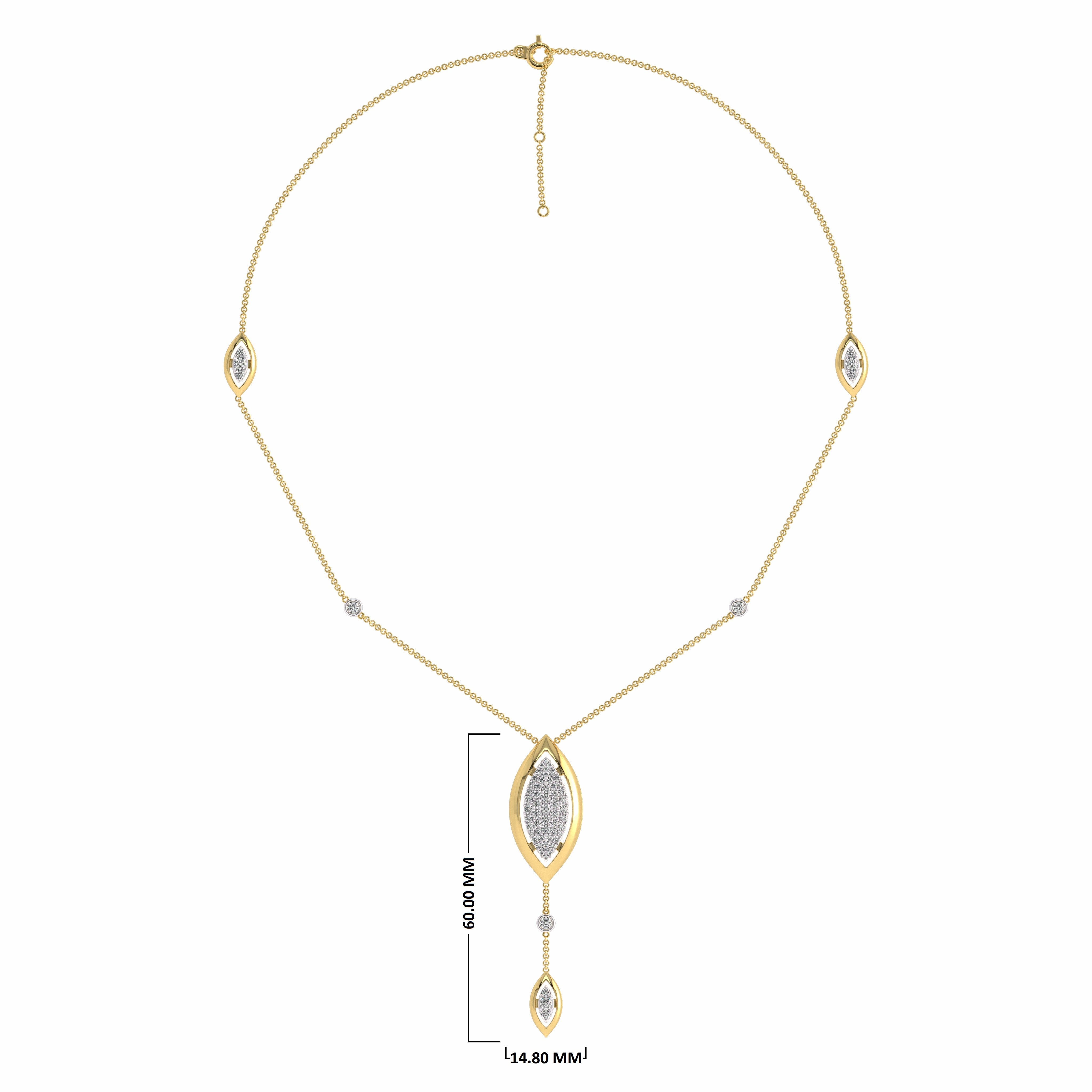 Indulge in the artistry of luxury with our 1 1/4 CT. Natural Round Diamond Studded Designer Y Necklace. A masterpiece of elegance, it features the exquisite brilliance of G-H/VS-SI diamonds intricately placed within a micro split setting. This necklace is more than a piece of jewelry; it's a reflection of your singular style, captivating all who admire the delicate sparkle that adorns your neckline.