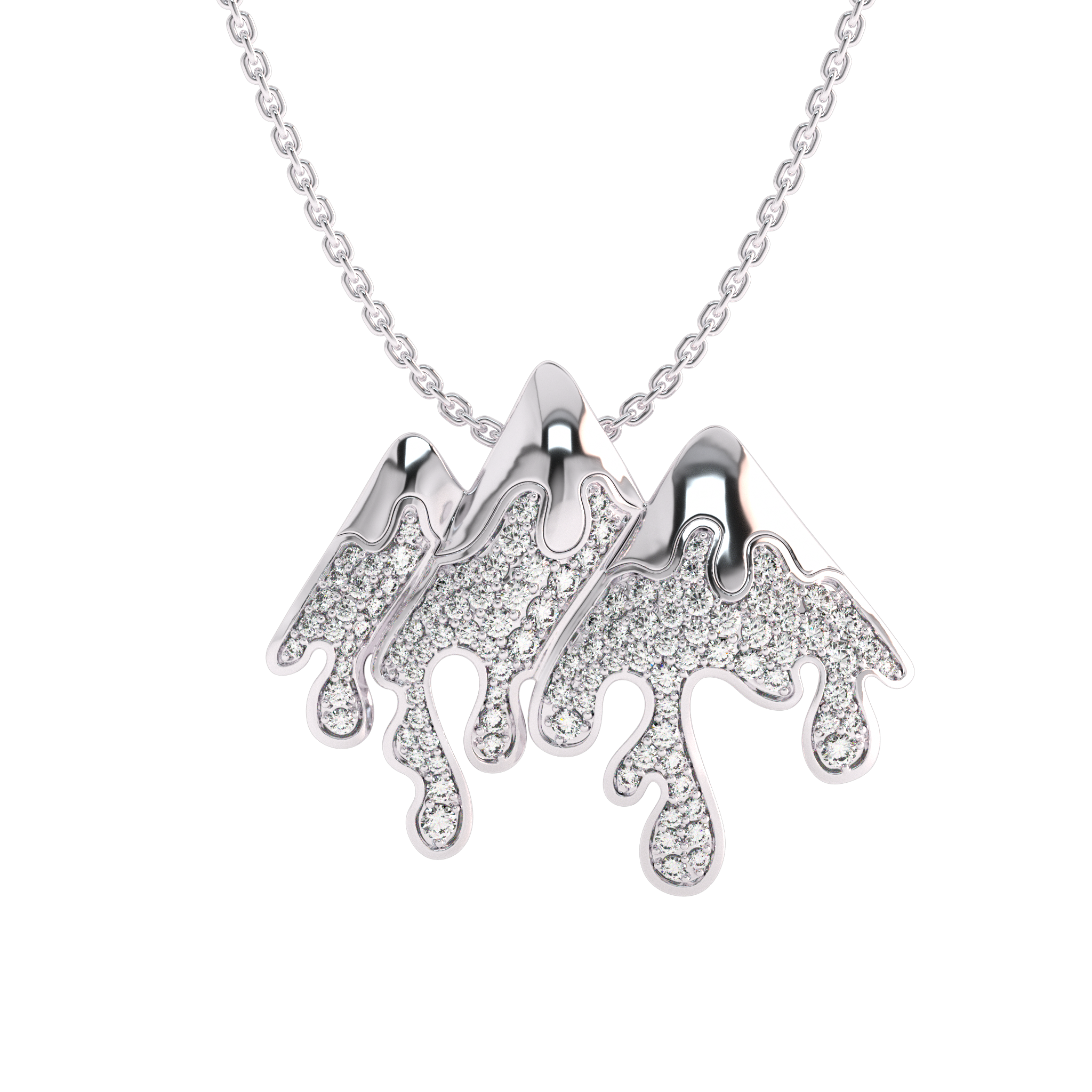 1 CT. Natural Diamond Round Diamond Studded Melting Ice Mountain Charm Pendant
