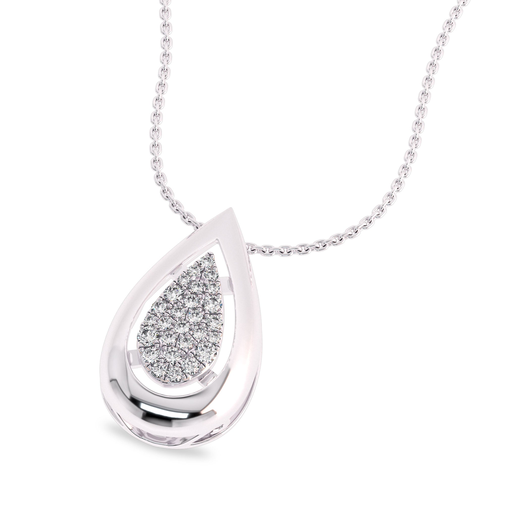 Elevate your elegance with our 3/4 Ct. Lab Created Round Diamond Studded Designer Cluster Teardrop Pendant. This exquisite pendant, meticulously crafted in a micro split setting, showcases a collection of Lab Created diamonds with DEF color and SI quality. Its unique teardrop design exudes timeless charm and sophistication, making it a captivating accessory for any occasion