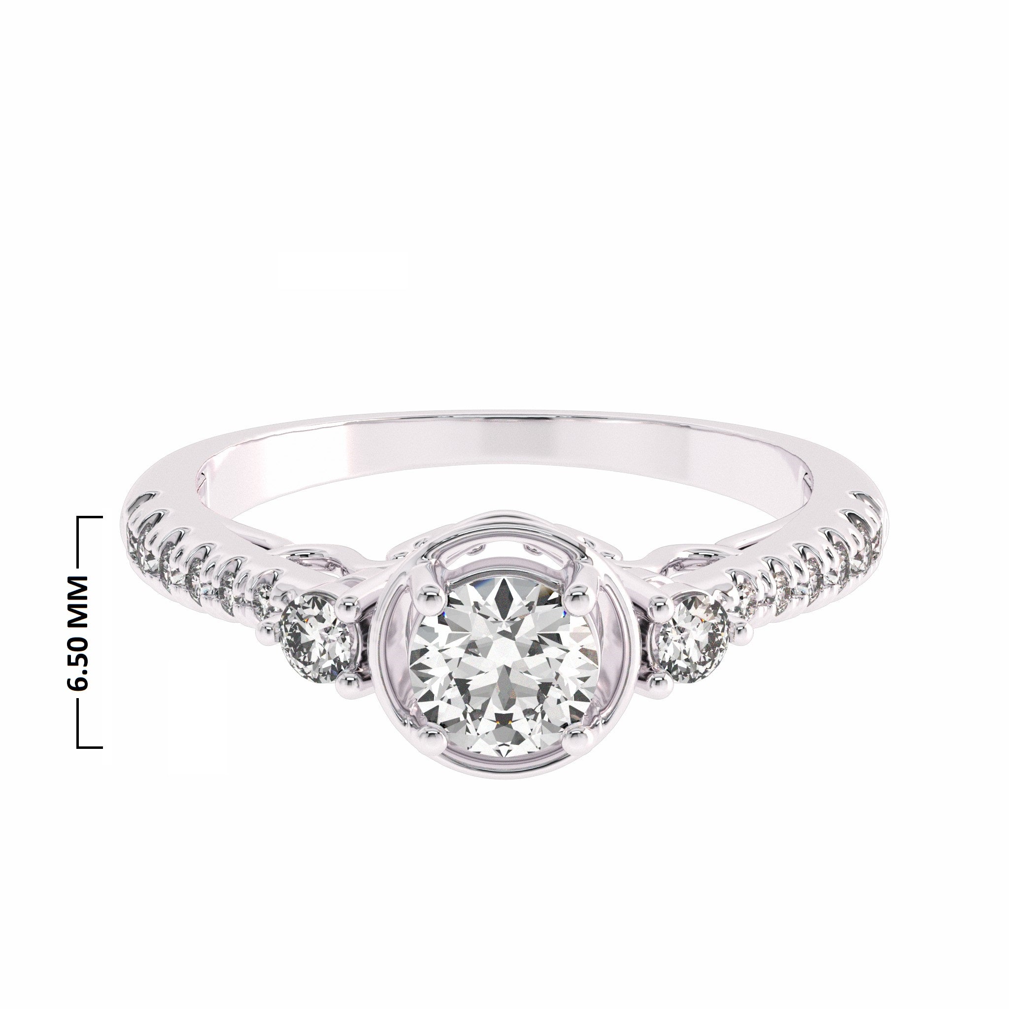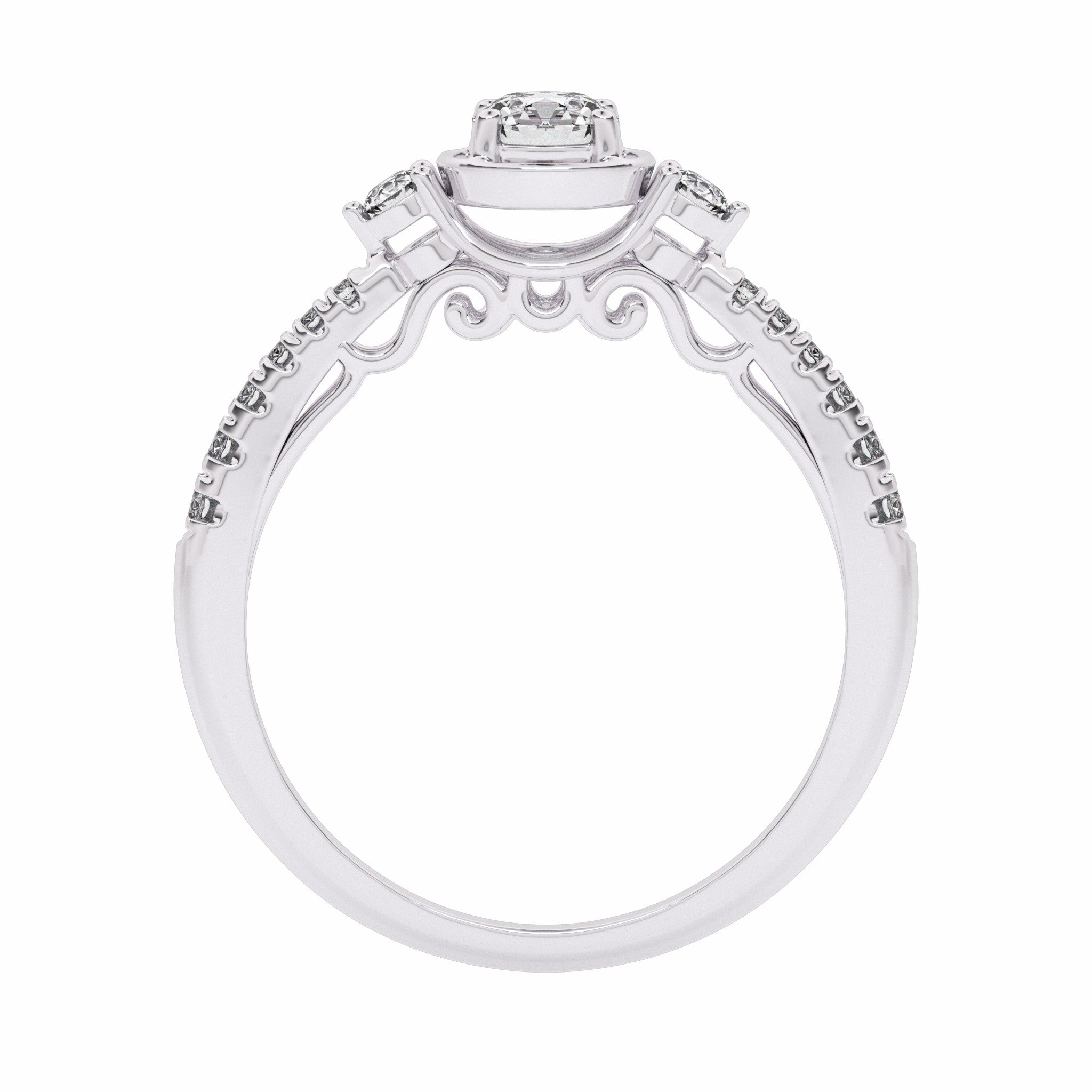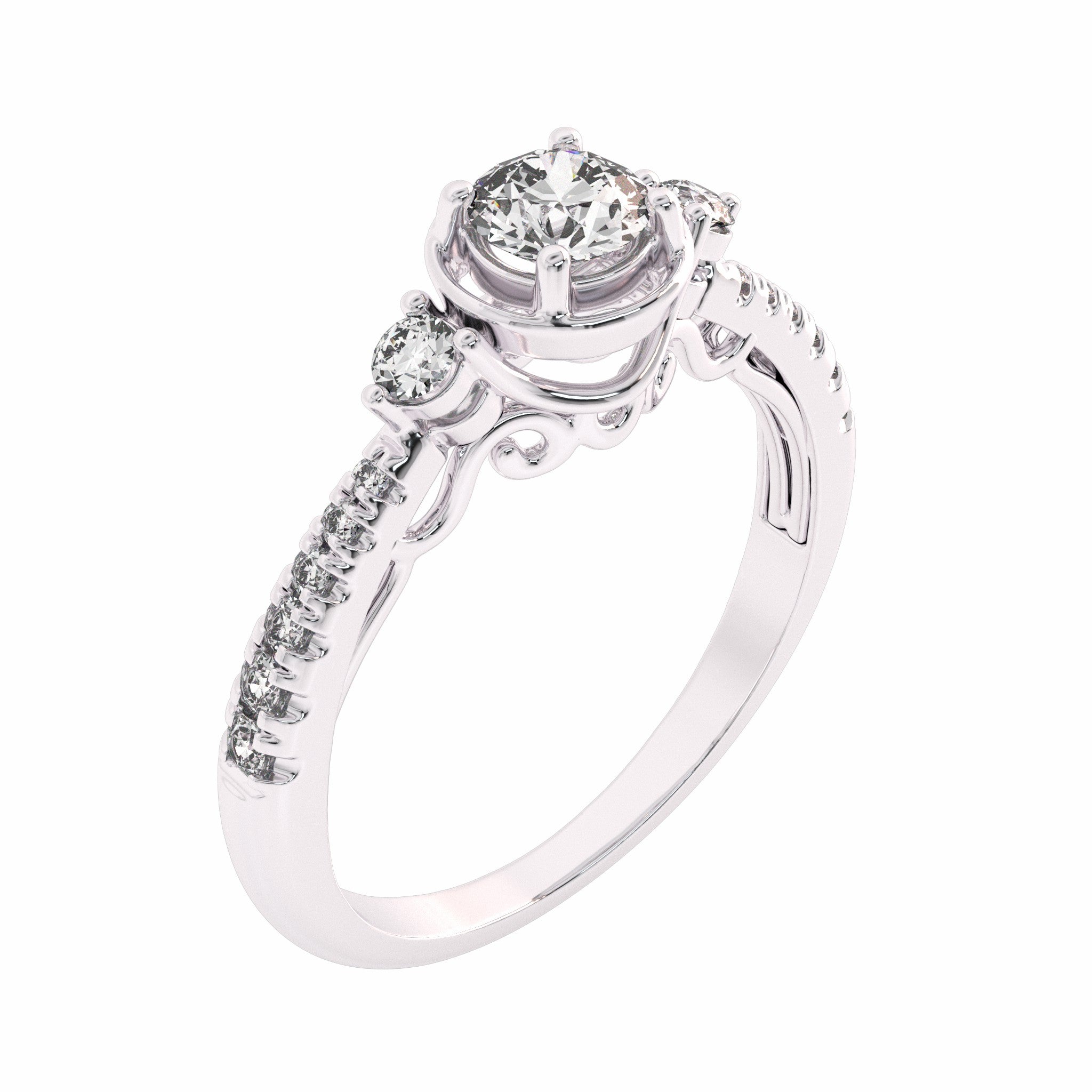 Presenting our stunning 5/8 carat Three Stone Style Two Tone Engagement Ring, featuring G-H/VS-SI Quality diamonds expertly set in a micro split and prong setting. This engagement ring is sure to capture the heart of your beloved and become a cherished symbol of your enduring commitment.