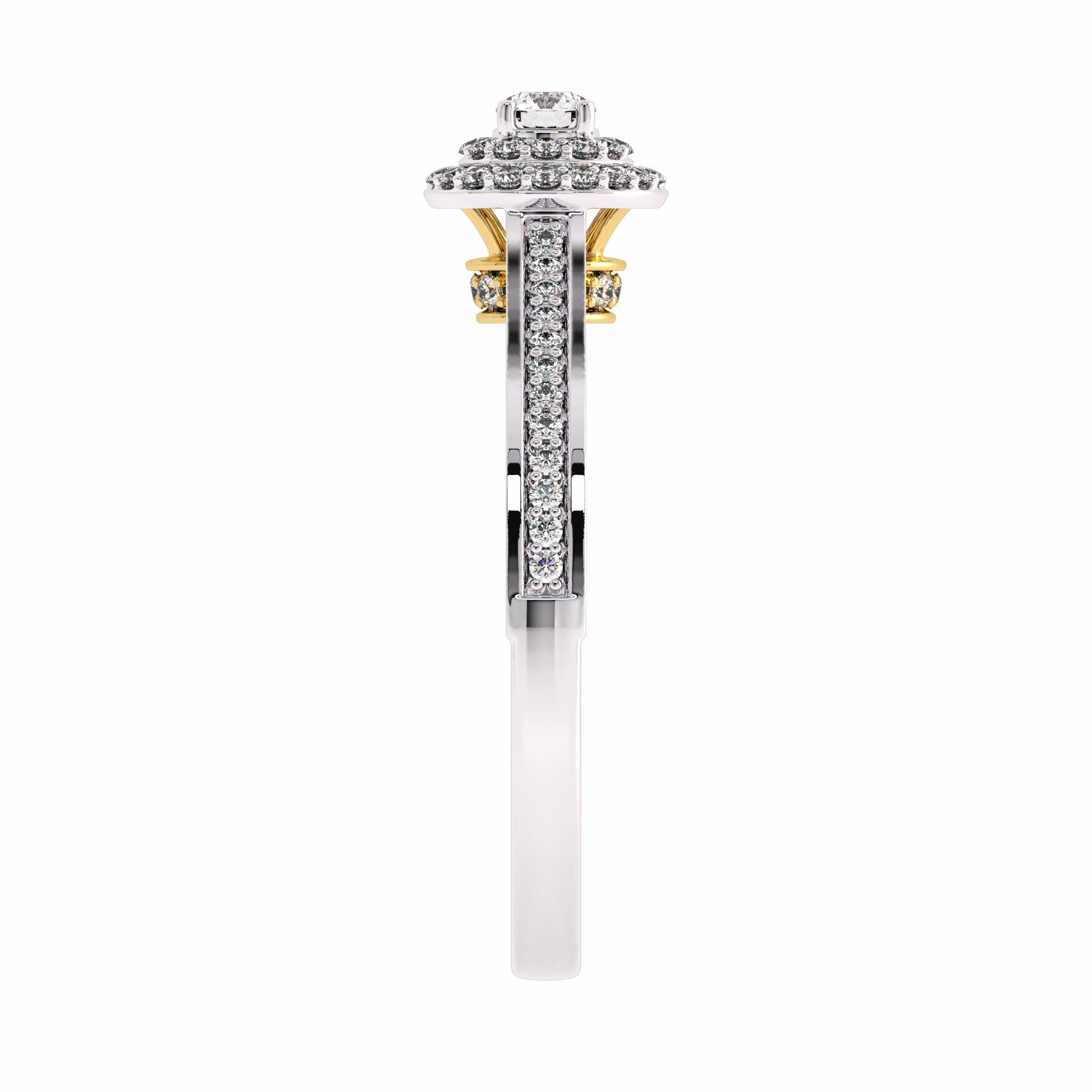 Make a statement with our 1/2 carat Double Halo Engagement Ring. Expertly crafted, this ring features a stunning diamond set in a combination of pave and prong settings, The double halo design creates a captivating play of light and shadow, making this ring a true showstopper.