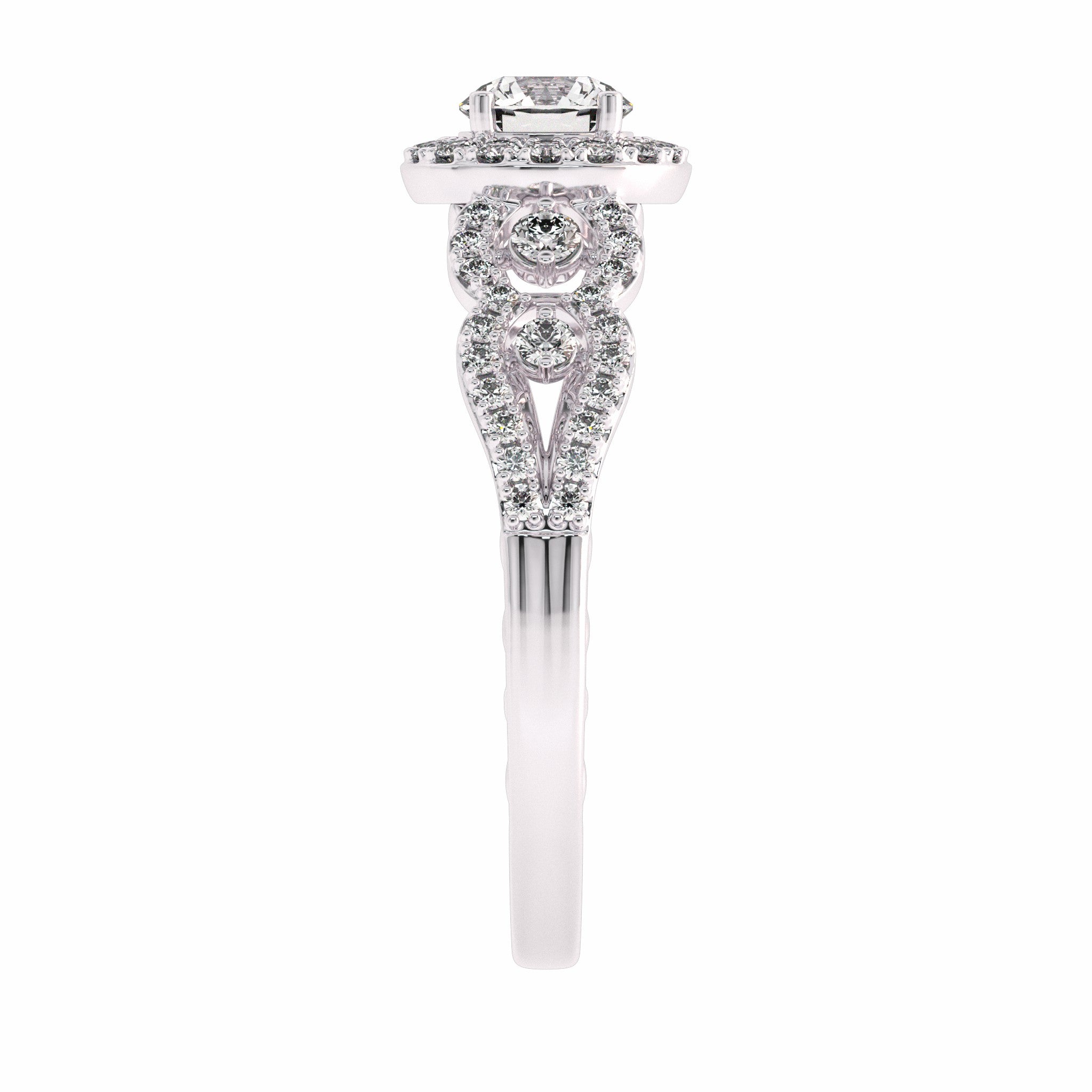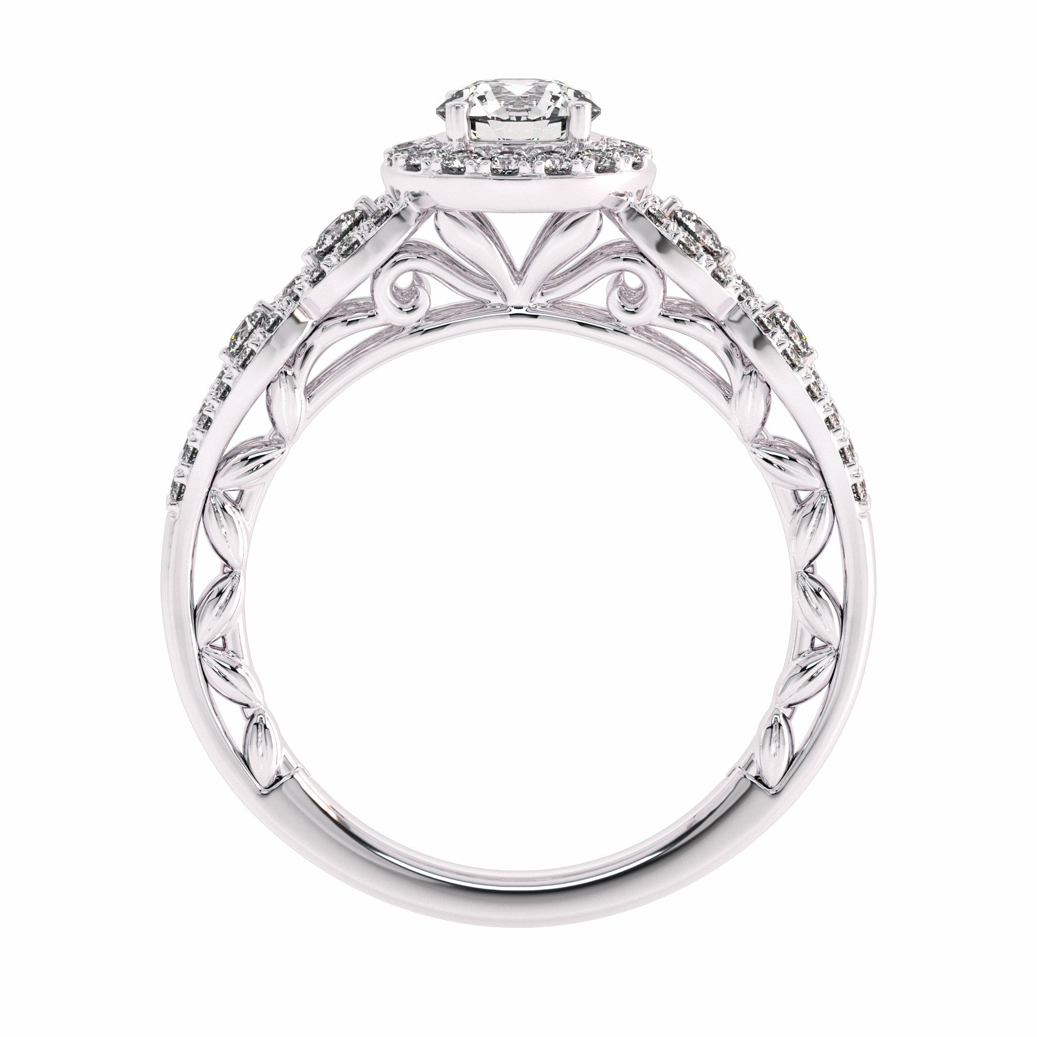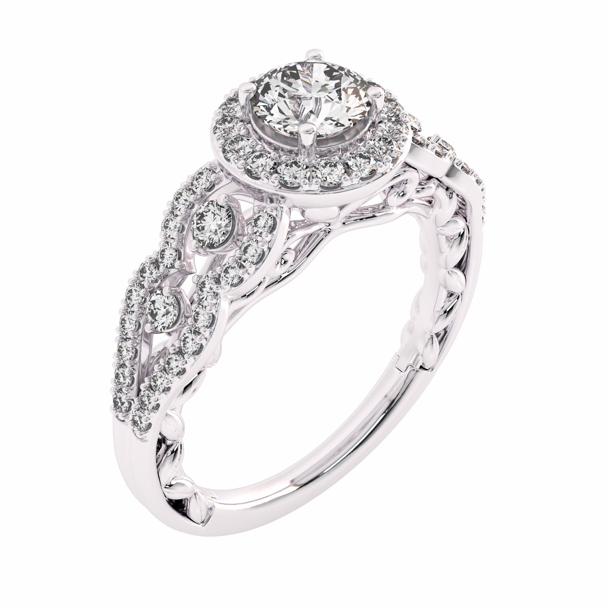 Introducing our exquisite 1 carat Halo Unique Engagement Ring, featuring G-H-I/SI Quality diamonds expertly set in a micro split and prong setting,The unique design of this ring makes it a standout piece that is sure to capture the heart of your beloved.