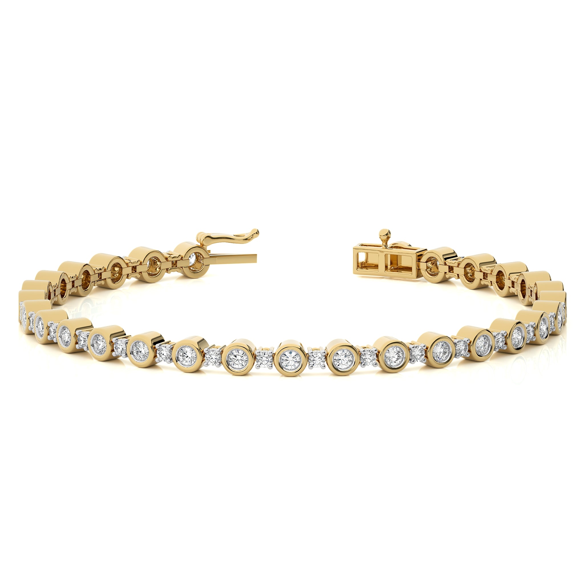 Radiate sophistication with the Astral Luster Stellar Essence Natural Diamonds Infinity Design Gold Tennis Bracelet. This 7-inch piece features H-I/I1-I2 quality diamonds and a secure clasp lock, making it a timeless and captivating addition to your collection.