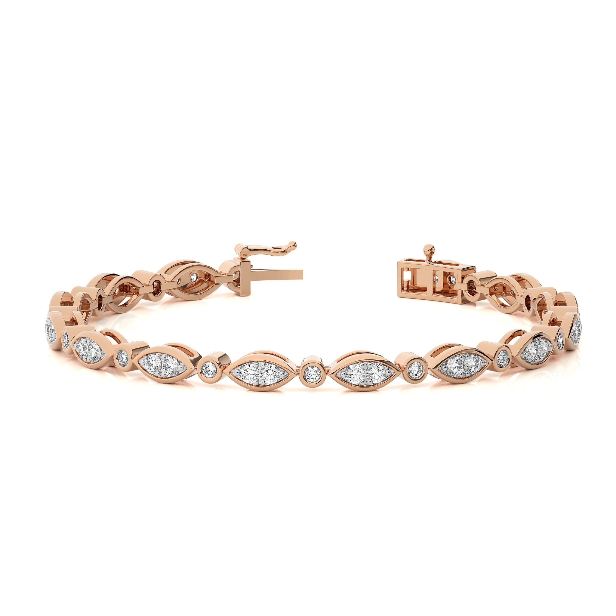 2 CT. Timeless Voyage Sustainable Natural Diamonds Studded Boat ShapeMotifs Design Linked Gold Tennis Bracelet with Clasp Lock