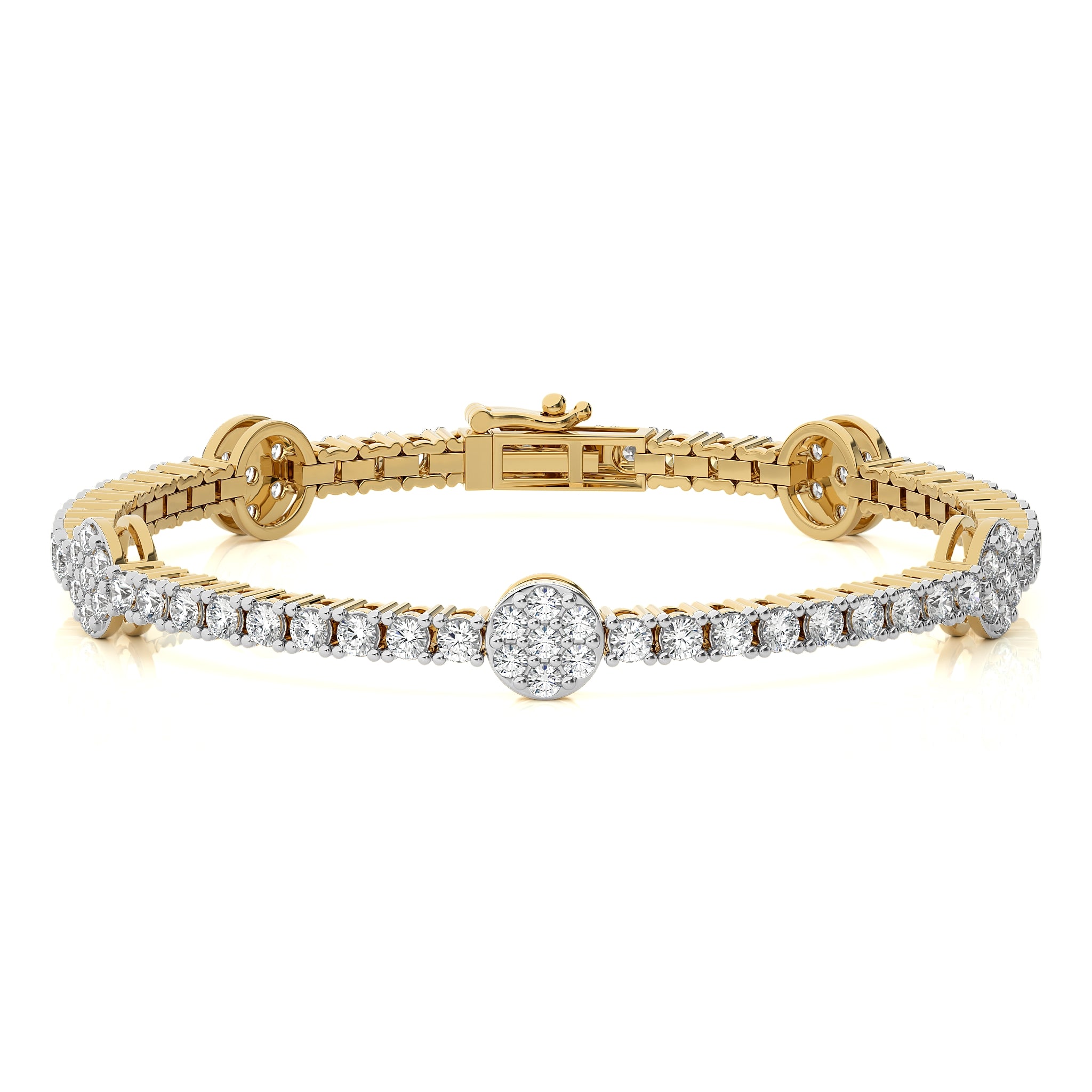 4 CT. Jewels of Tomorrow Sustainable Natural Diamonds Studded Round Motifs Linked Gold Station/Tennis Bracelet with Clasp Lock