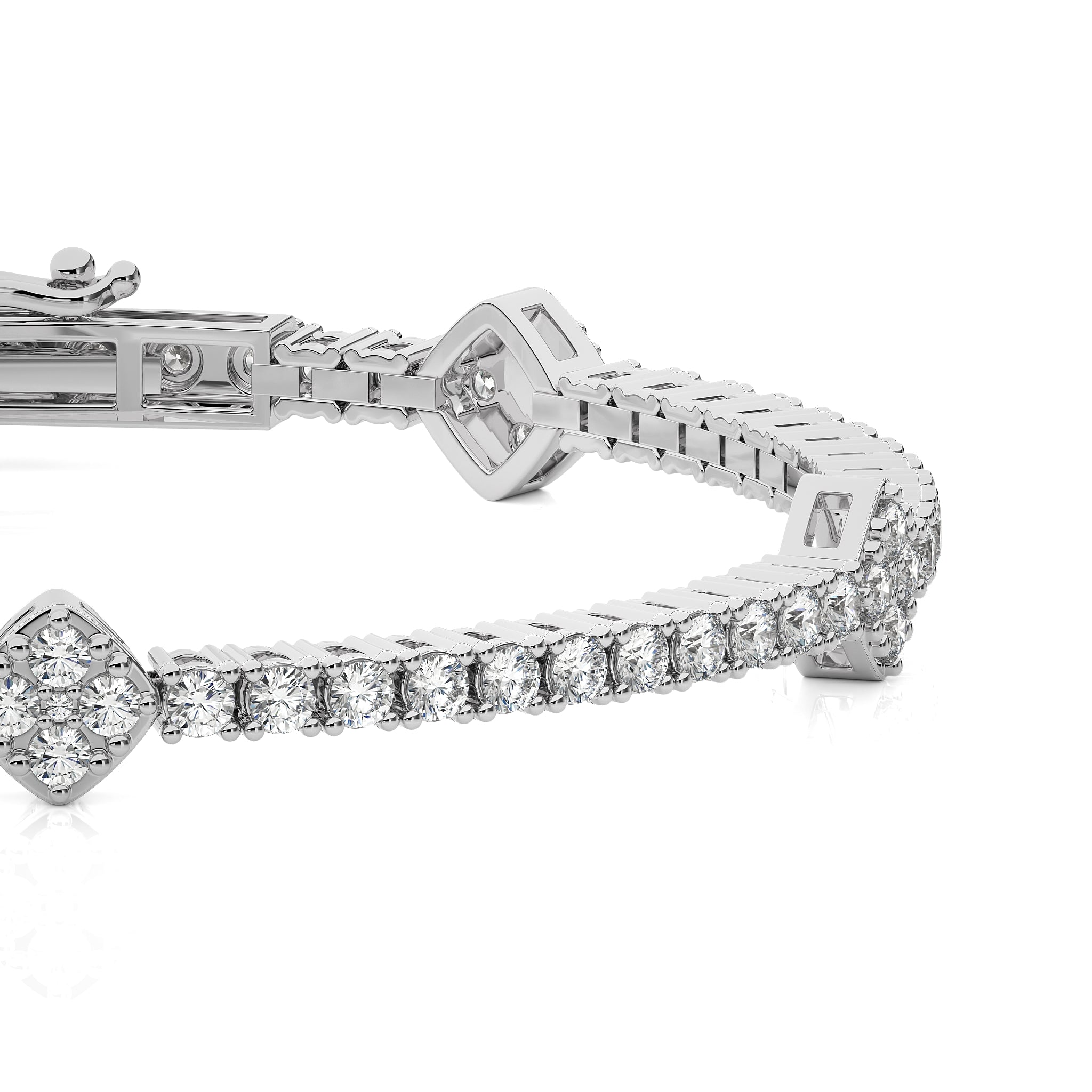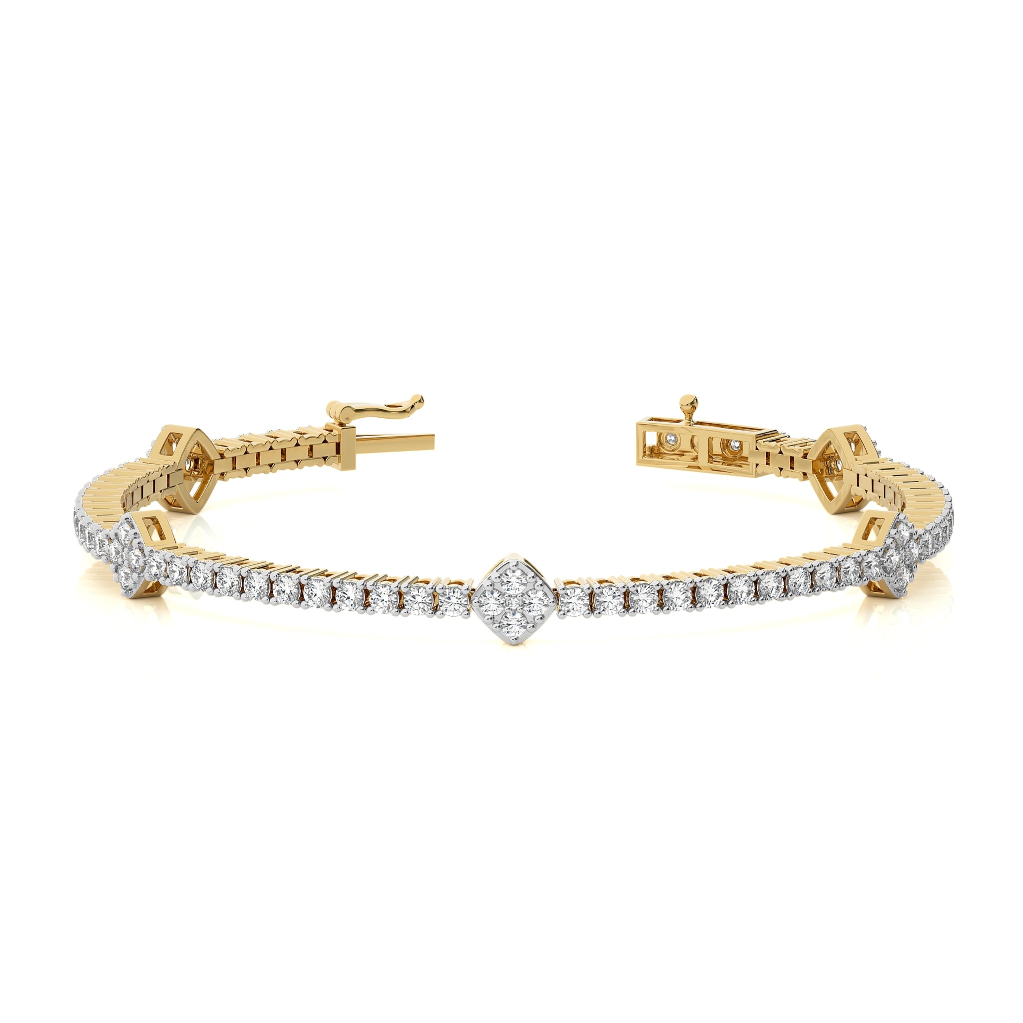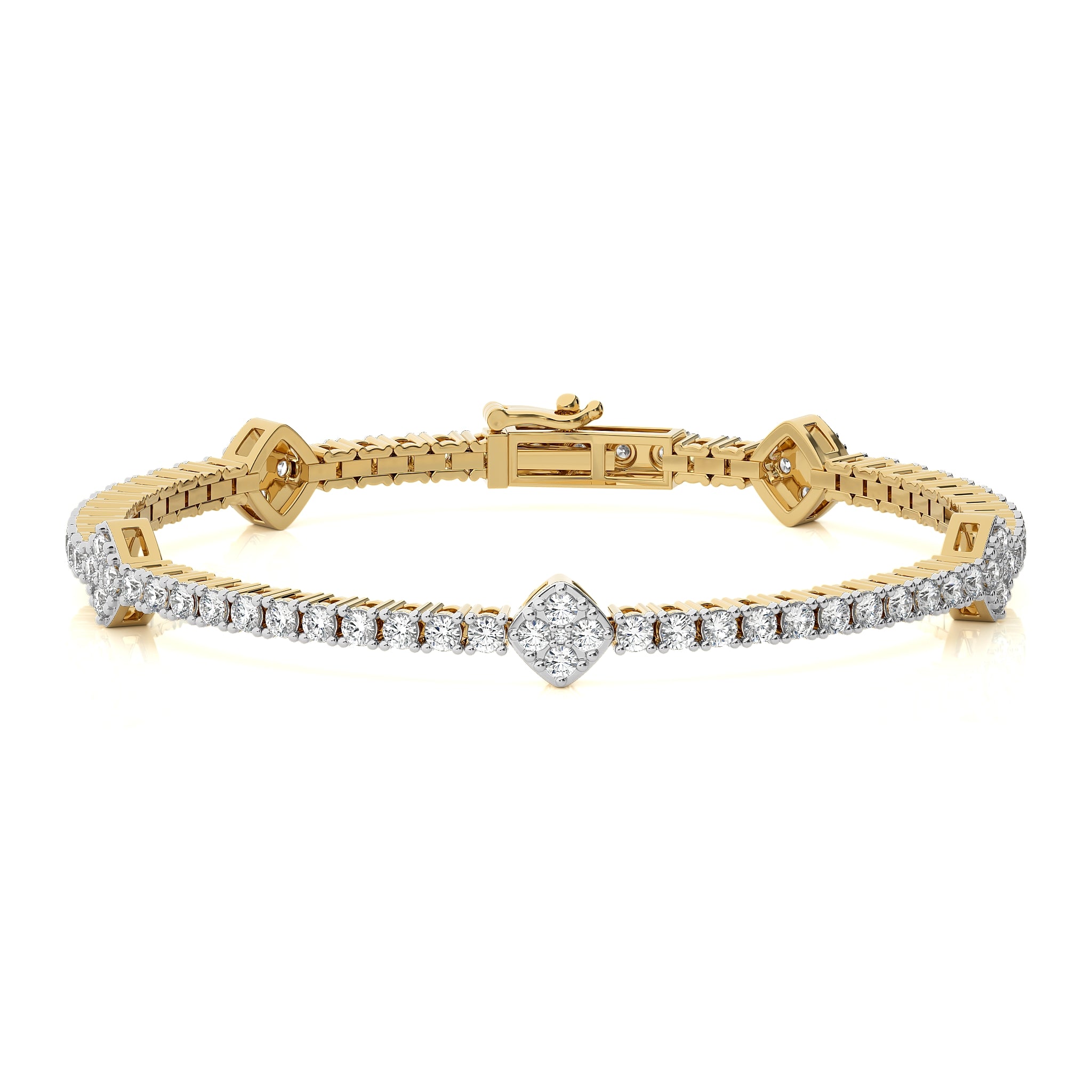 3 CT. Heirloom Glow Eco-Friendly Natural Diamonds Studded Cushion Shaped Motifs Linked Gold Station/Tennis Bracelet with Clasp Lock