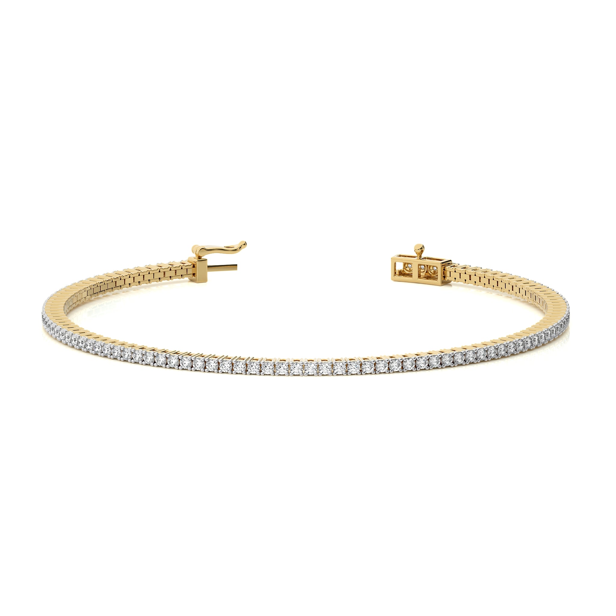 2 CT. Modern Majesty Dazzling Natural Diamonds Studded Classic Gold Tennis Bracelet with Clasp Lock