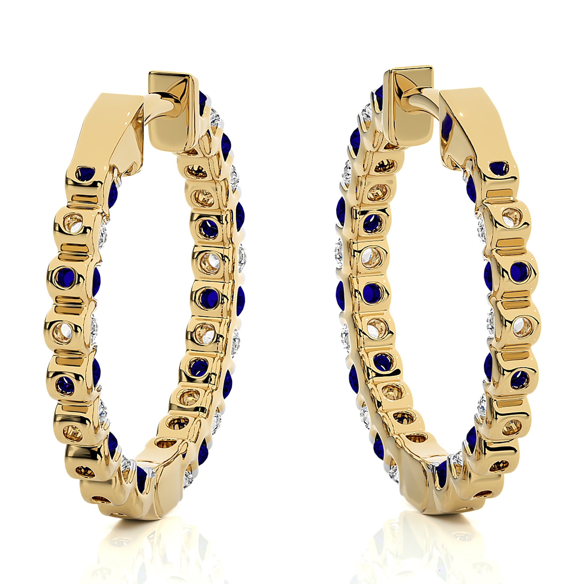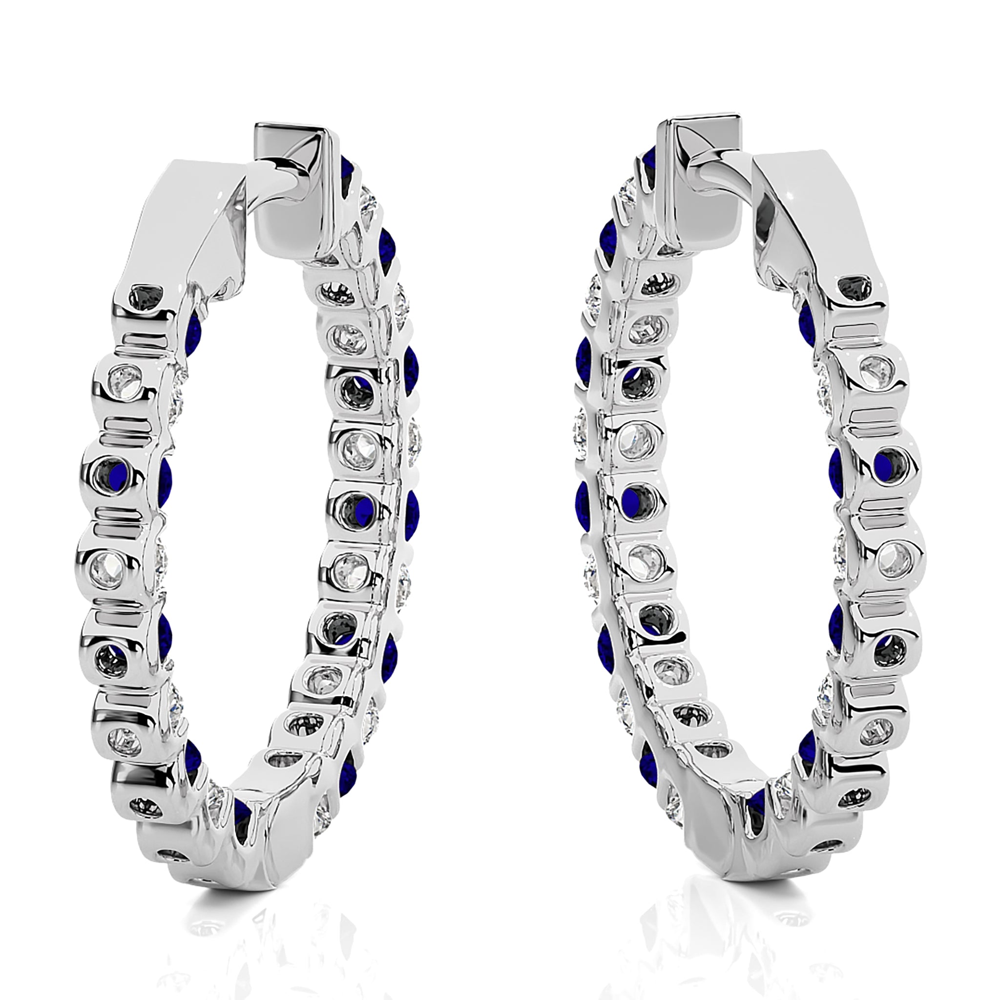 1 CT Sapphire Diamond Inside Out Hoop Earrings