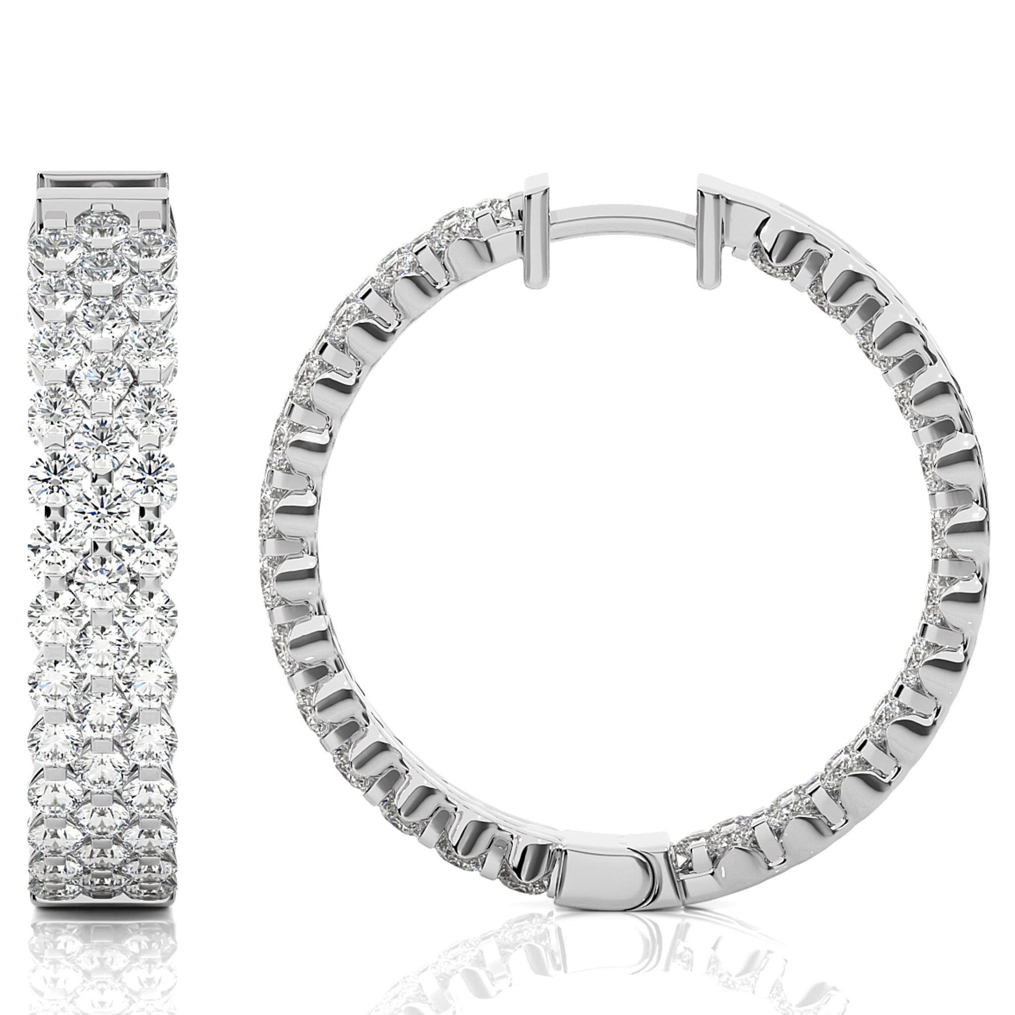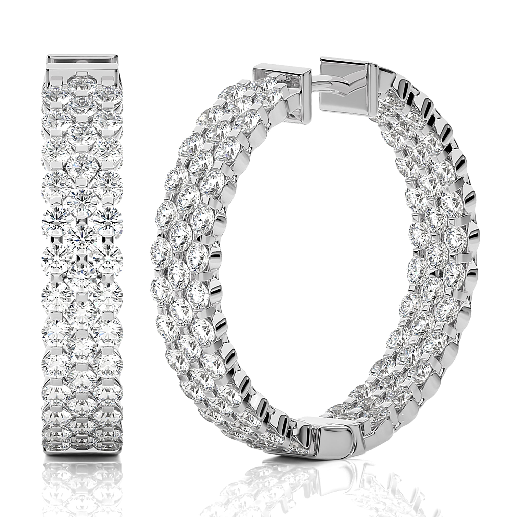 luxurious our Triple Row Inside Out Lab Created Diamond Hoop Earrings, showcase of elegance and style. Each earring features a stunning array of DEF/SI quality lab created diamonds set in a secure prong setting, allowing the diamonds to shine brilliantly from every angle