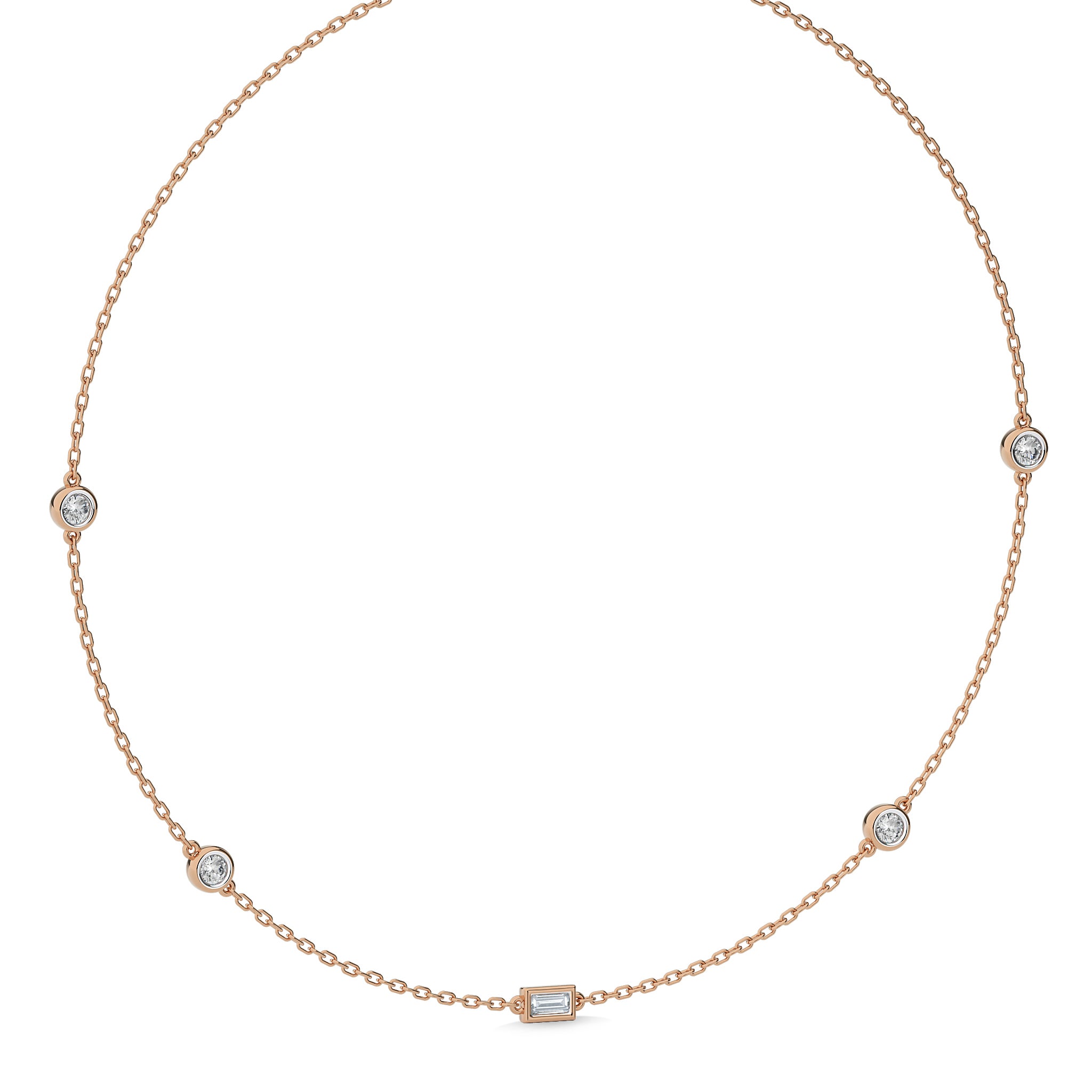 1 CT. Zenith Baguette and Round Bezel Lab Created Diamond by the Yard Necklace
