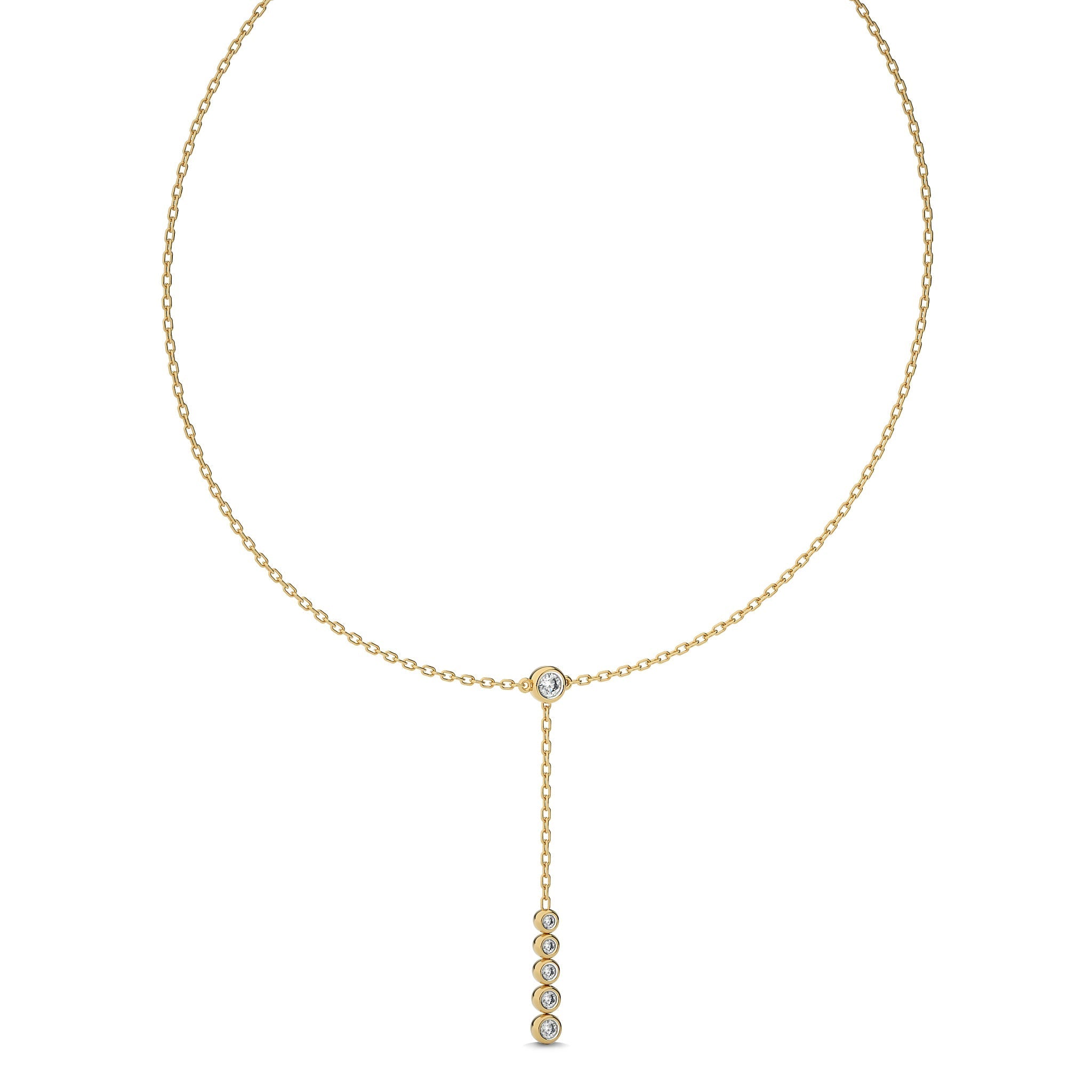 Dive into luxury with our Zephyr Round Lab Created Diamond Y Necklace, featuring a stunning 1/2 carat diamond of DEF/SI quality. Meticulously bezel set for a modern look, making it the perfect accessory for elevating any outfit