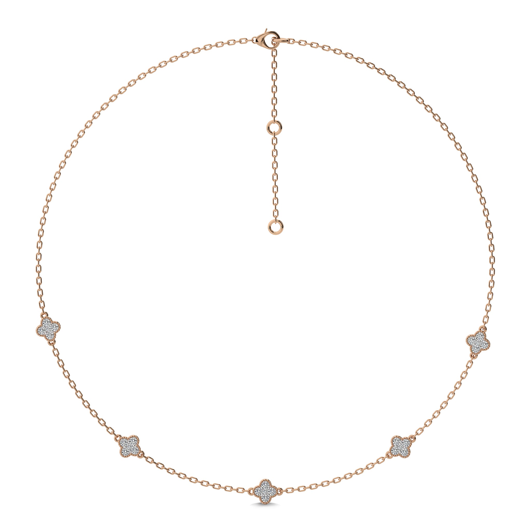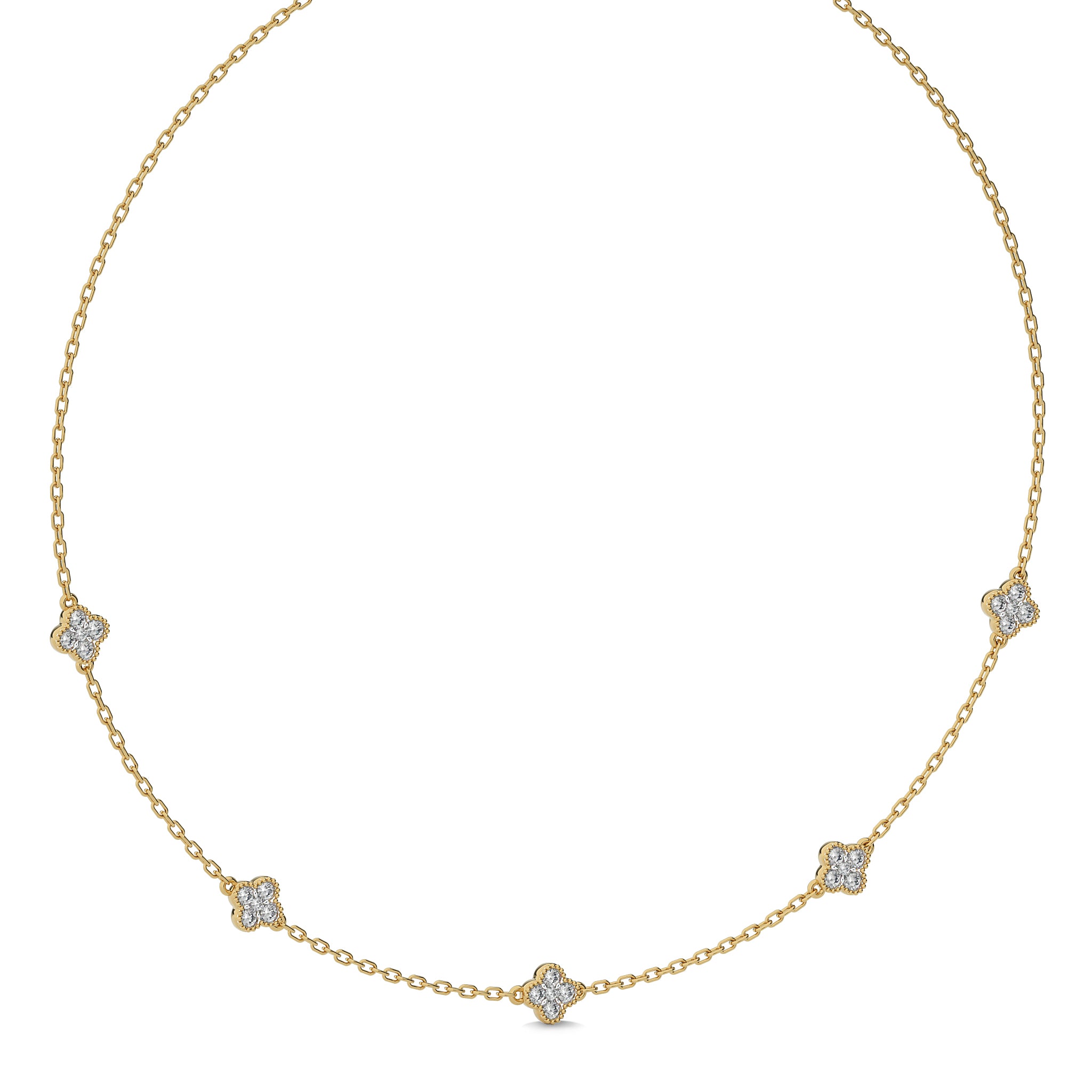 Gleam your neckline with our Shimmering Rounds Five Motifs Station Necklace, featuring dazzling 1 carat lab-created diamonds of DEF/SI quality. Set in a combination of channel and prong settings, this necklace is a stunning statement piece that adds elegance and glamour to any ensemble