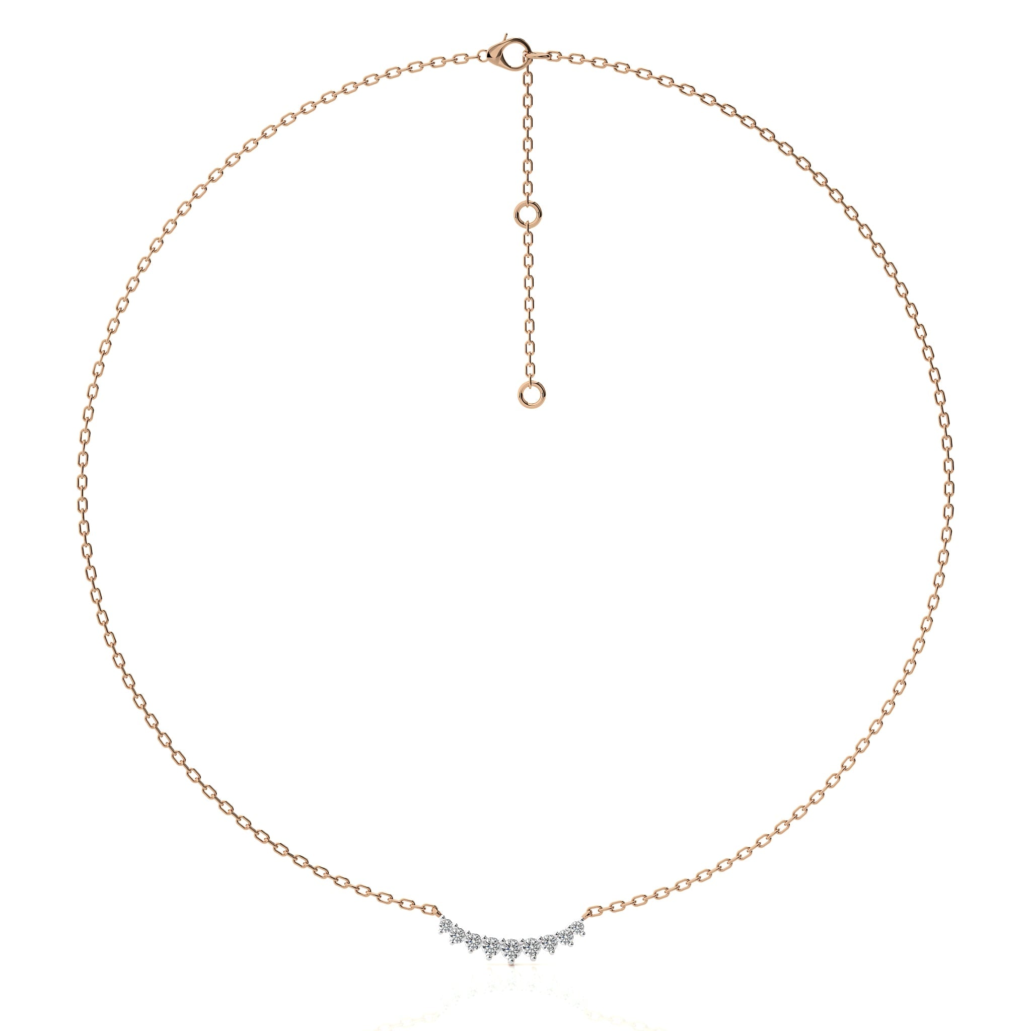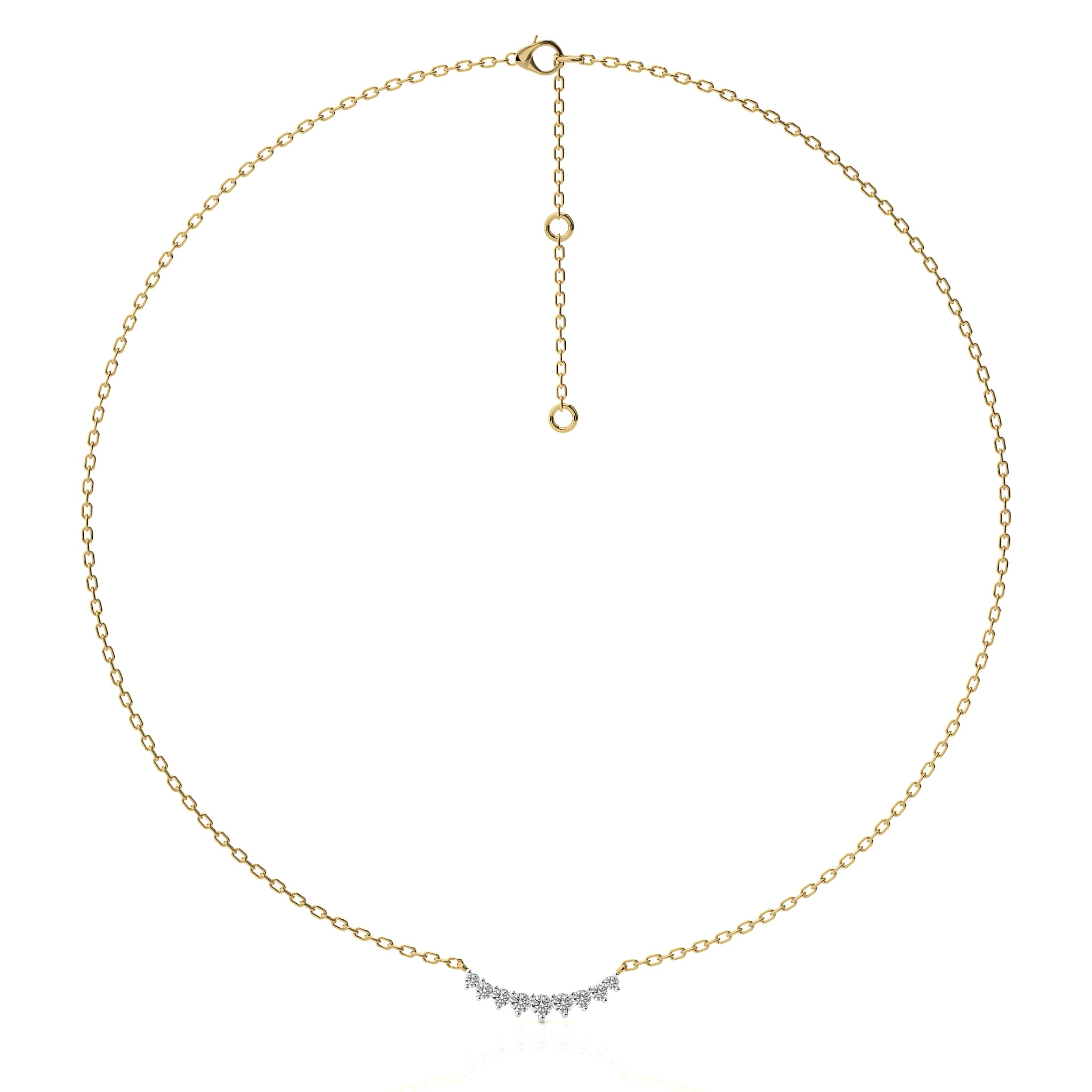 Resplendent in its beauty, our Curved Bar Round Lab Created Diamond Nine Stones Necklace features 3/8 carat of DEF/SI quality diamonds. Each stone is delicately set in a prong setting , creating a dazzling and sophisticated look that elevates any outfit