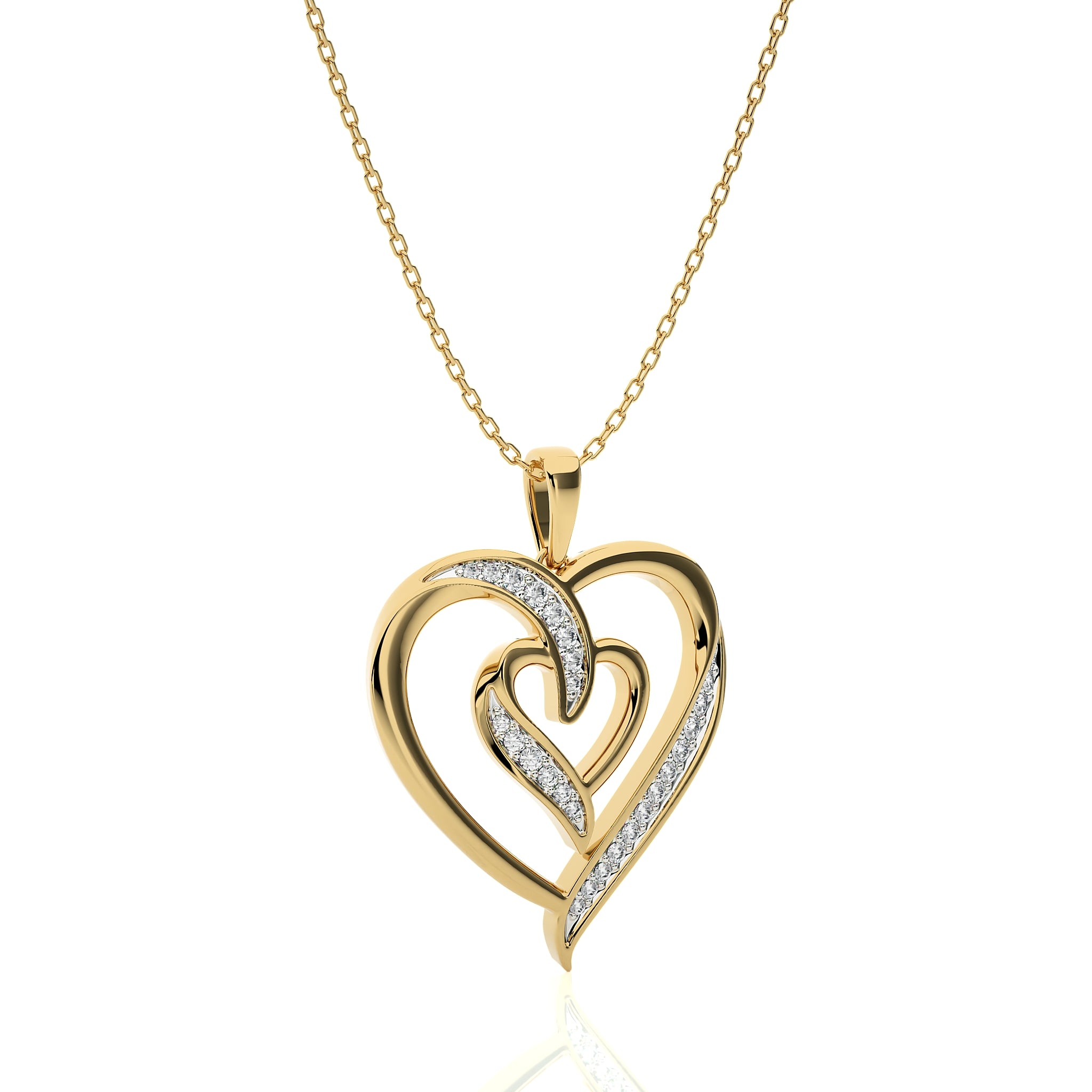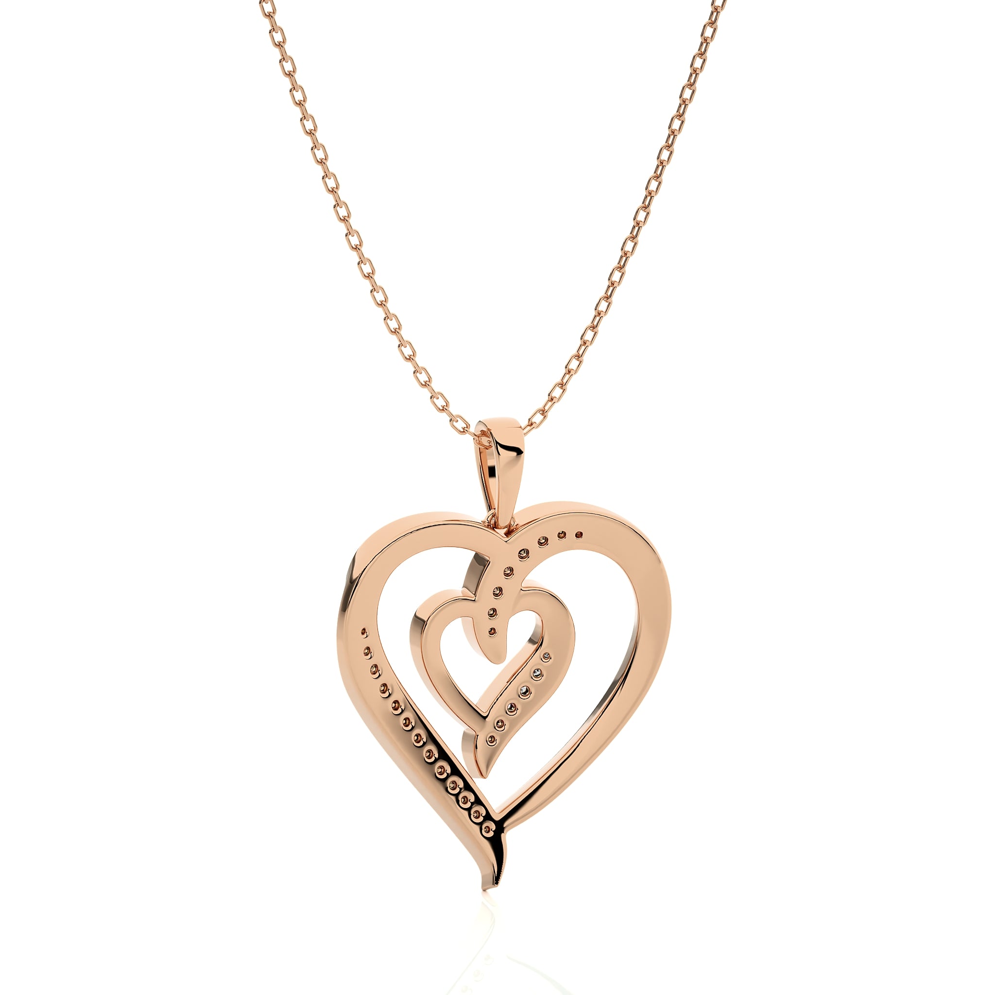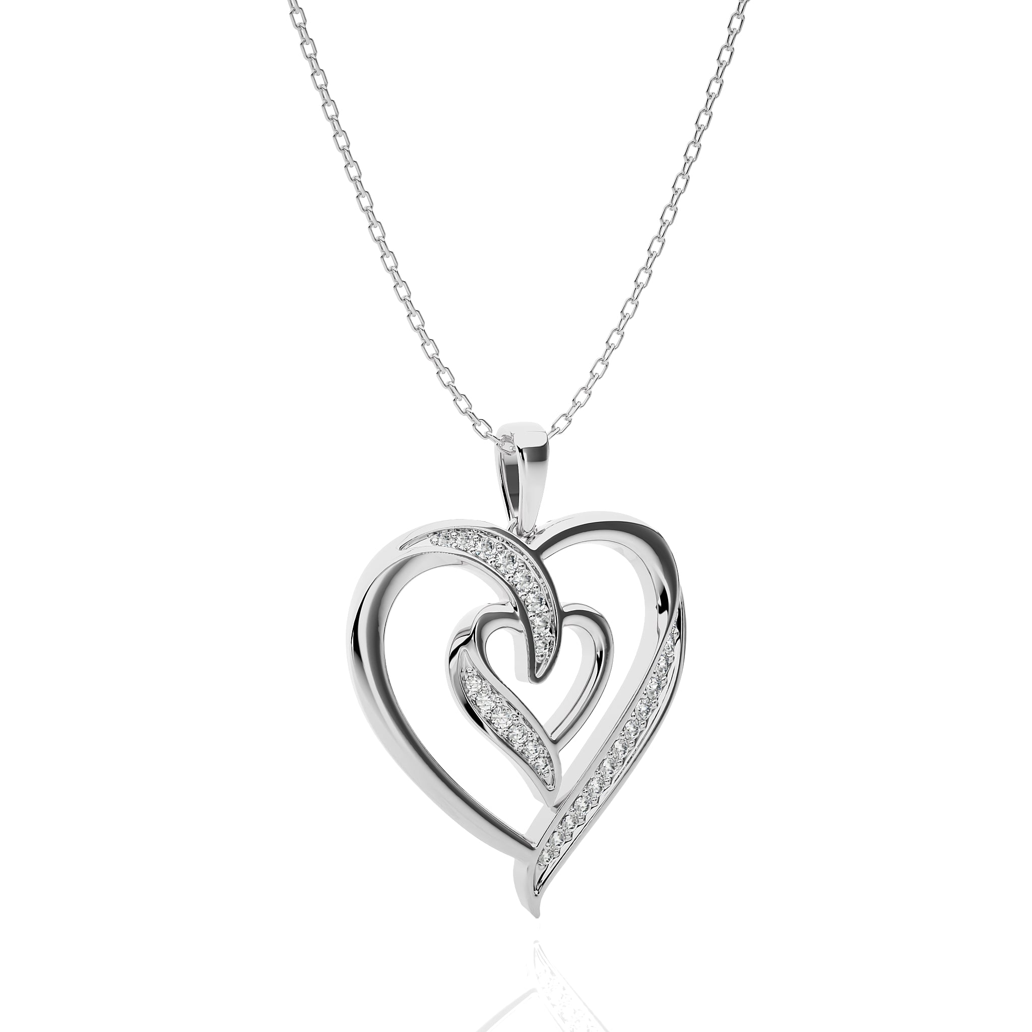 Envelop yourself in romance with our Adorned Twin Heart Pendant. Featuring two Lab Created Diamond of DEF/SI quality delicately set in a prong setting, this pendant is a stunning symbol of love and connection. Crafted with meticulous attention to detail, it radiates elegance and sophistication, making it the perfect accessory for any occasion.