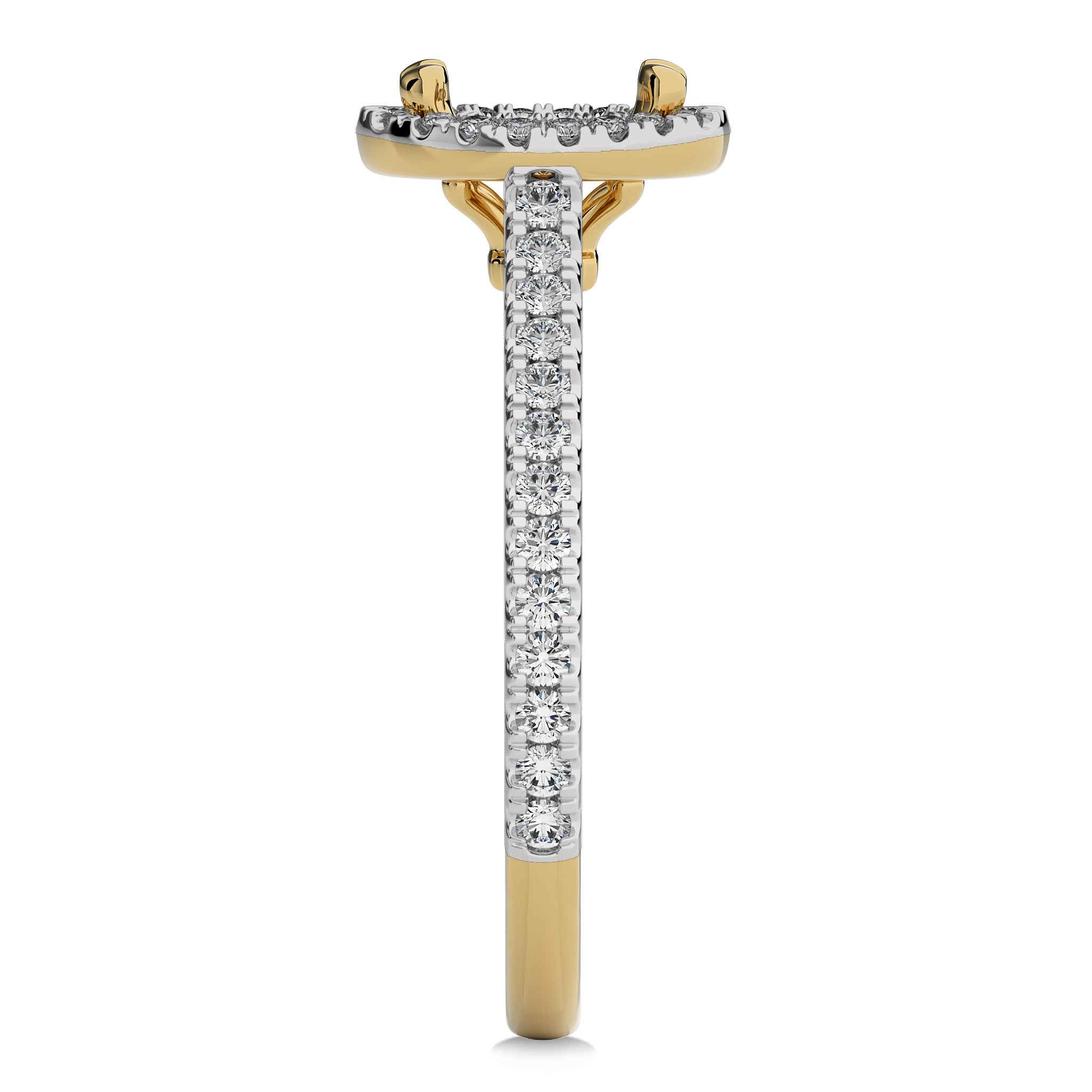 The Stellar Embrace ring features a 1/3 carat natural round diamond of H-I/I1 quality, set within a halo of shimmering diamonds. The micro split setting adds a touch of intricate detail, making it a Perfect symbol of your enduring commitment under the endless celestial canopy