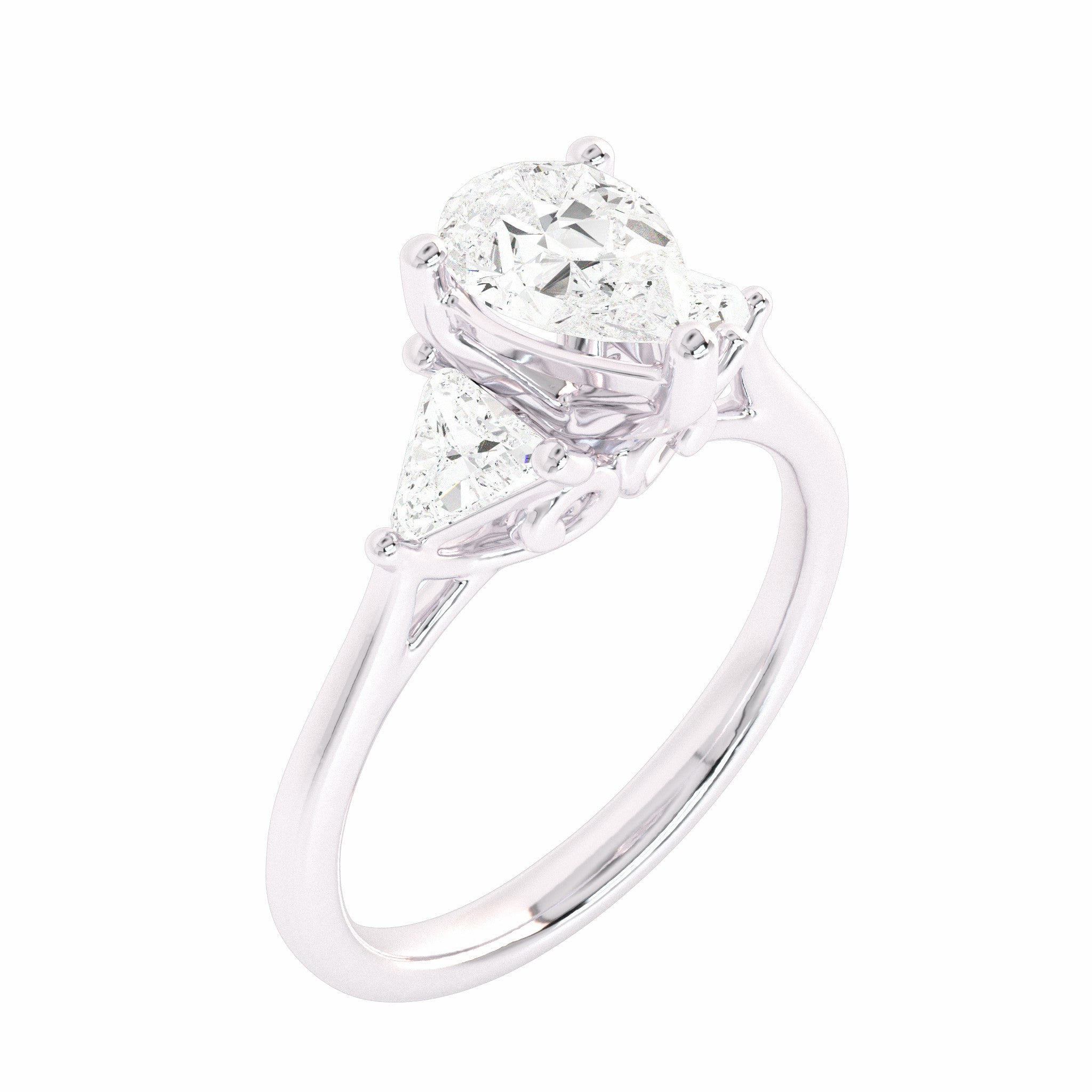 1 1/4 CT. Three Stone Pear and trapezoid Lab created Diamond Ring.