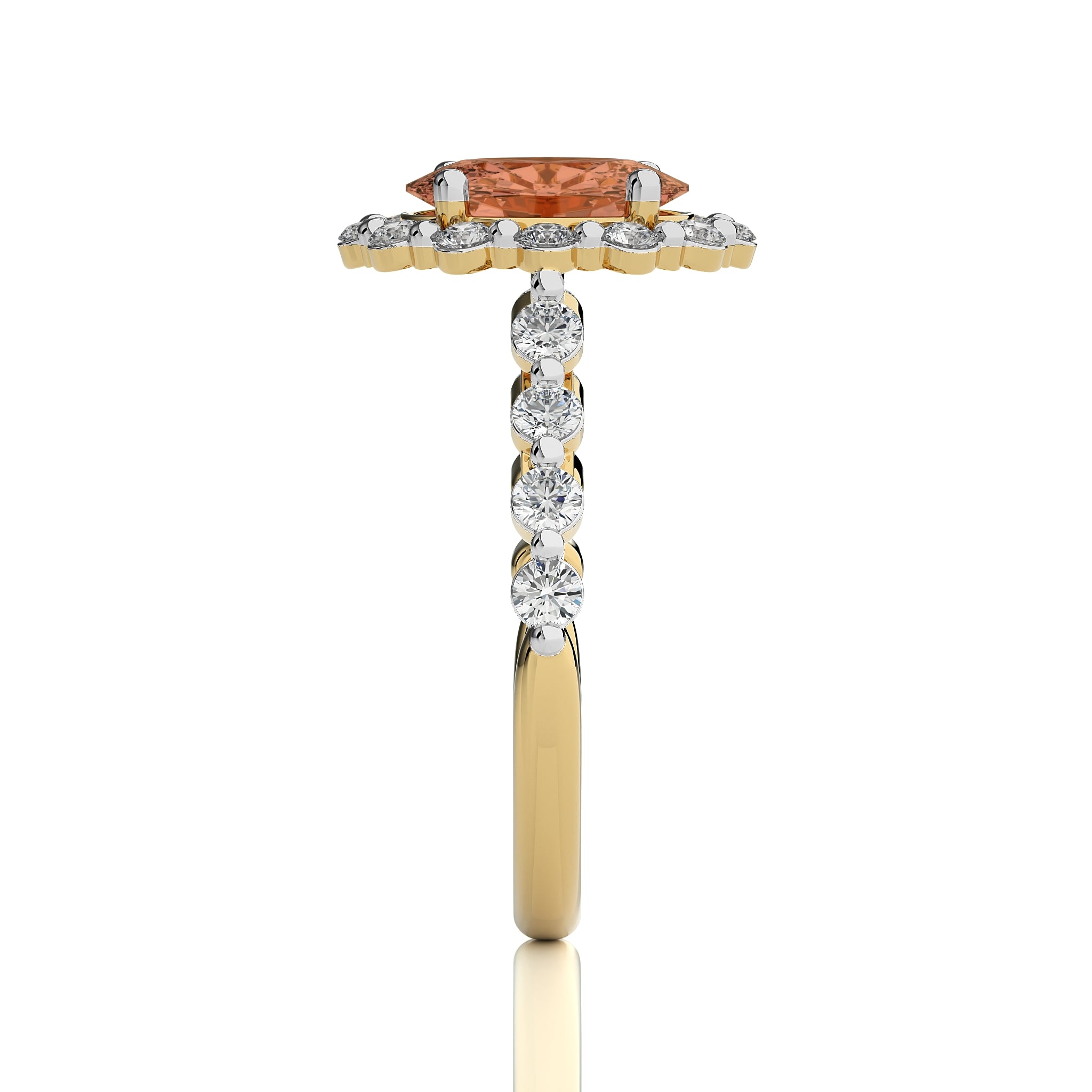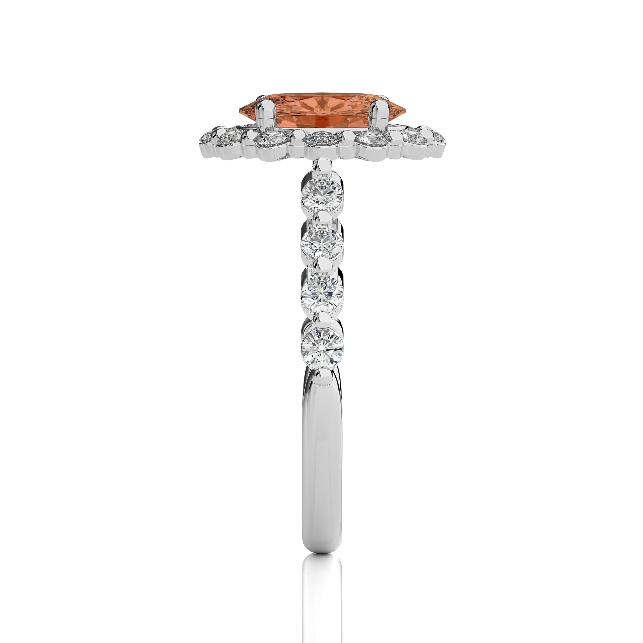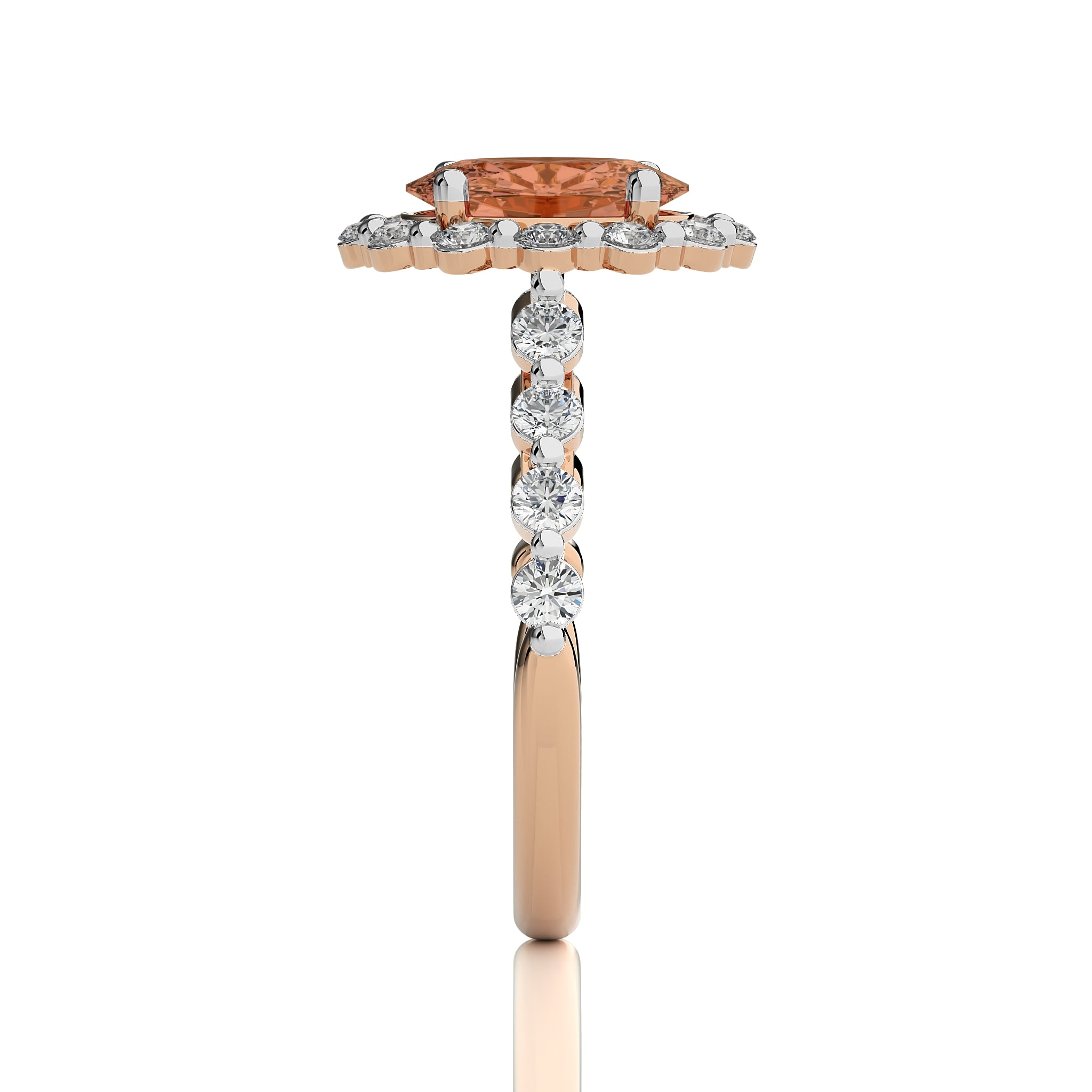 Ethereal Blossom Oval Morganite and Fancy shape Natural Diamond Engagement Ring.