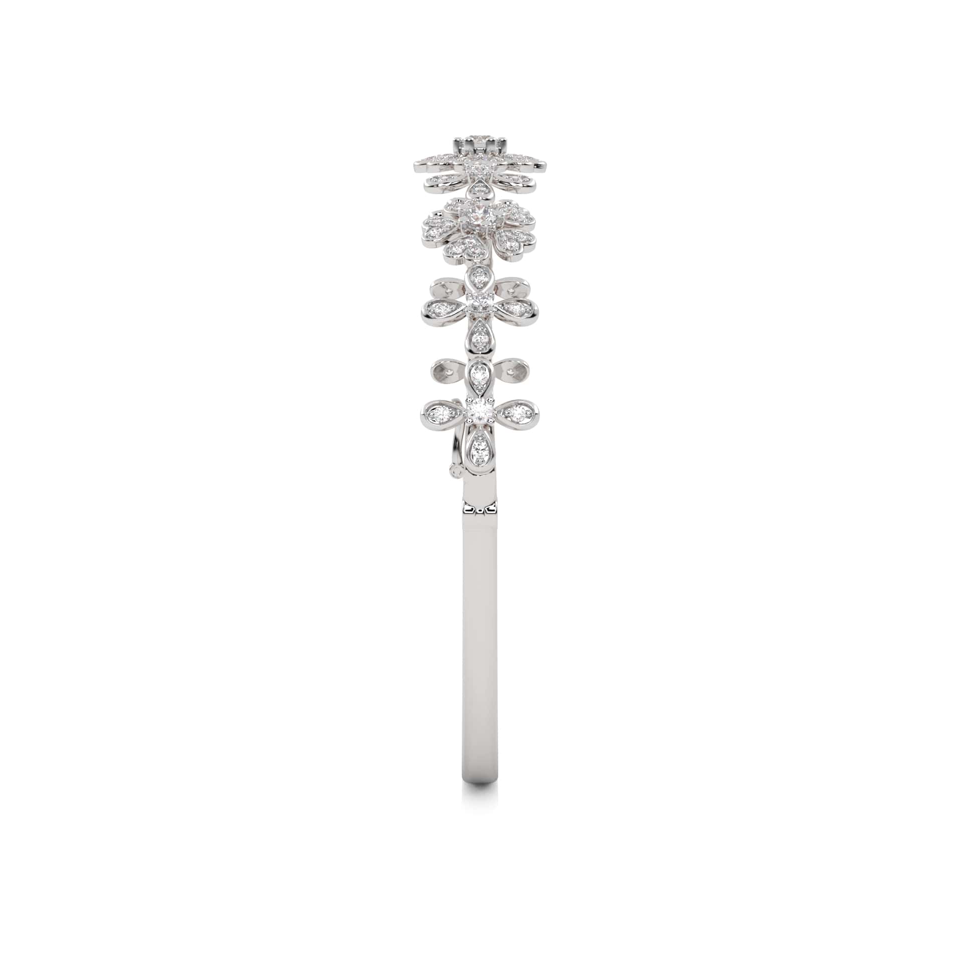Embellish your wrist with the 1 CT. Glowing Flora Bangle Bracelet, a stunning array of round Lab Created diamonds in DEF/SI quality, crafted in pave and prong settings. Elevate any ensemble effortlessly